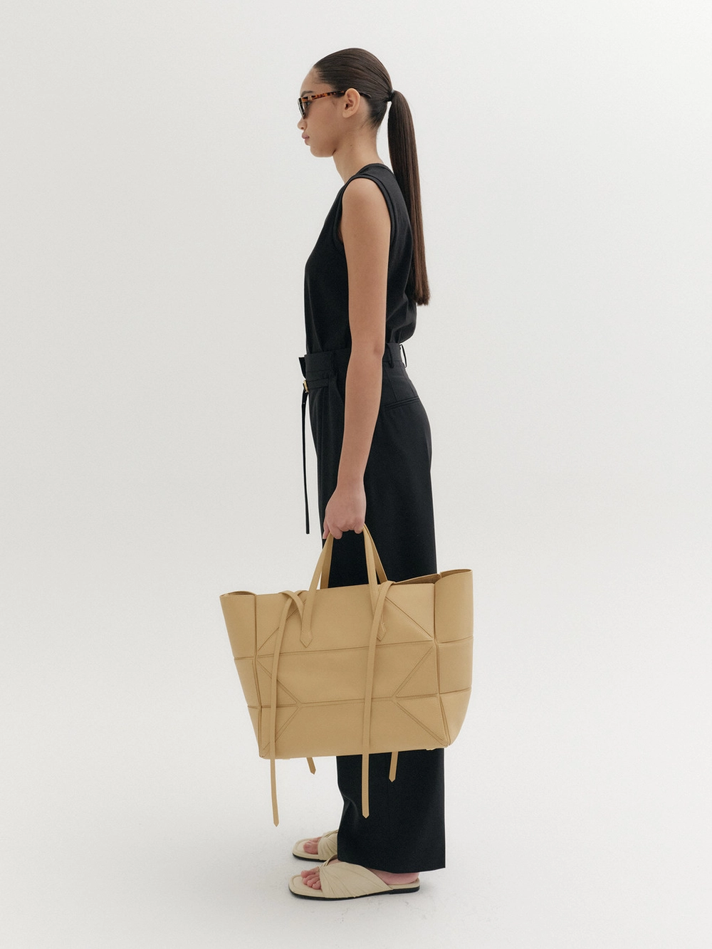 * The product worn by the model is a sample made in size S for the photoshoot. However, there may be differences in total length and specific measurements compared to the actual product. Please refer to the detailed measurements provided on the product page for accurate sizing.