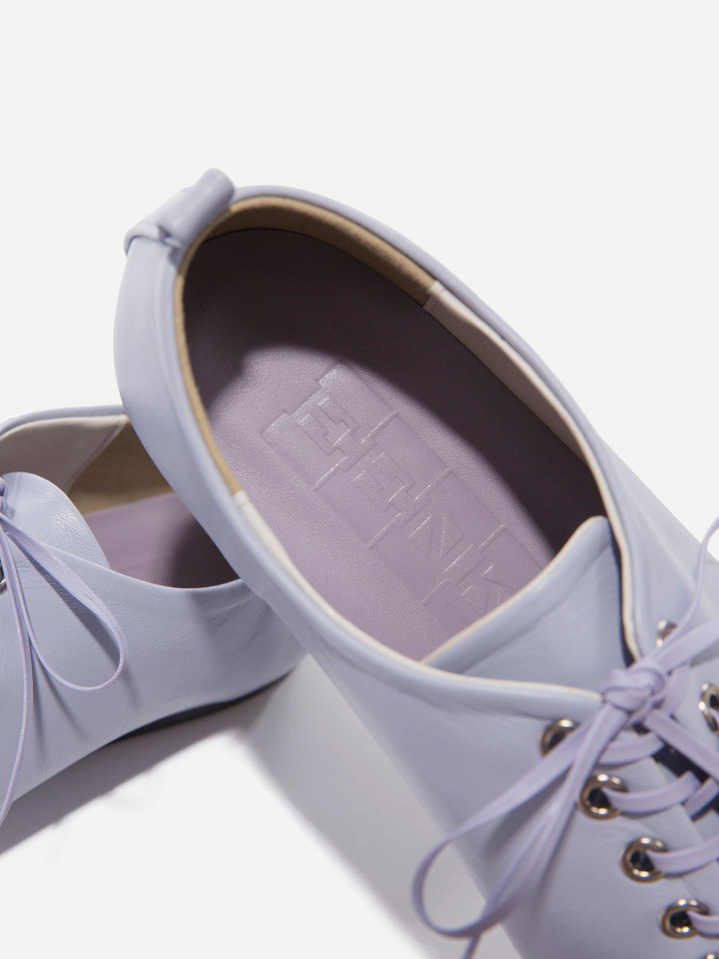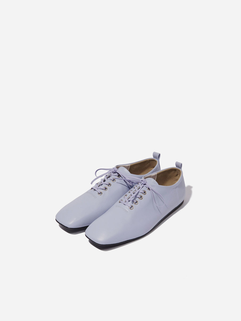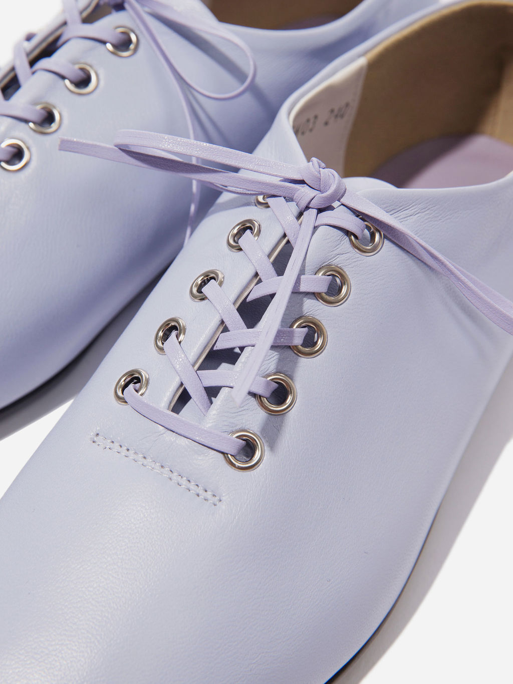 Square-toe lace up flats, pointed with tone-downed lavender color