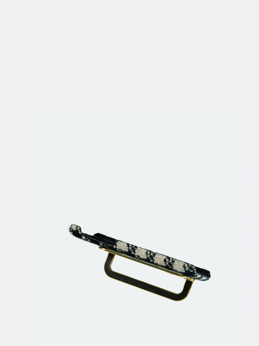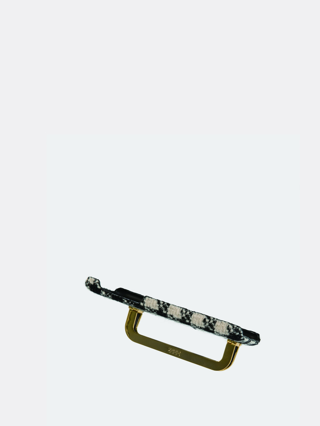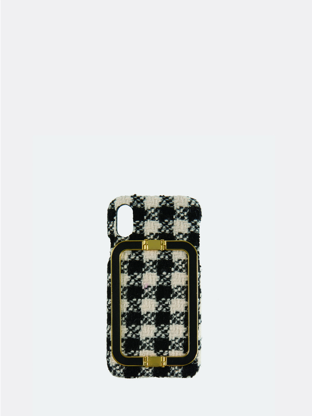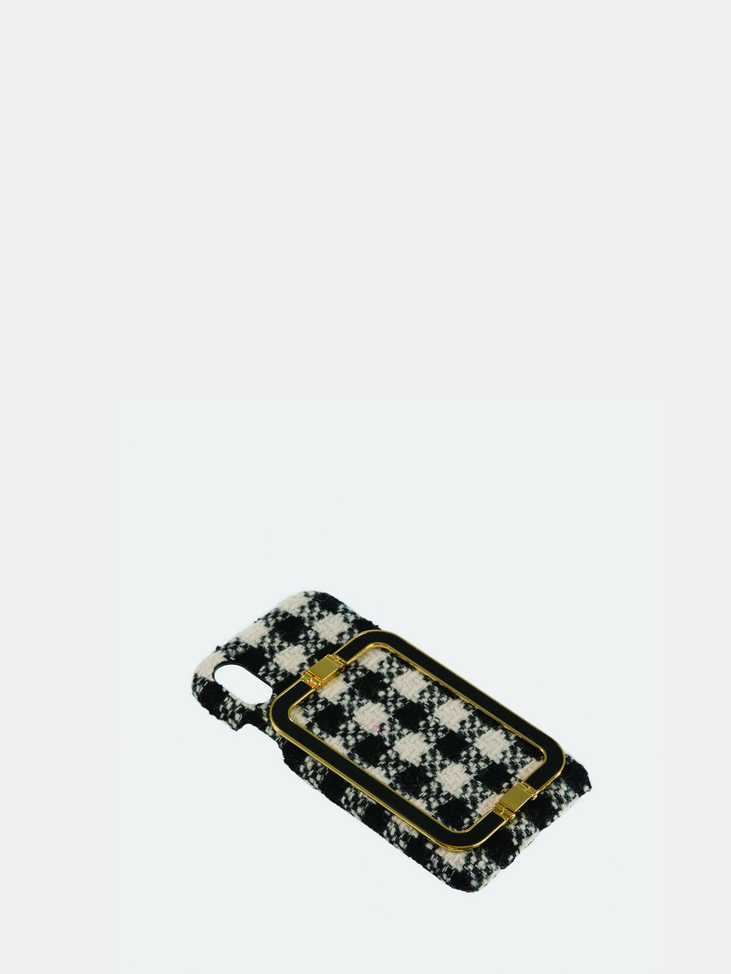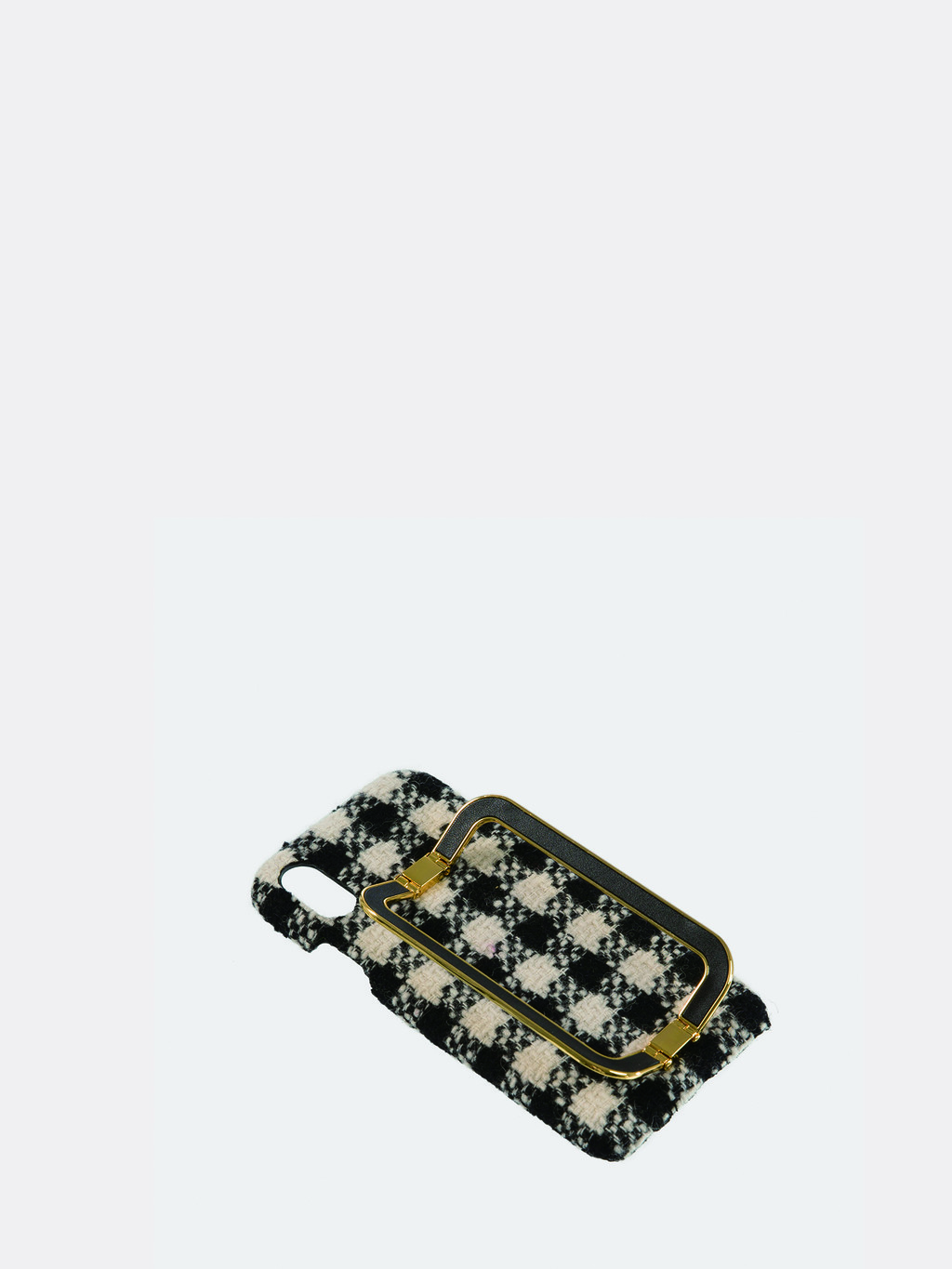 Iphone X/XS case with EENK's signature gold square handles on authentic leather covering the hard case to add a smooth touch. An all-time favorite of the brand.