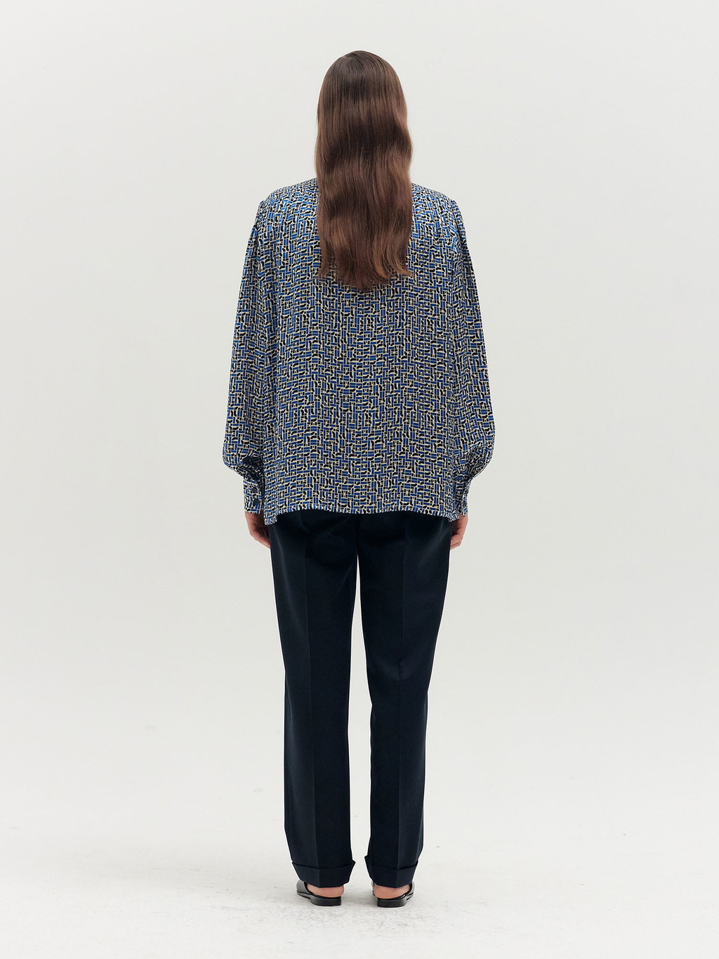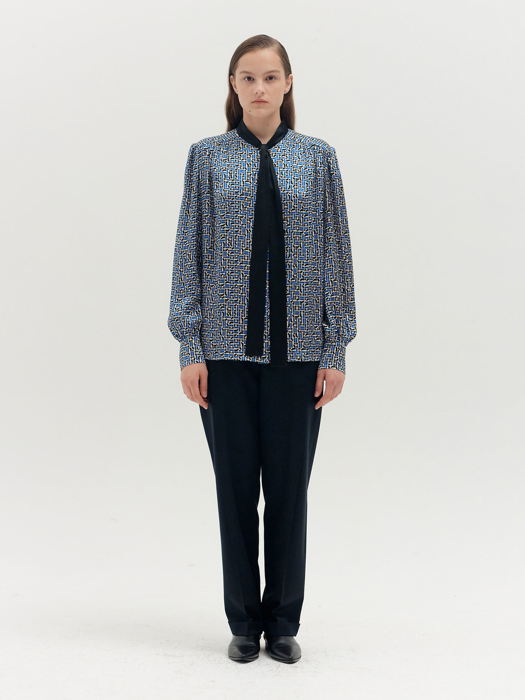 QUORRA Silk Tie-neck Blouse - Blue Multi