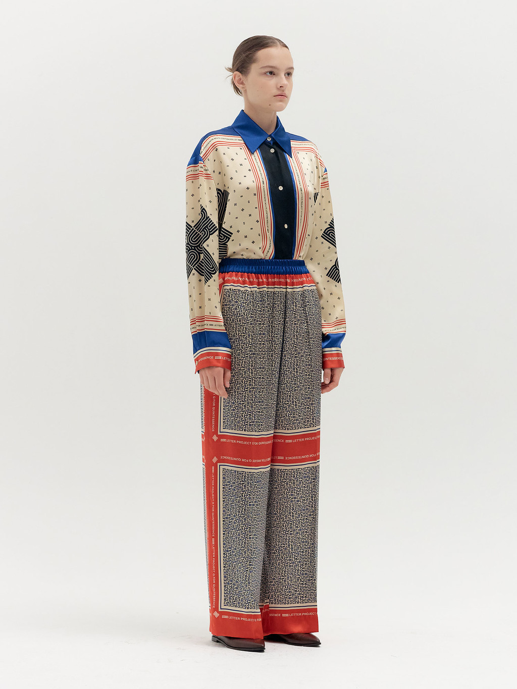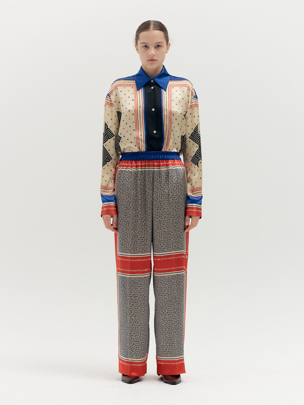 - Straight-fit pants featuring an exclusive printed pattern developed for the collection.