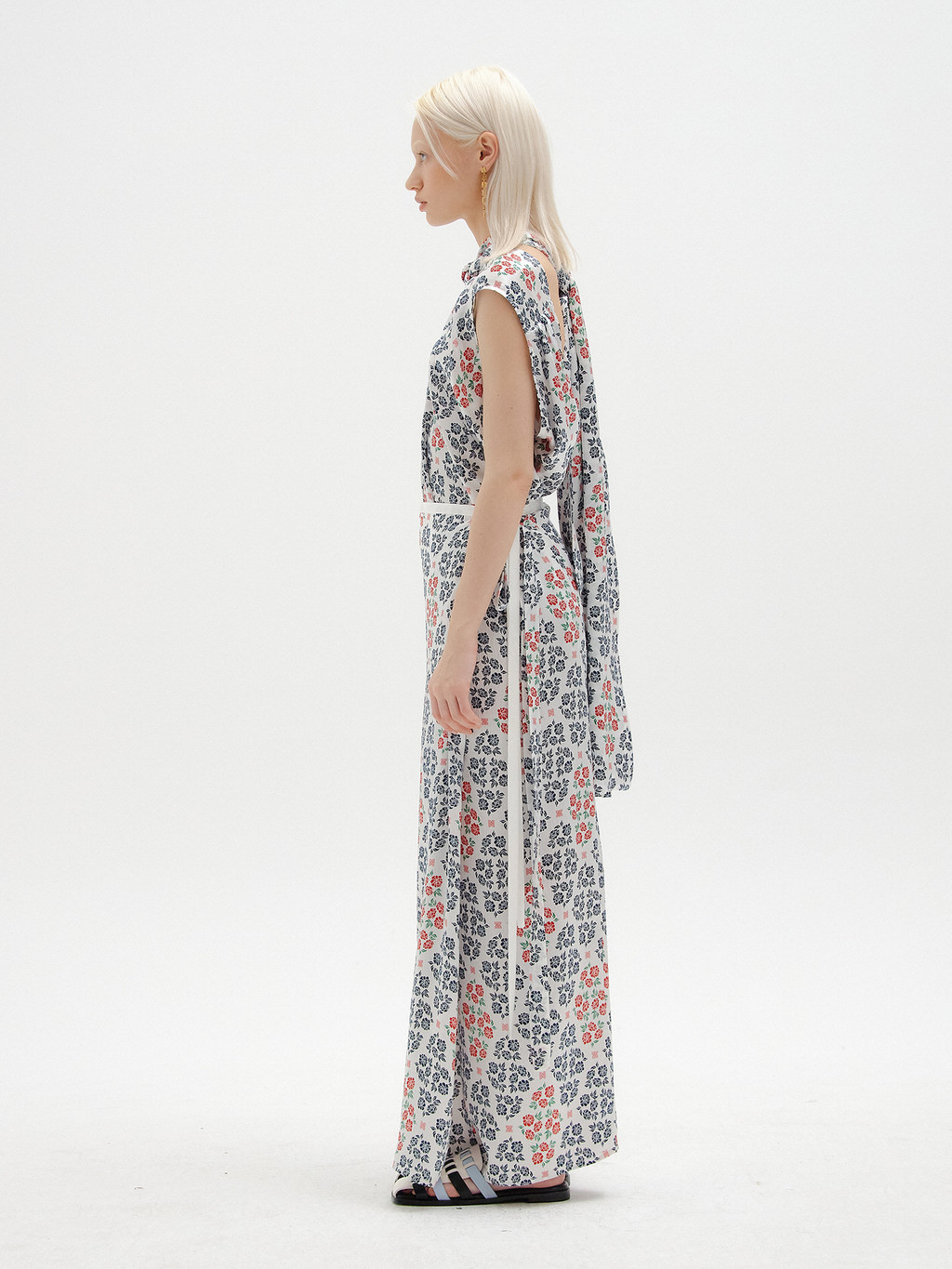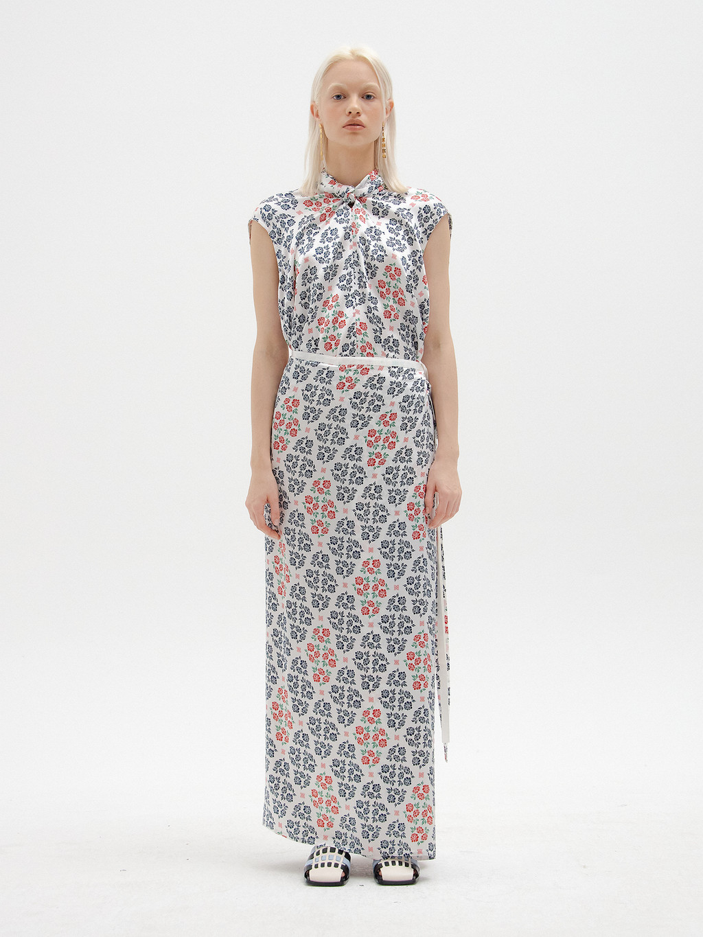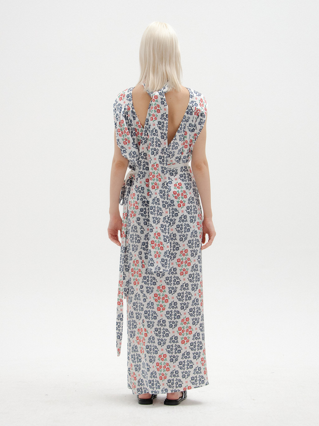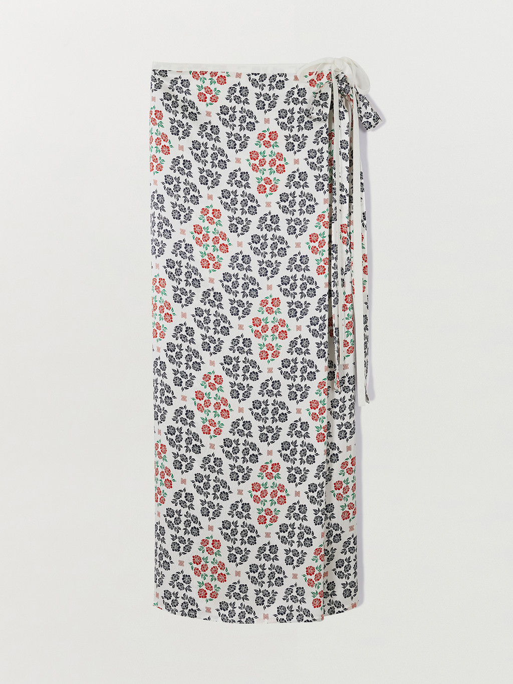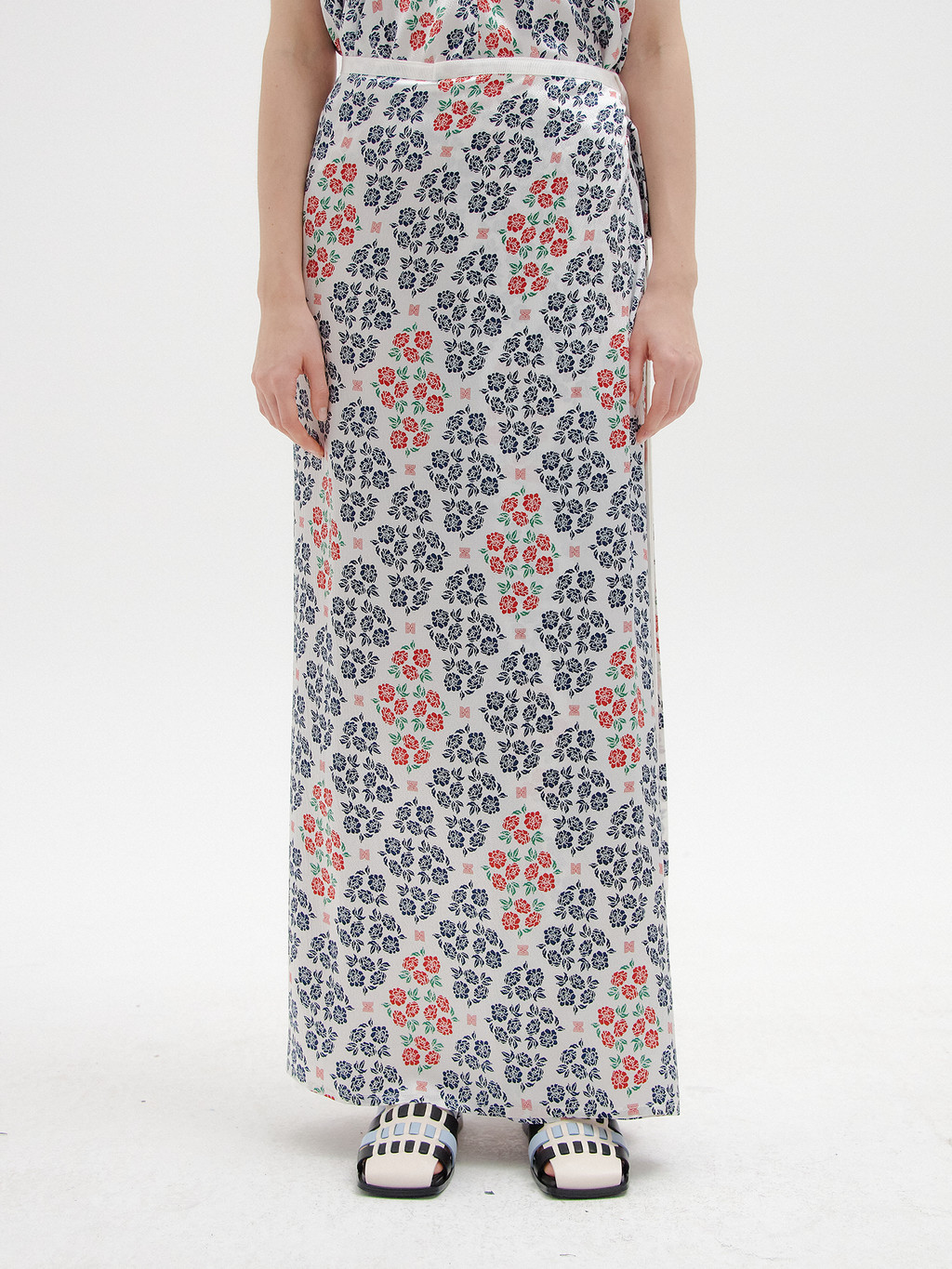 - Maxi wrap skirt made of exclusive floral pattern printed silk developed by EENK.