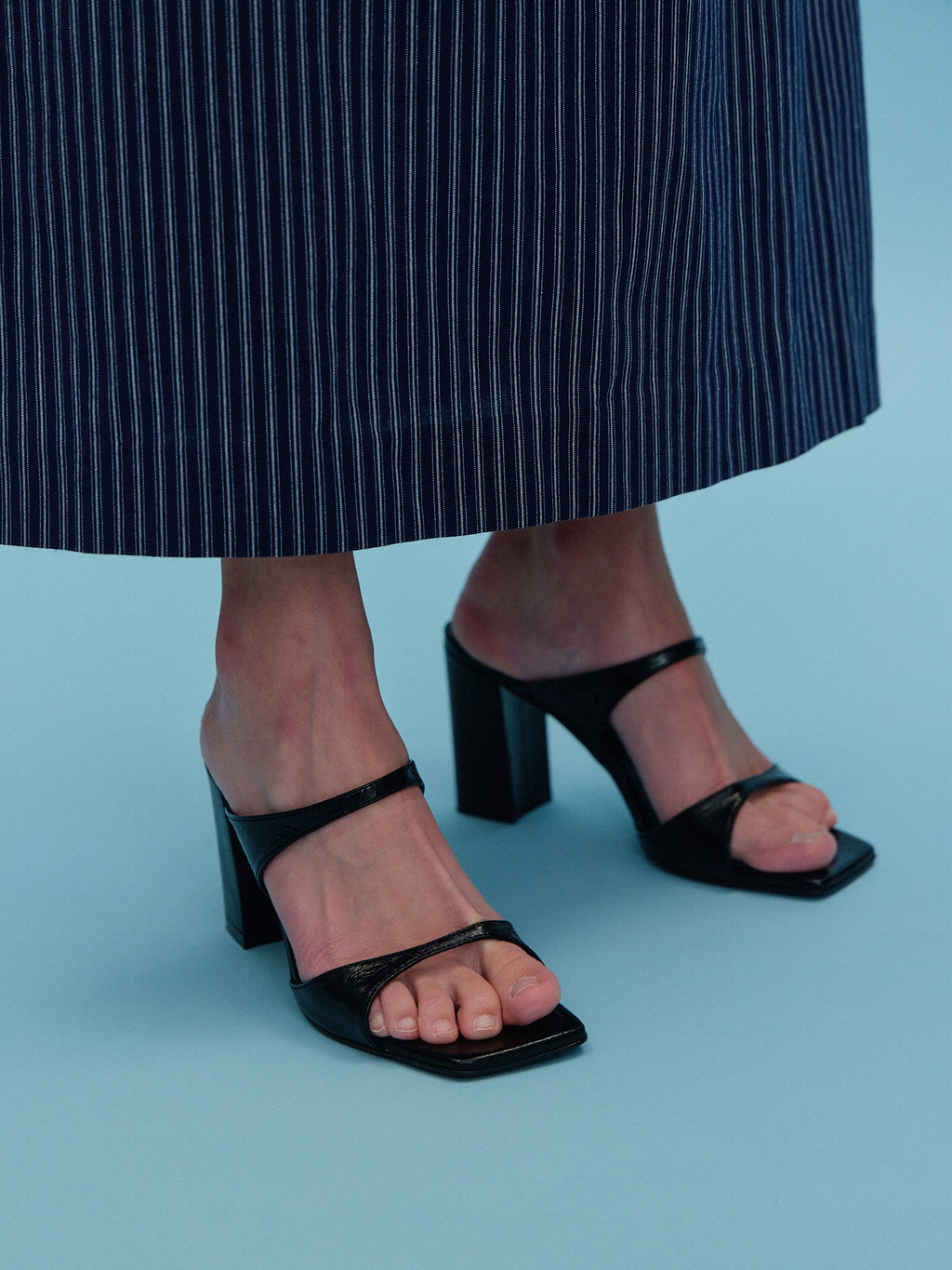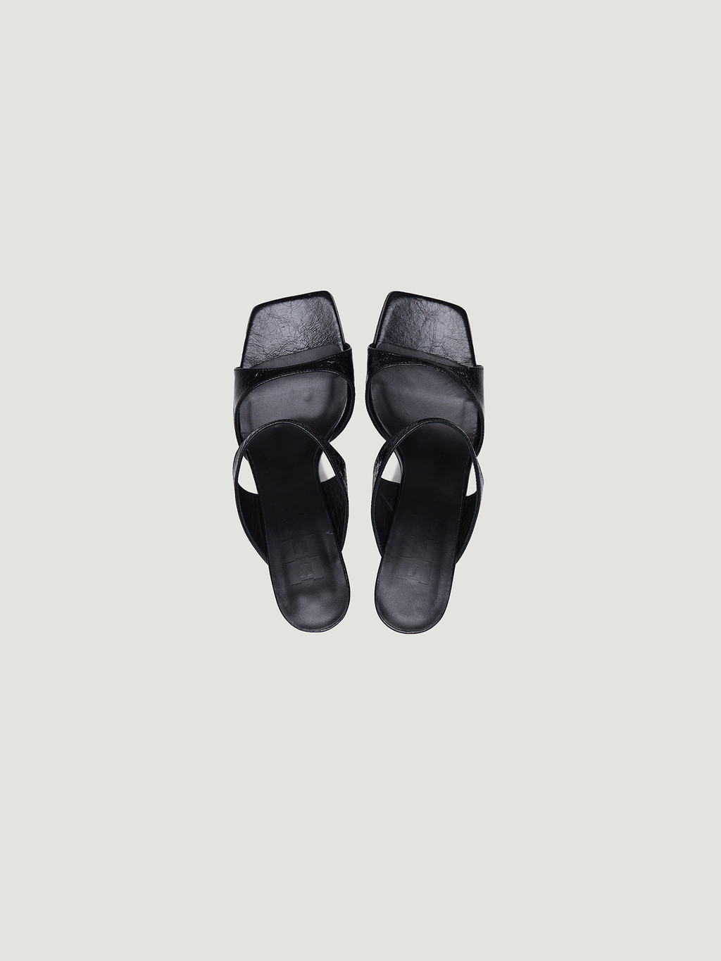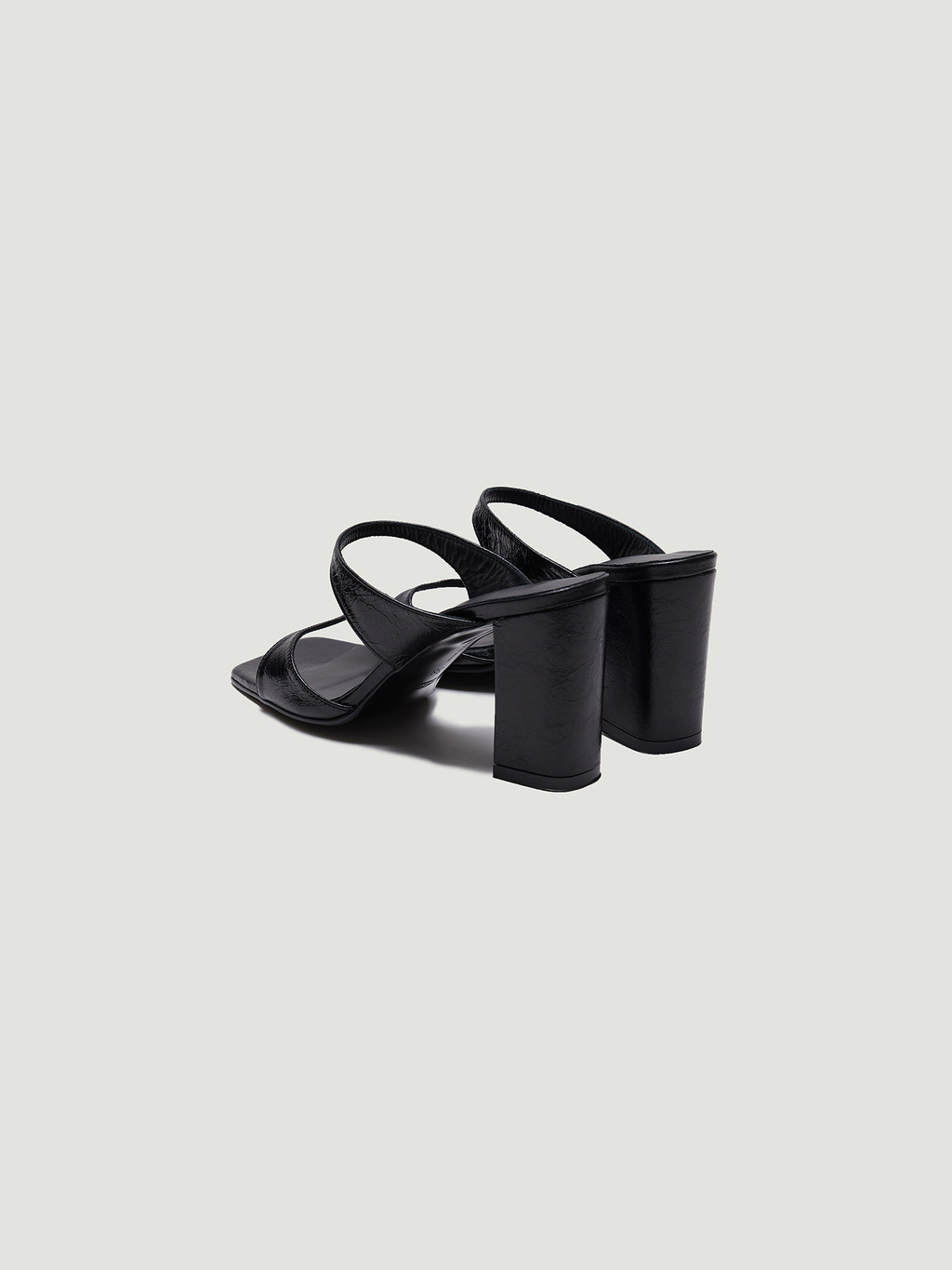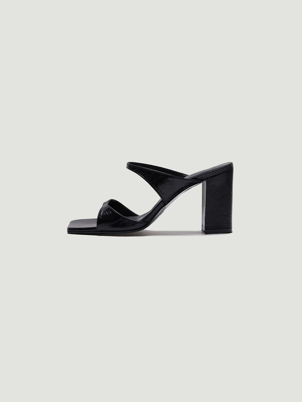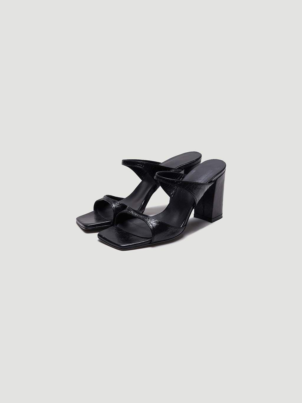 - Squared-toe mules made from sheep leather.