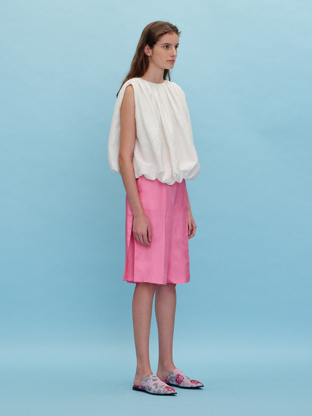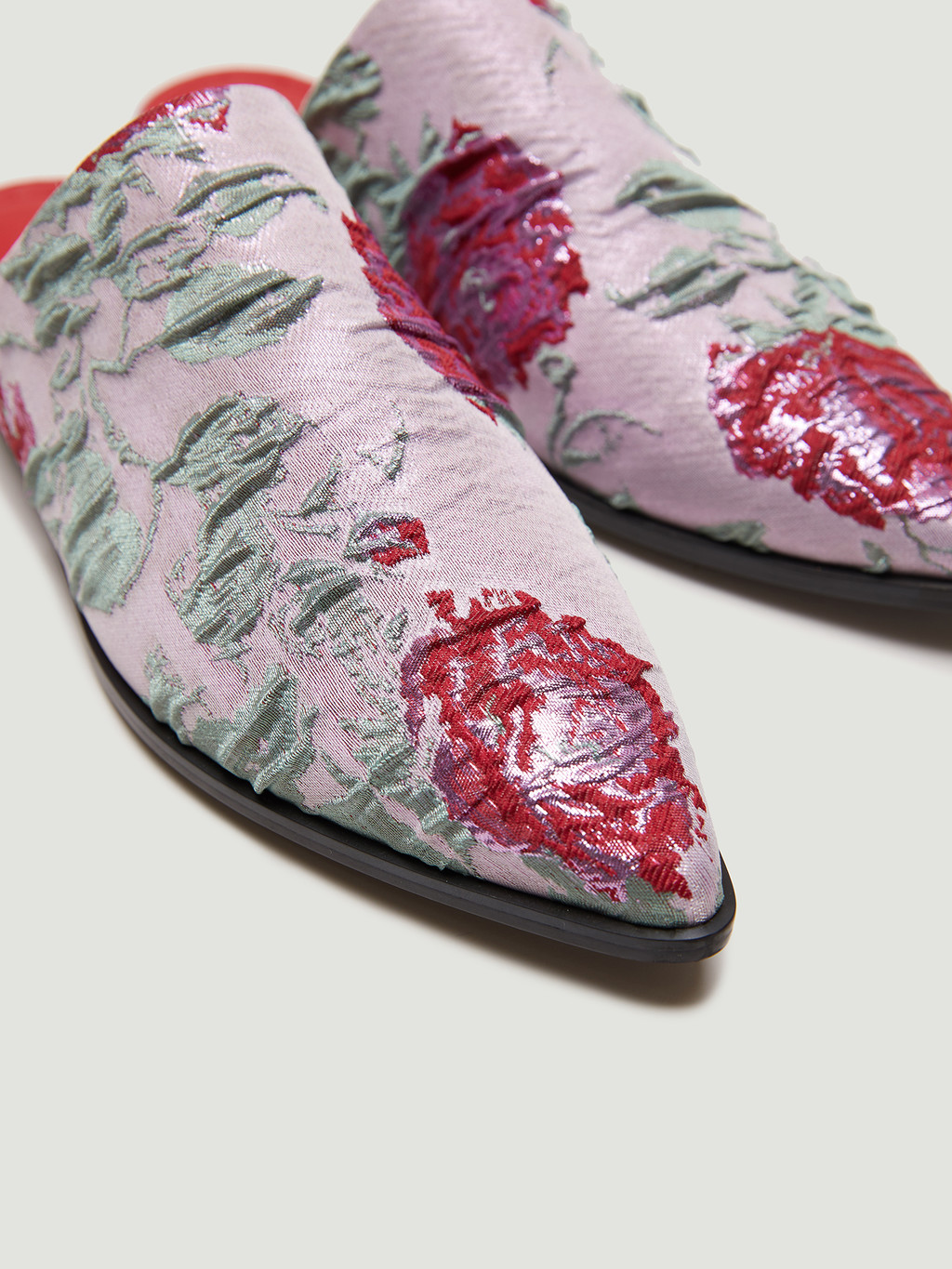 - Pointed toe slippers in an exclusive floral pattern developed by EENK.