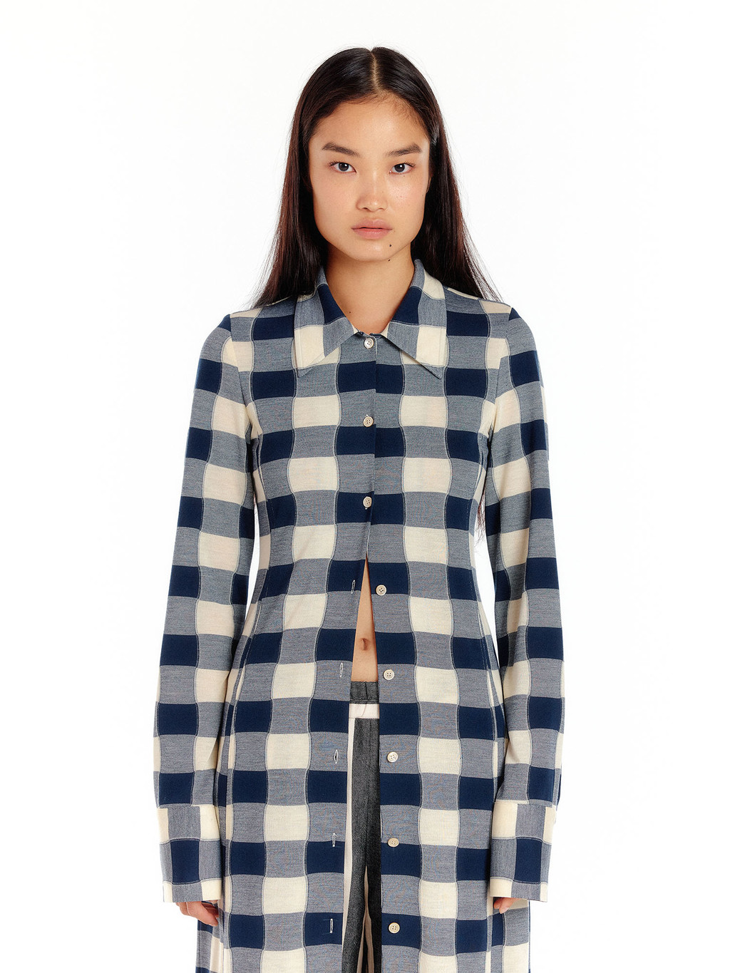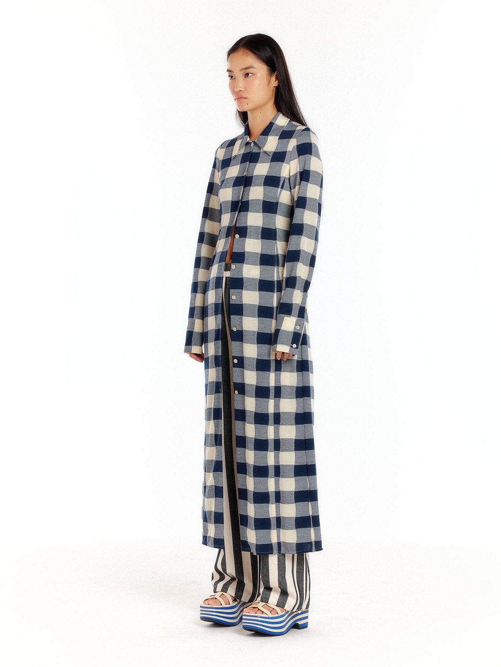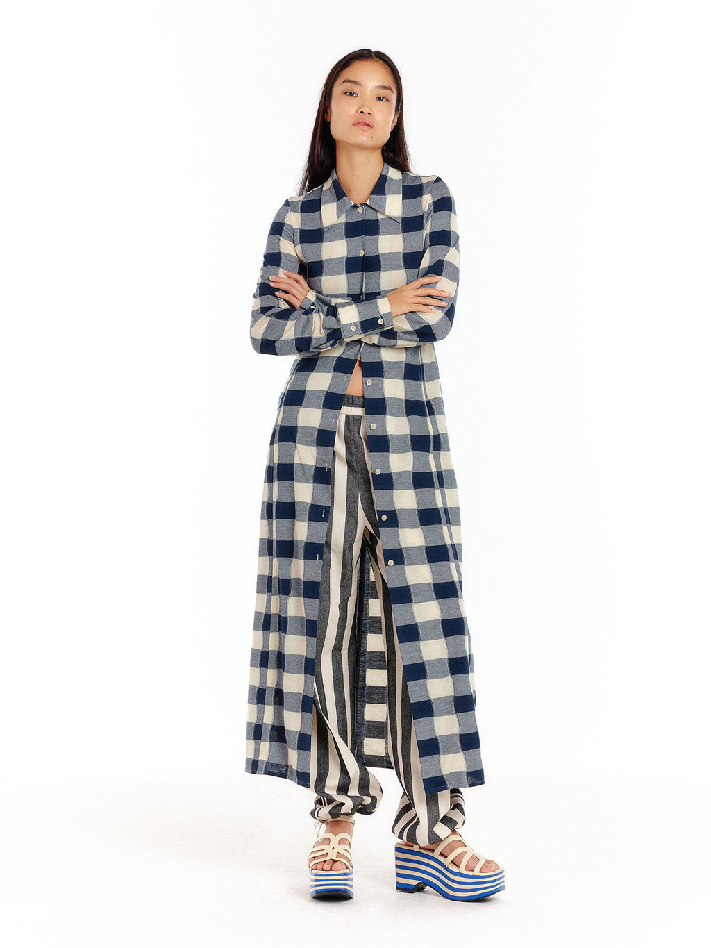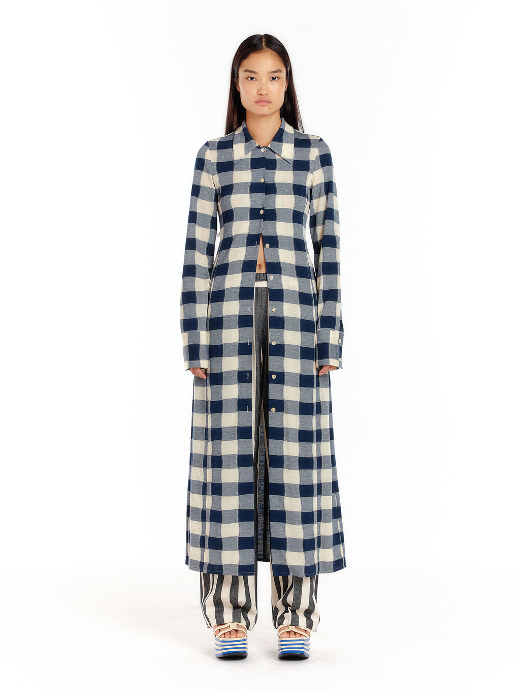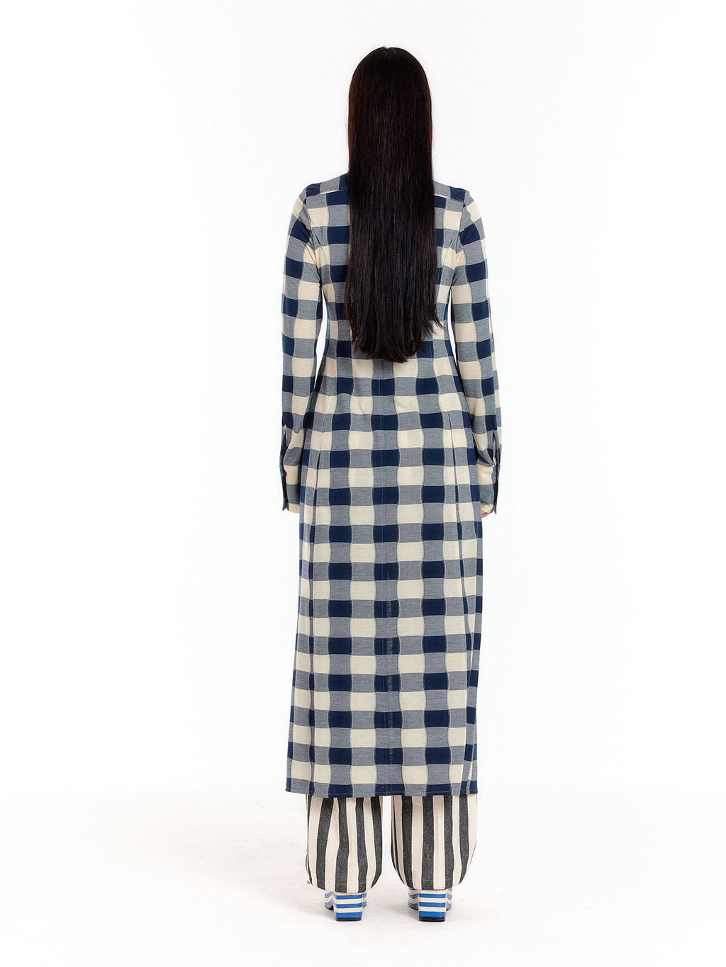 - Jersey maxi shirt dress in check pattern.