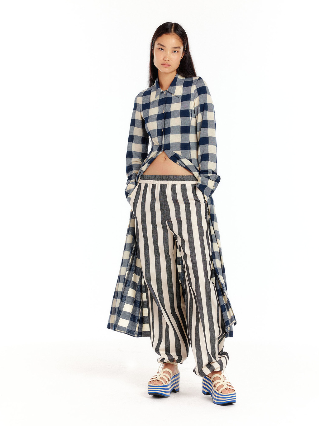 COLOR : Ivory/Navy Check