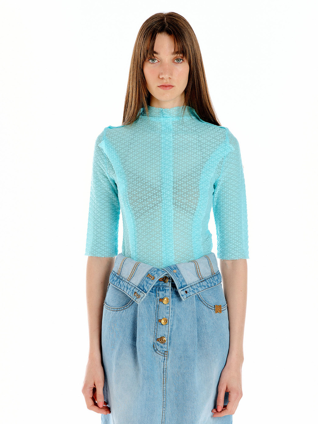 - Half sleeve jersey top in mint.