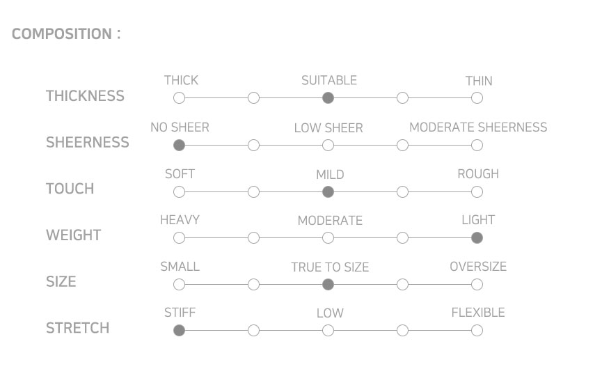 MATERIAL : Viscose 91%, Polyester 8%, Elastane 1%