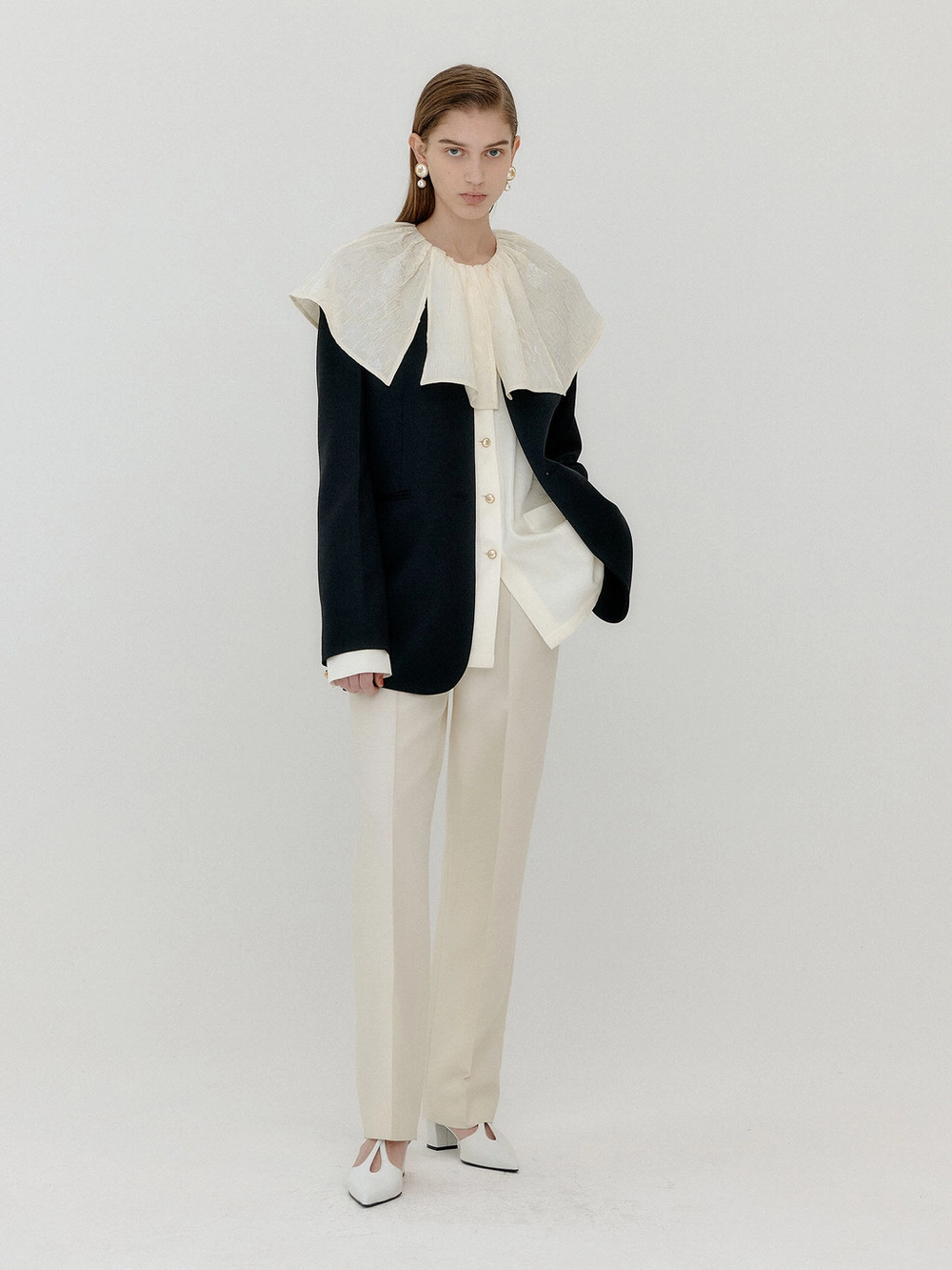- Straight pants in ivory.