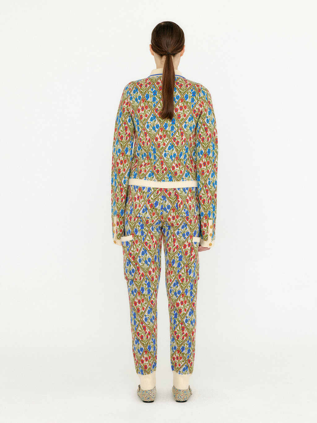 - Floral pattern knit jogger pants.