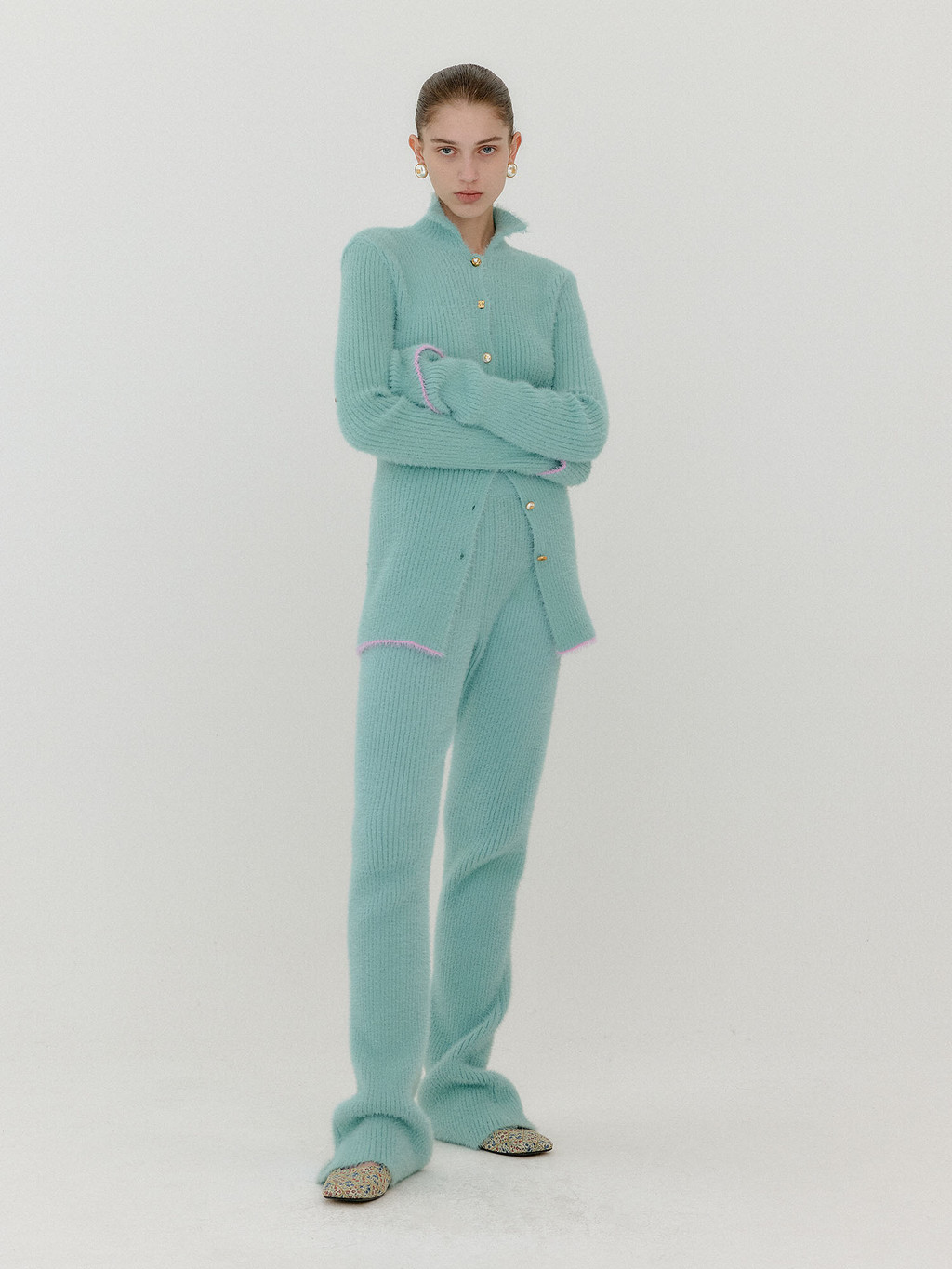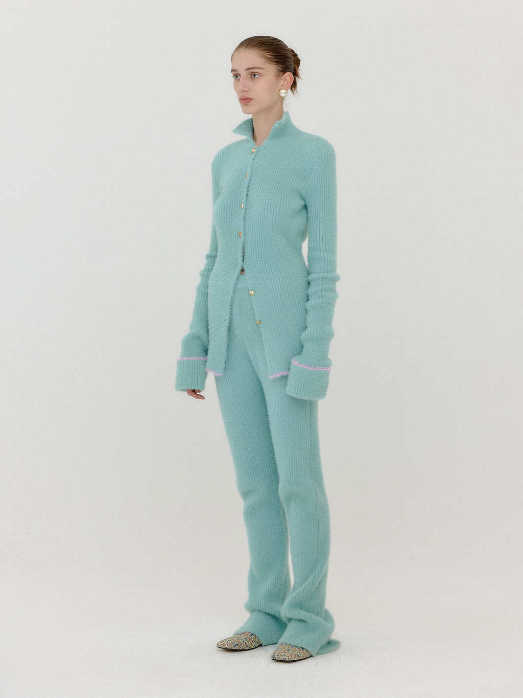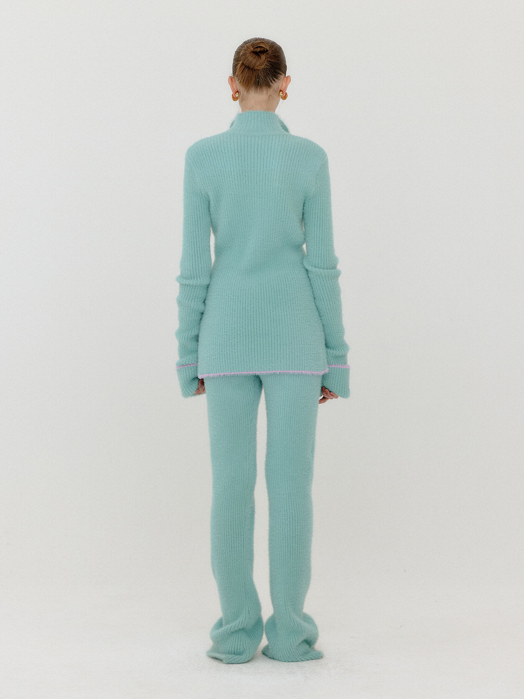 - Ribbed knit pants in mint.