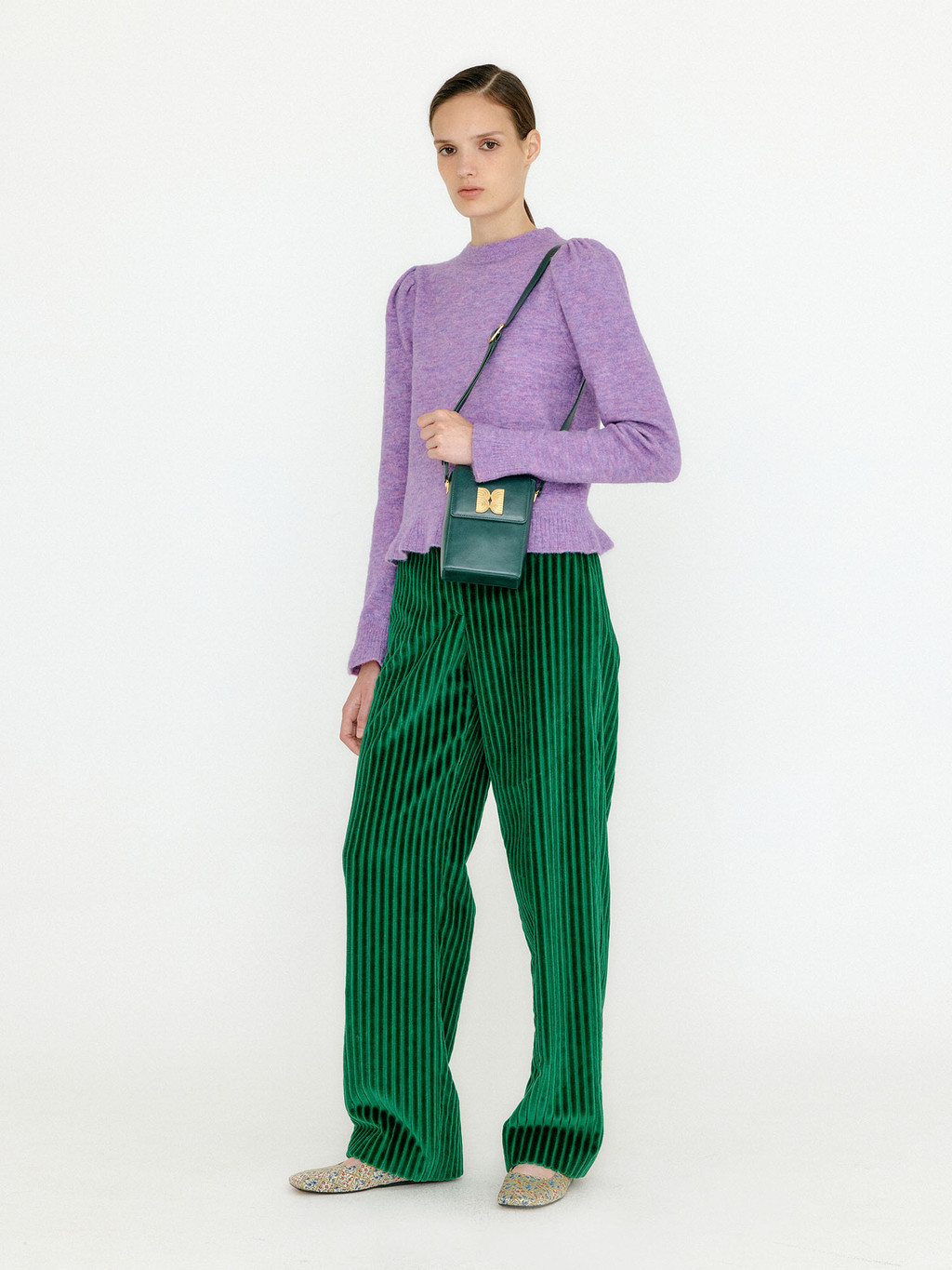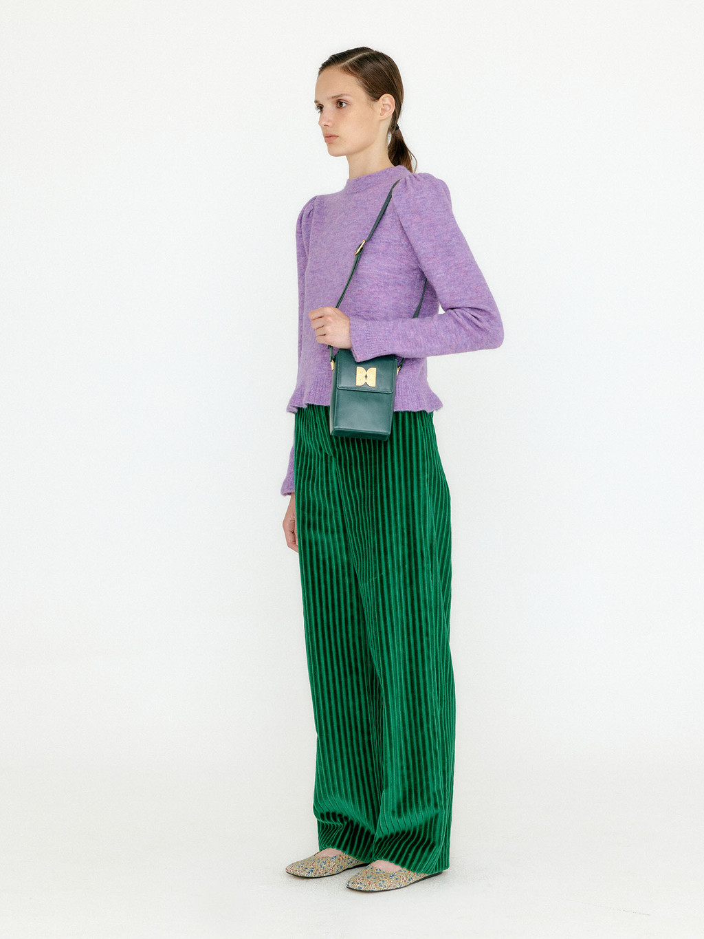 - Puff sleeves add a feminine mood.