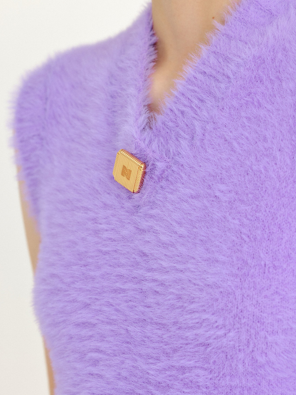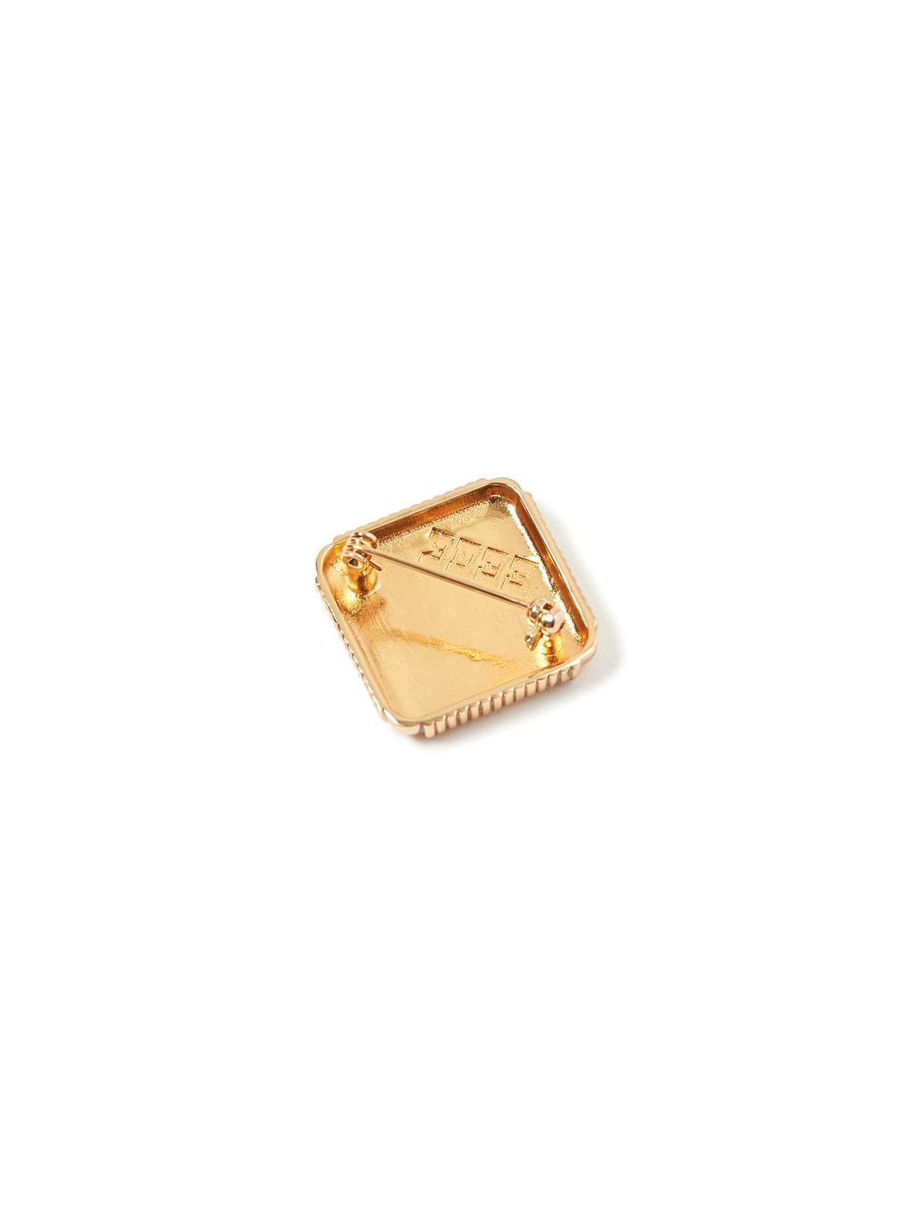 - 24K gold plated logo brooch.