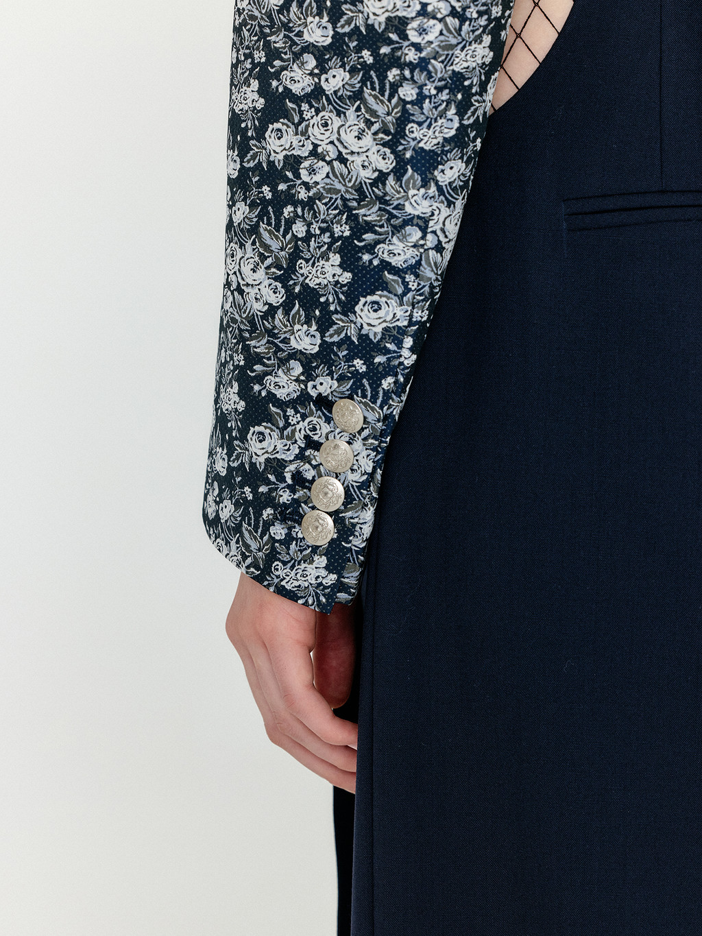 - Silver engraved buttons exclusively developed for the collection