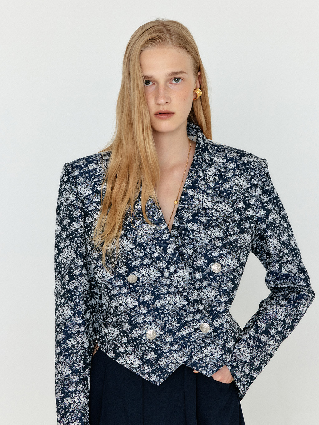 - Printed polyester cropped blazer
