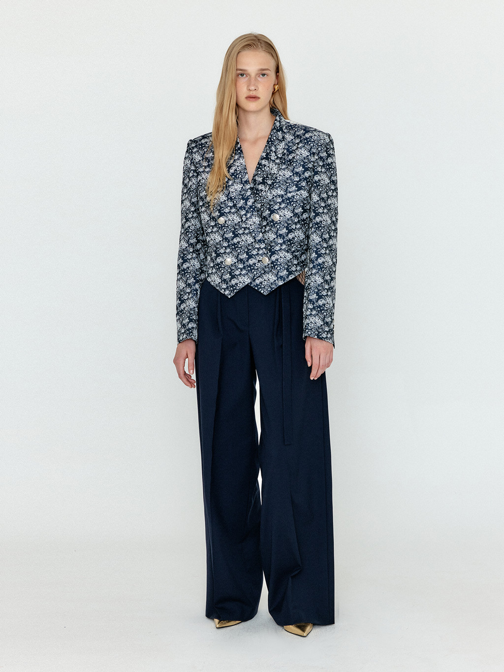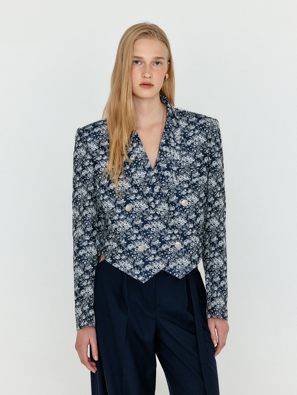 WEM Double-Breasted Short Blazer - Navy Multi