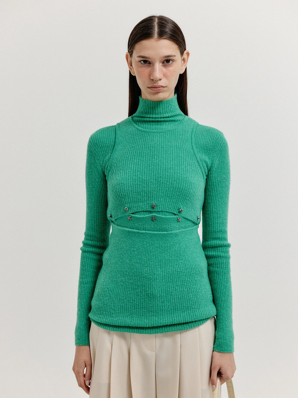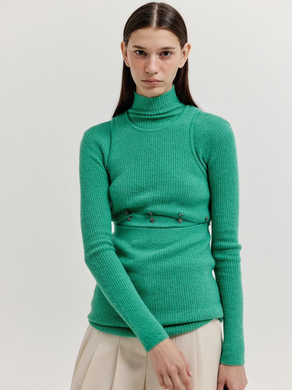 XEPORA Separable Sleeveless Ribbed Top - Green