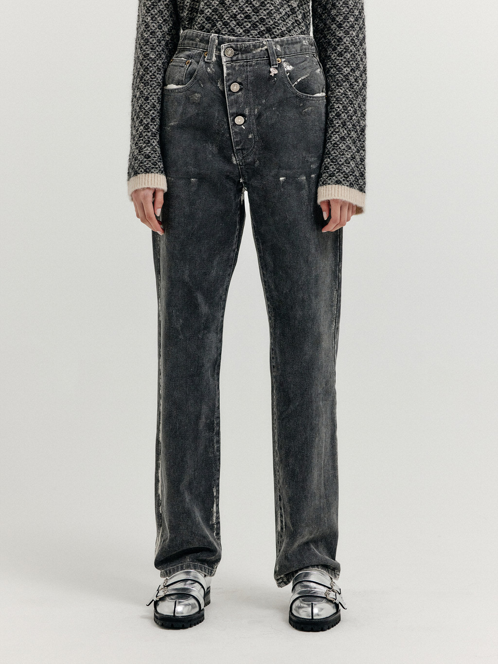 XENEVA Asymmetric Front Denim Pants - Dark Grey