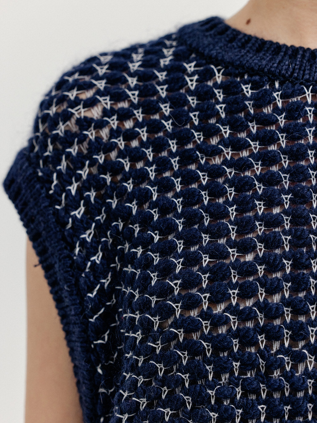 MATERIAL : Shell : Wool 90%, Acrylic 10% / Trim : Acrylic 45%, Cotton 45%, Nylon 10%