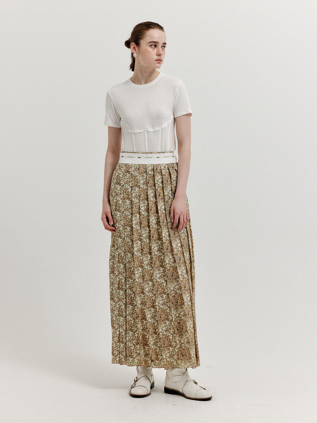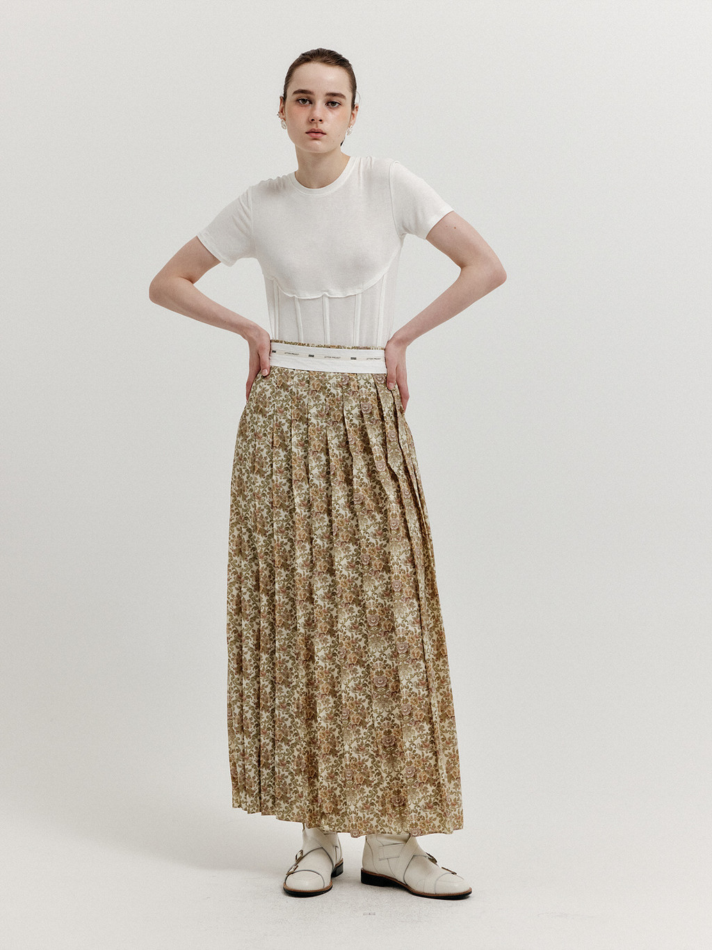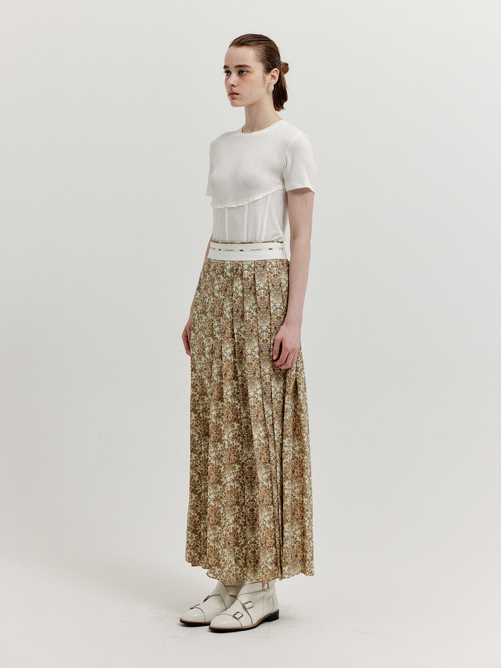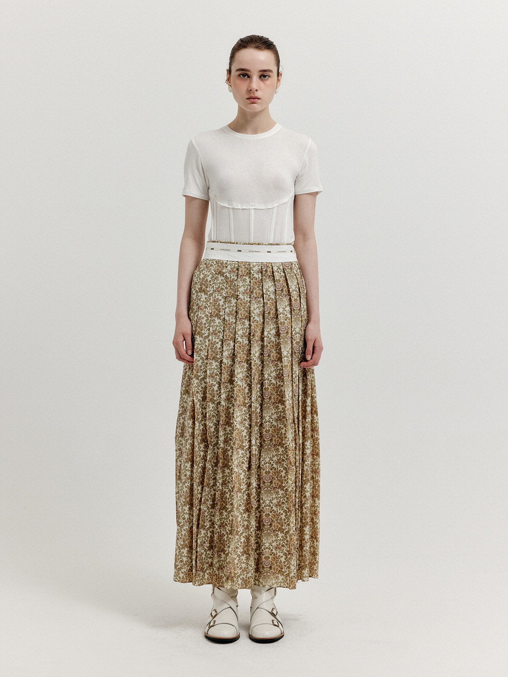 XOVEL Pleated Maxi Skirt - Beige Multi