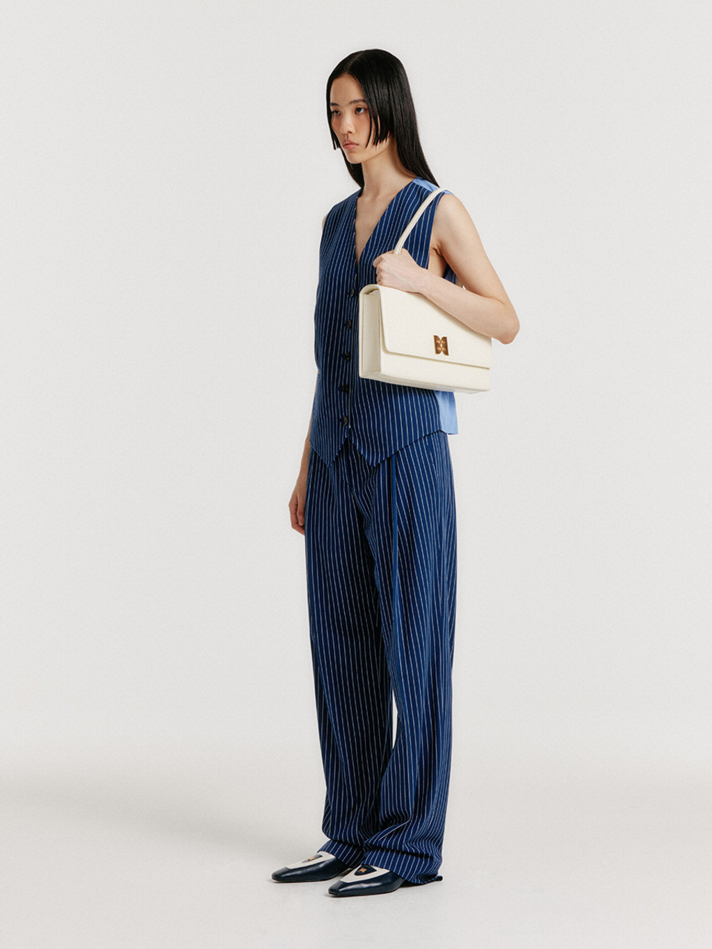 YIVA Buttoned Vest - Navy Stripe
