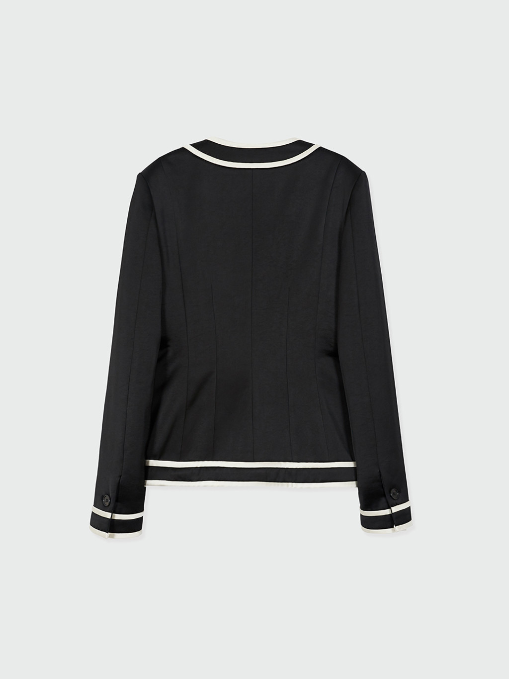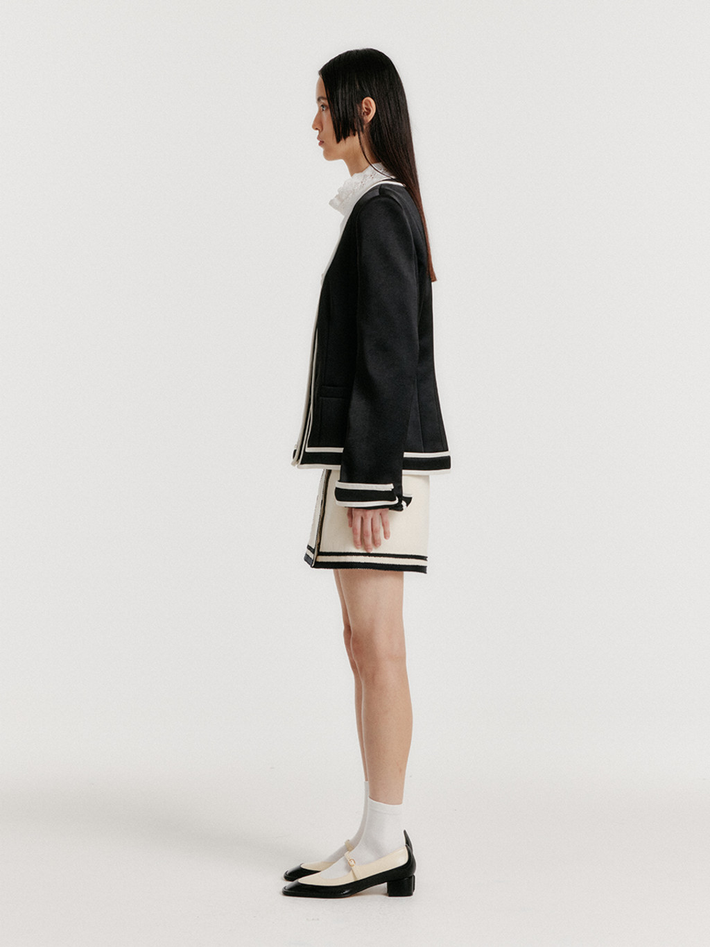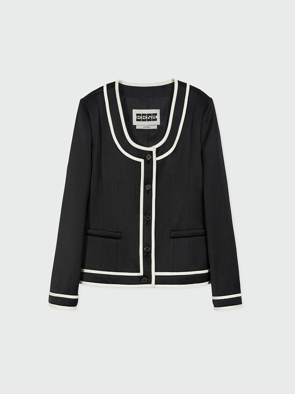 YASE Contrast U-Neck Jacket - Black/Ivory