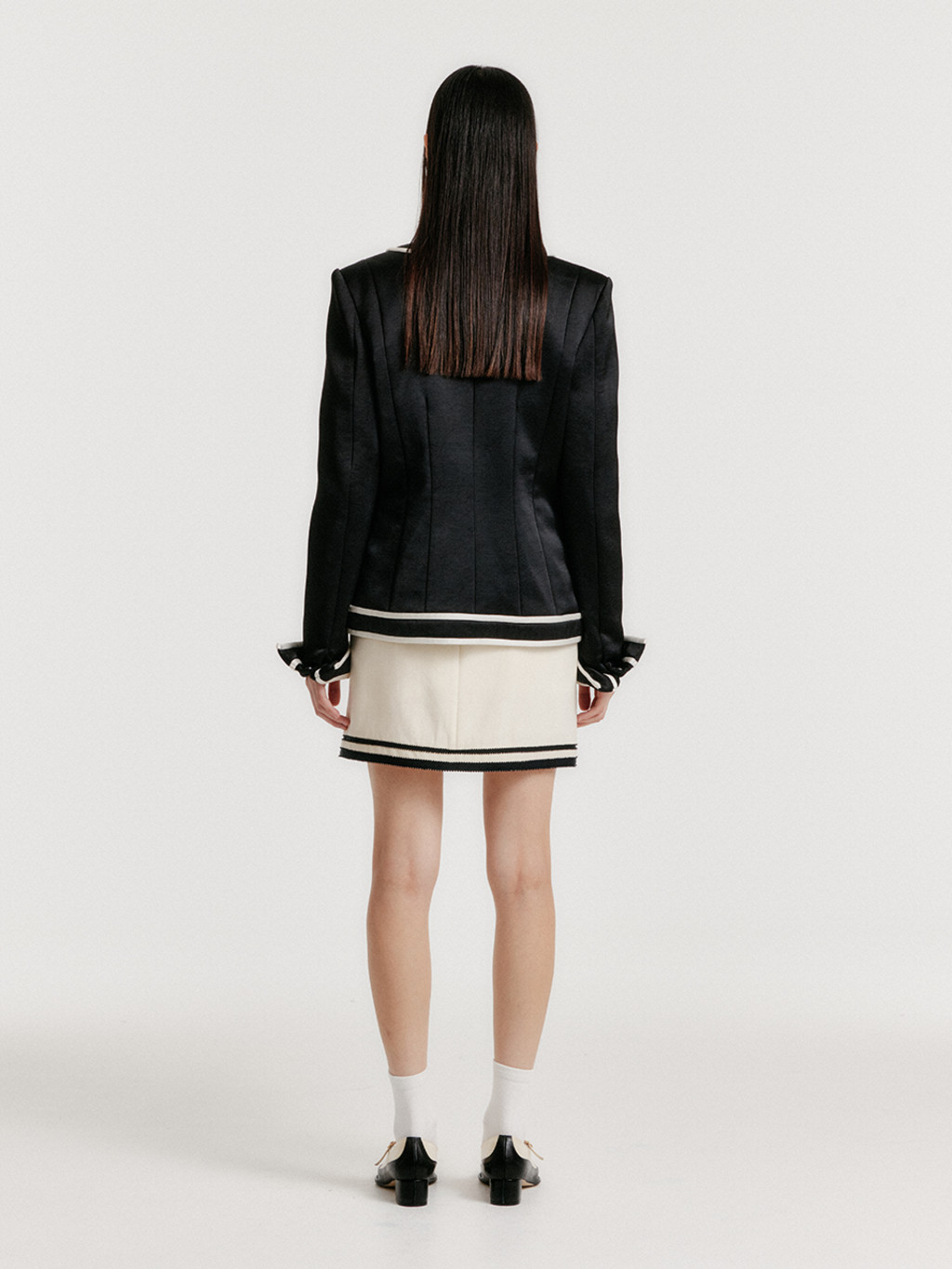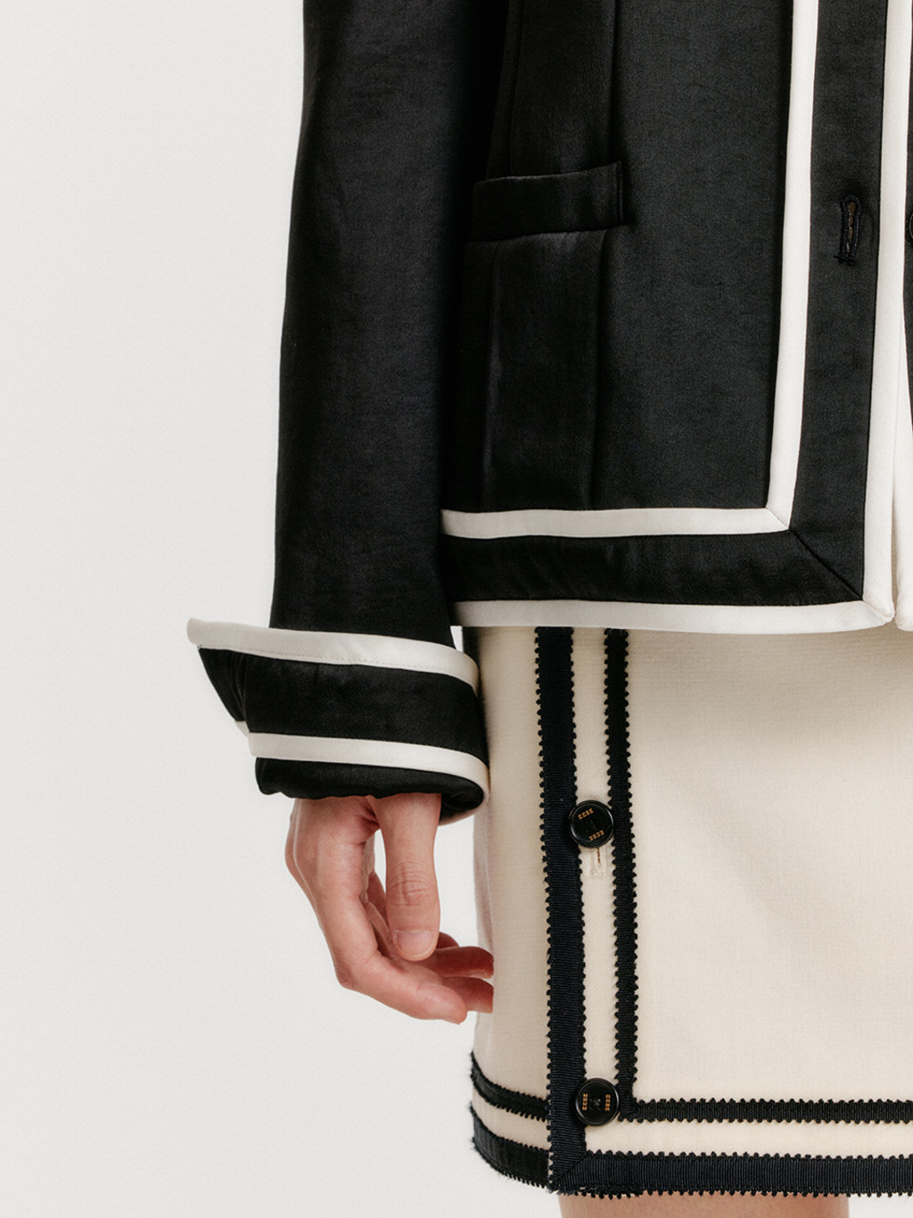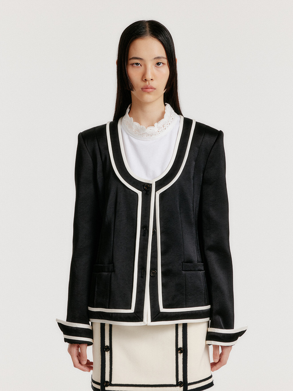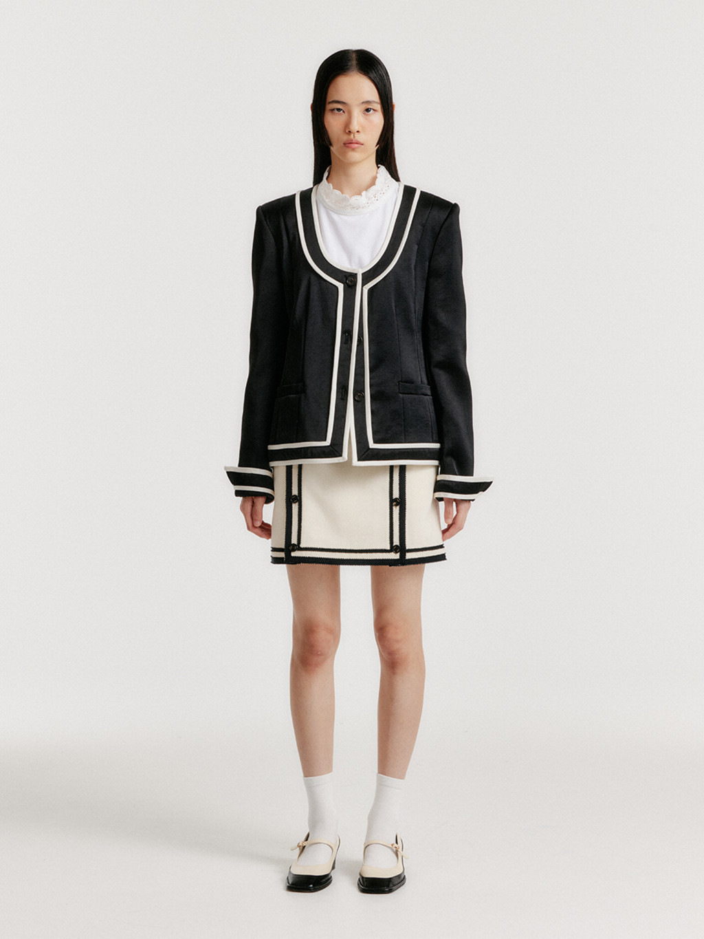 YASE Contrast U-Neck Jacket - Black/Ivory