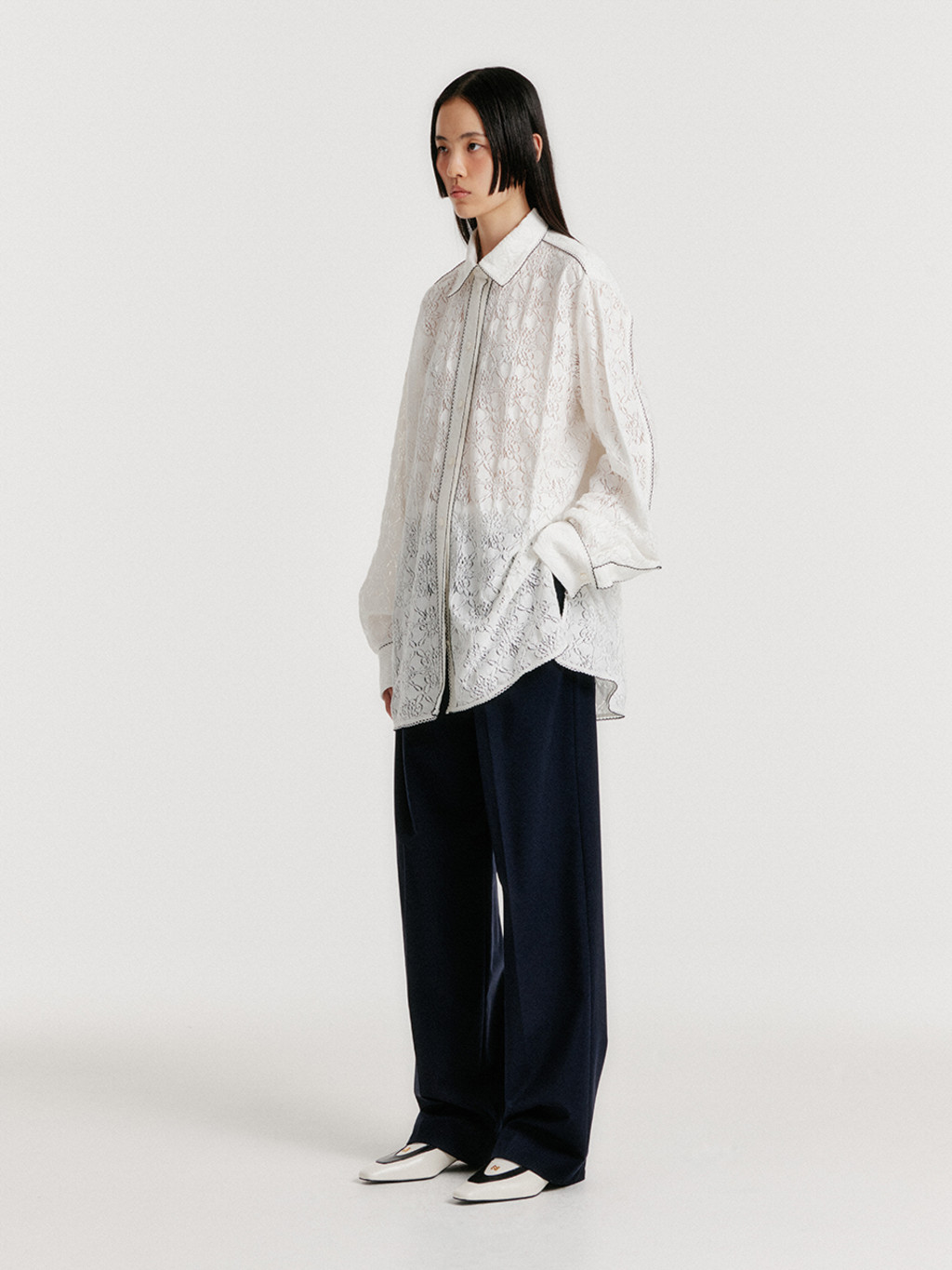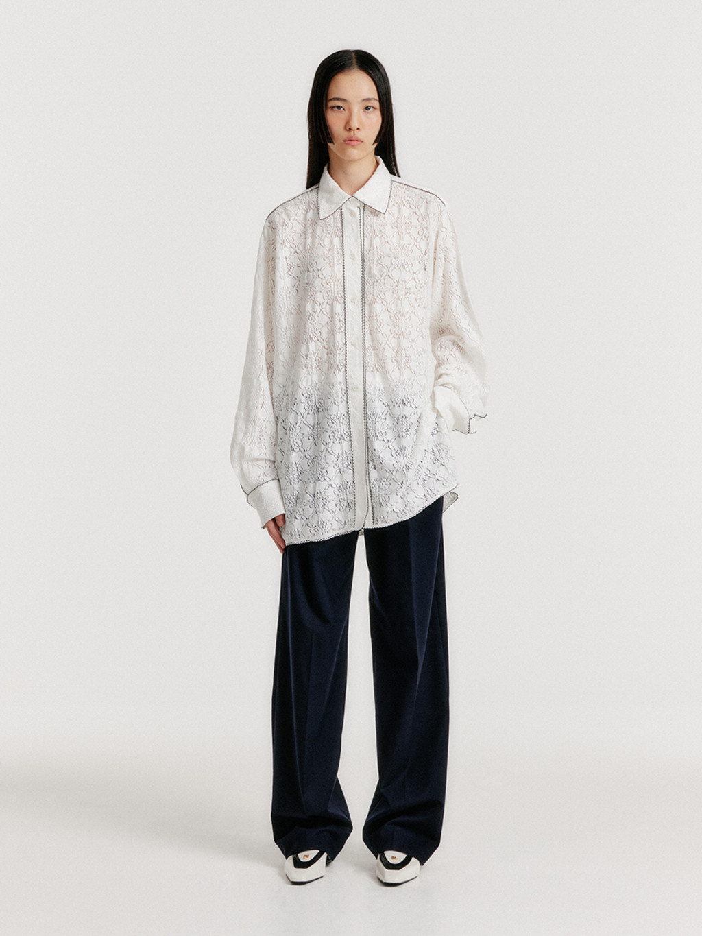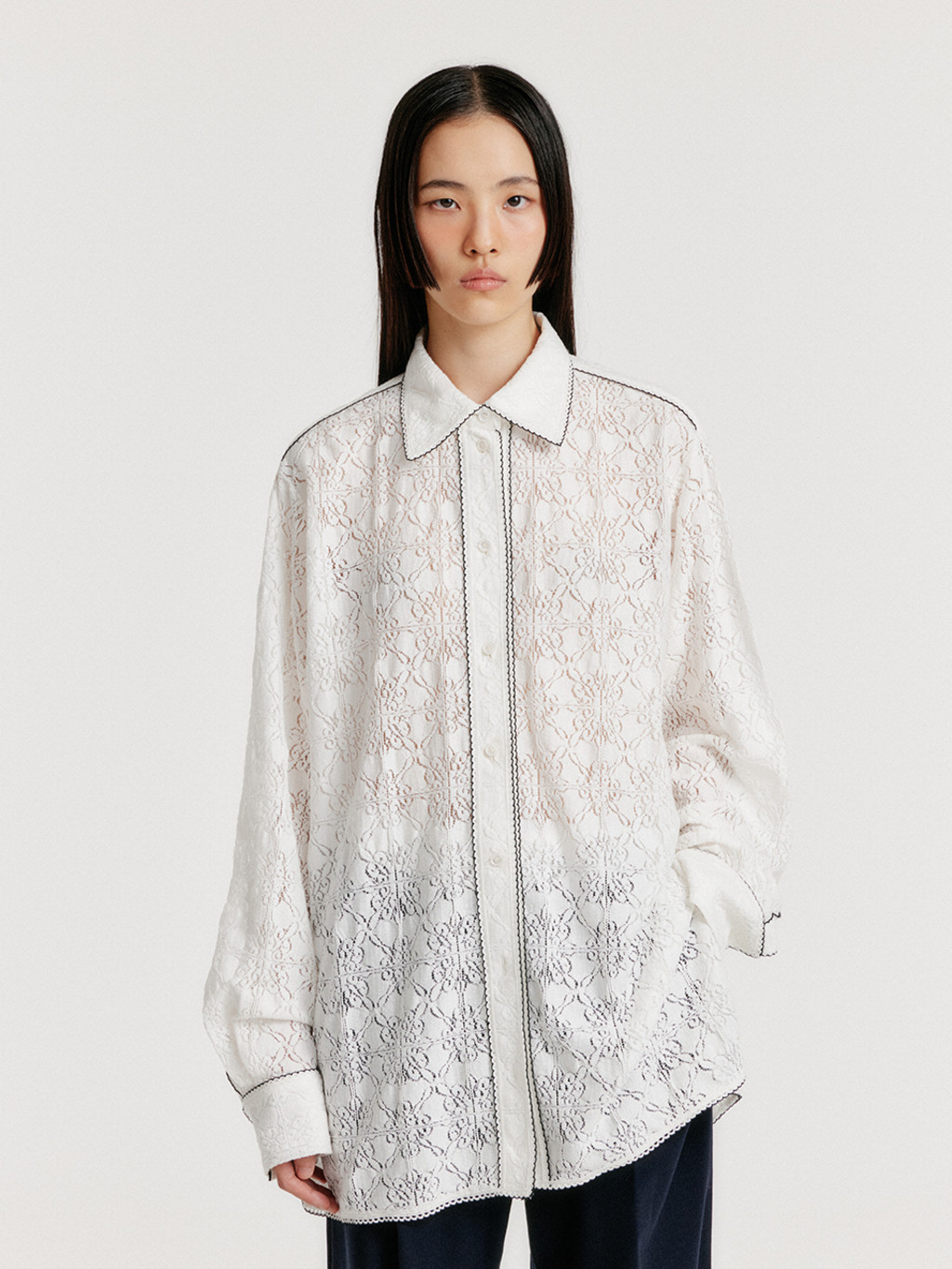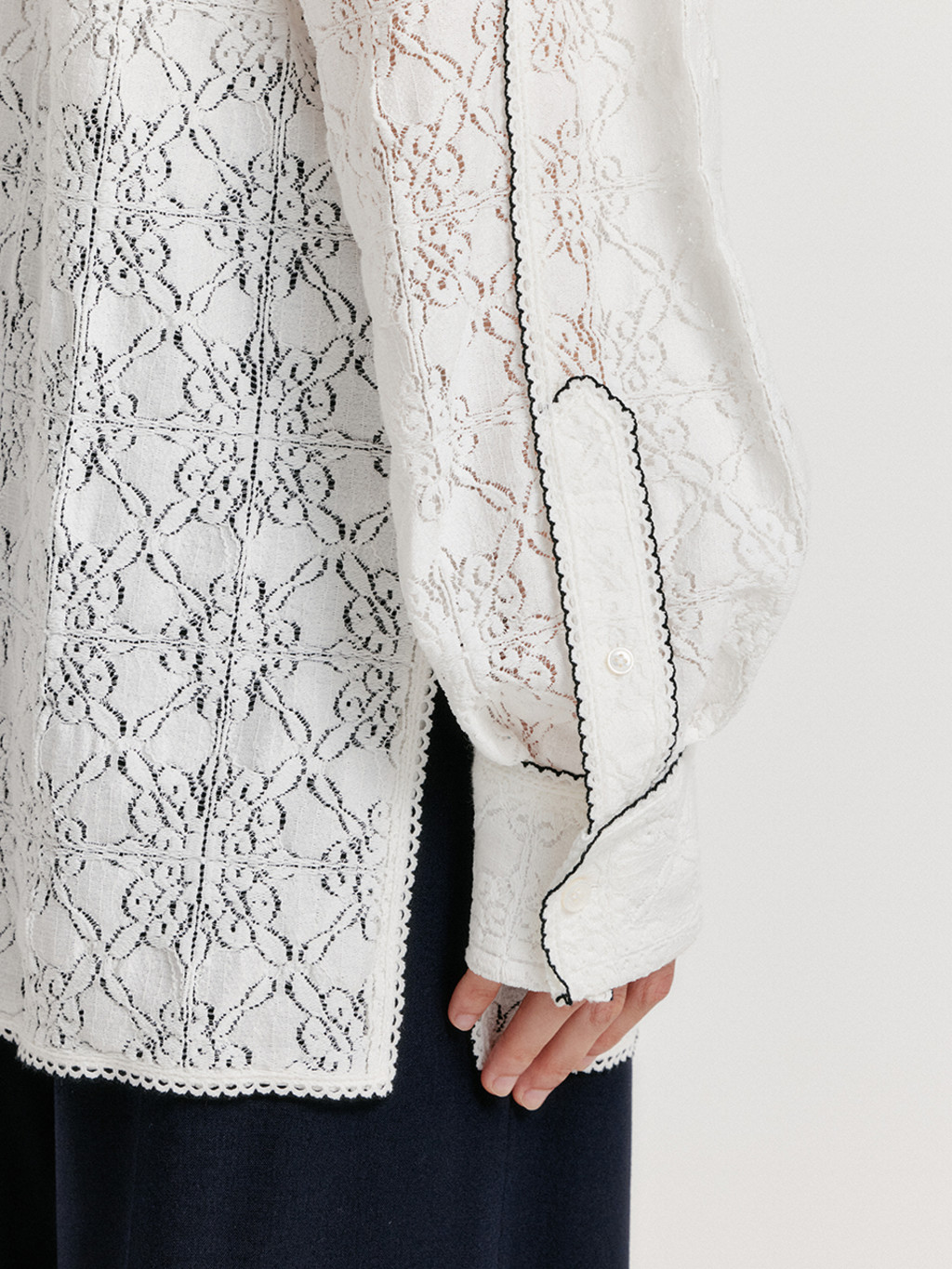- Shirt with lace trim detail.