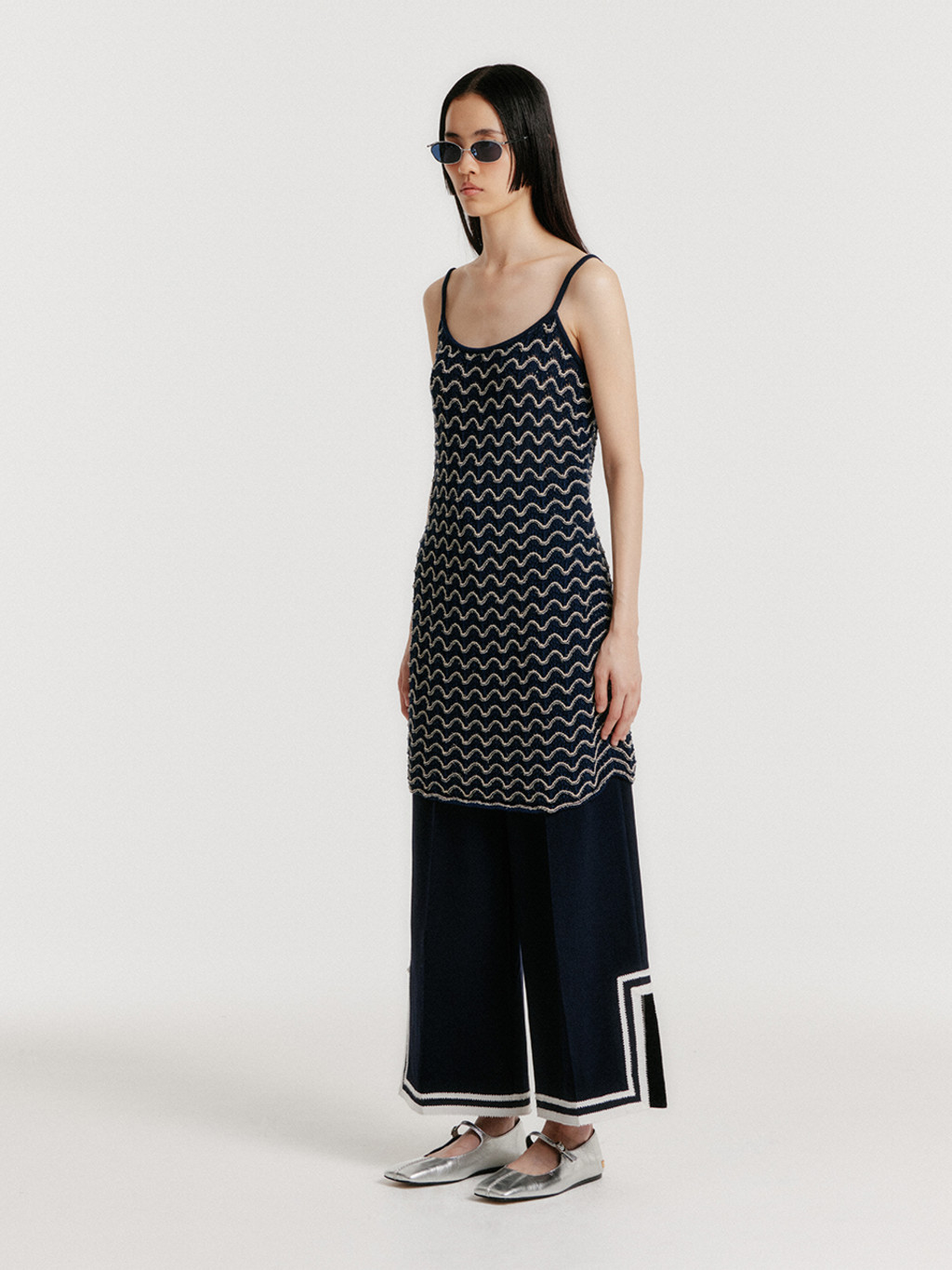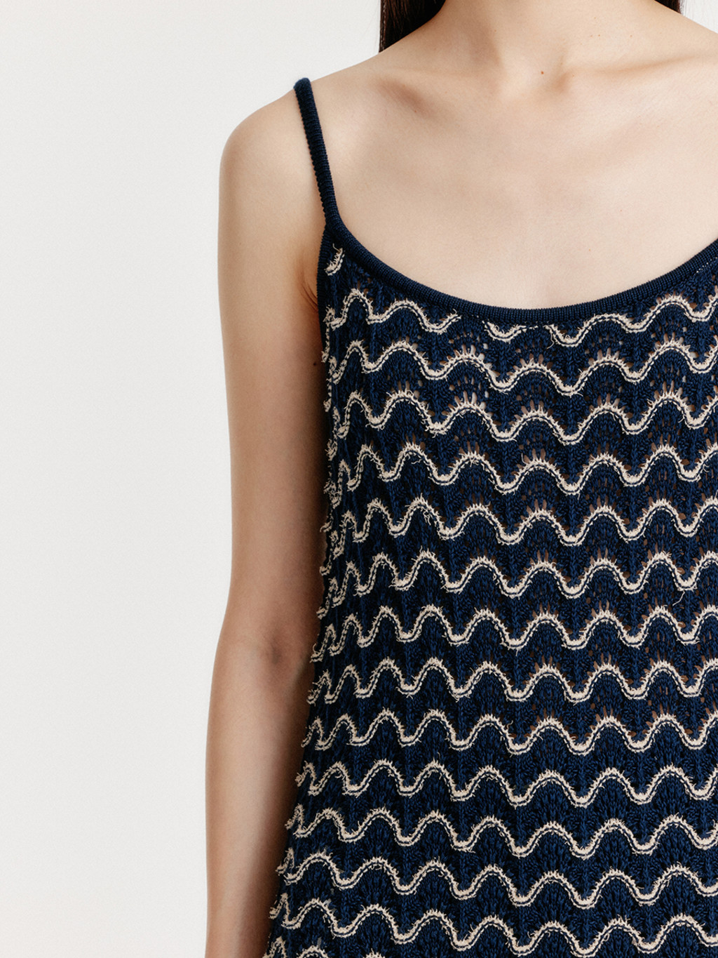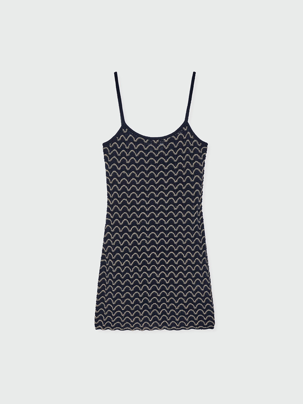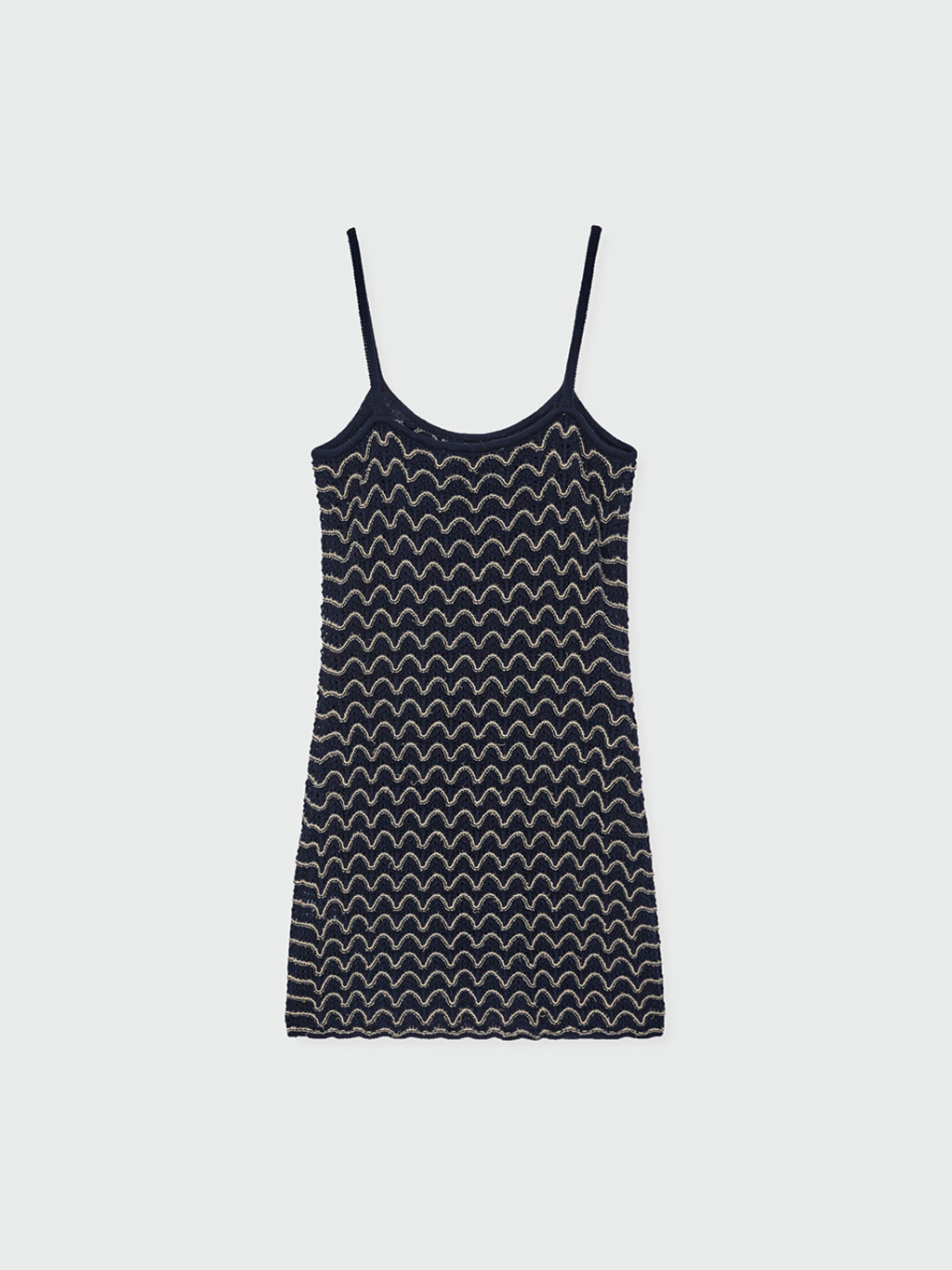 YUTONI Lace Textured Knit Dress - Navy/Cream