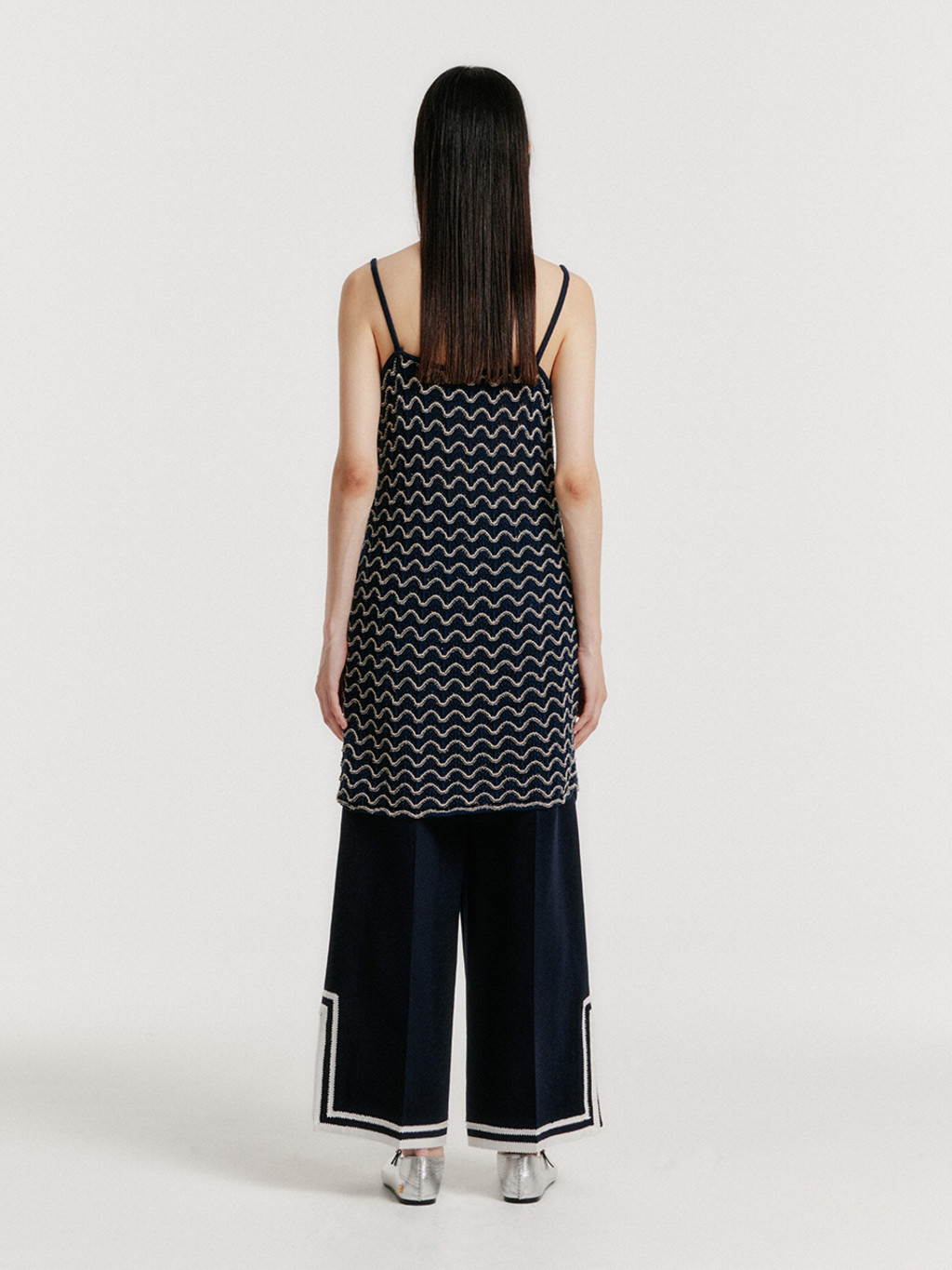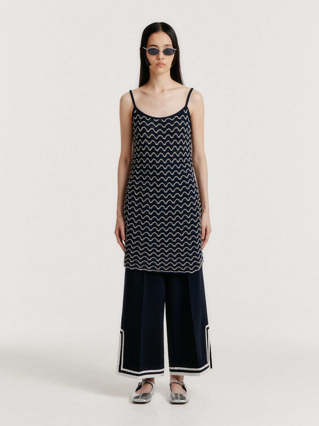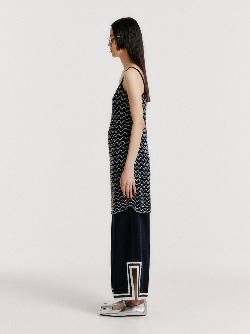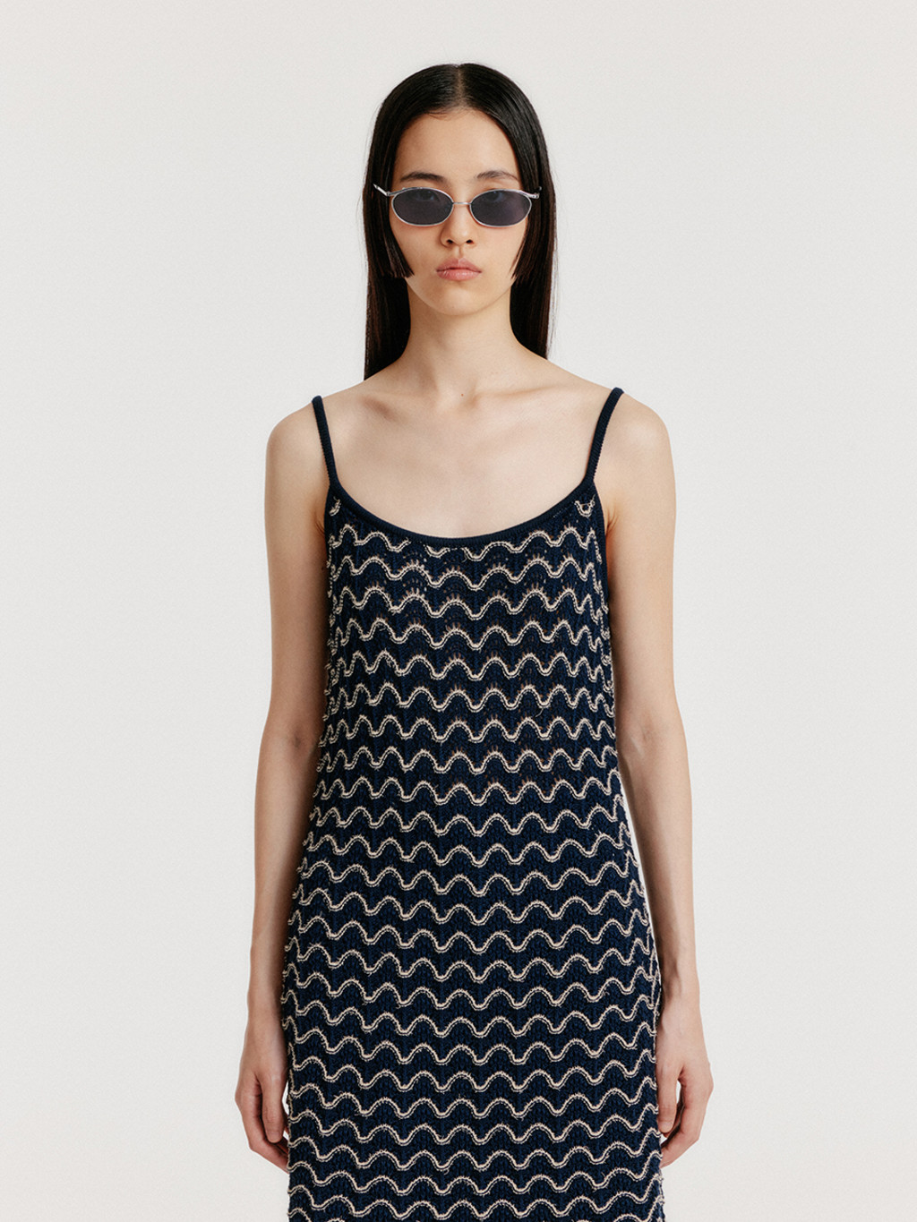 YUTONI Lace Textured Knit Dress - Navy/Cream