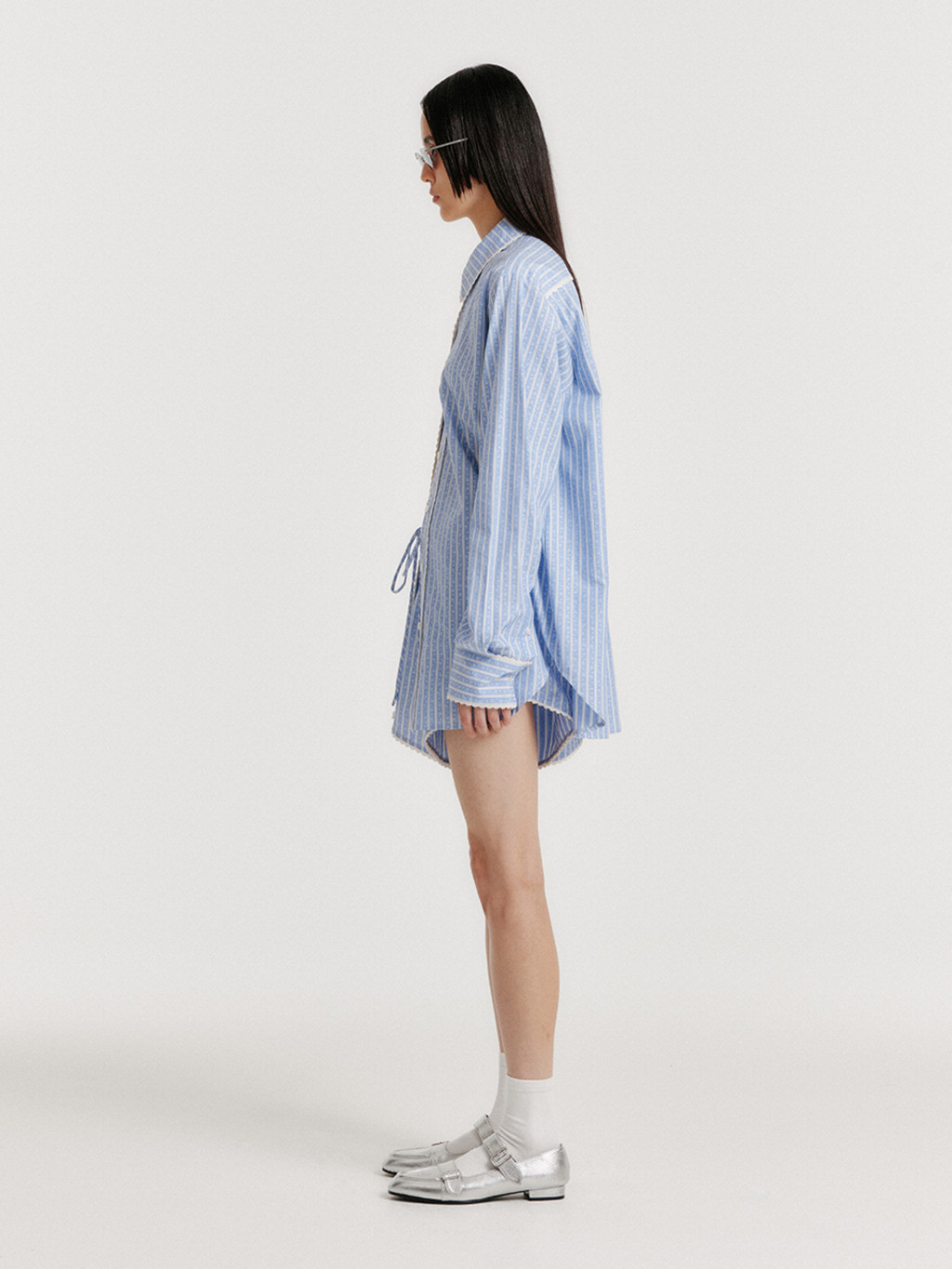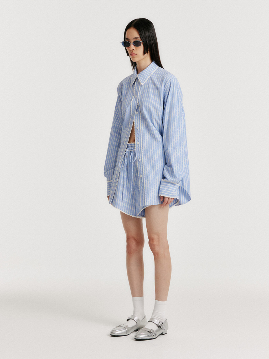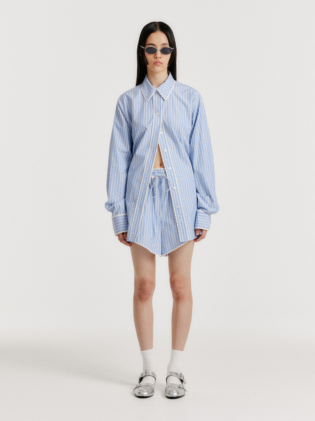 * The product worn by the model is a sample and is produced based on size S. However, there may be differences in total length and detailed sizes compared to the final product. Please refer to the detailed measurements provided on the product page for accurate sizing information.