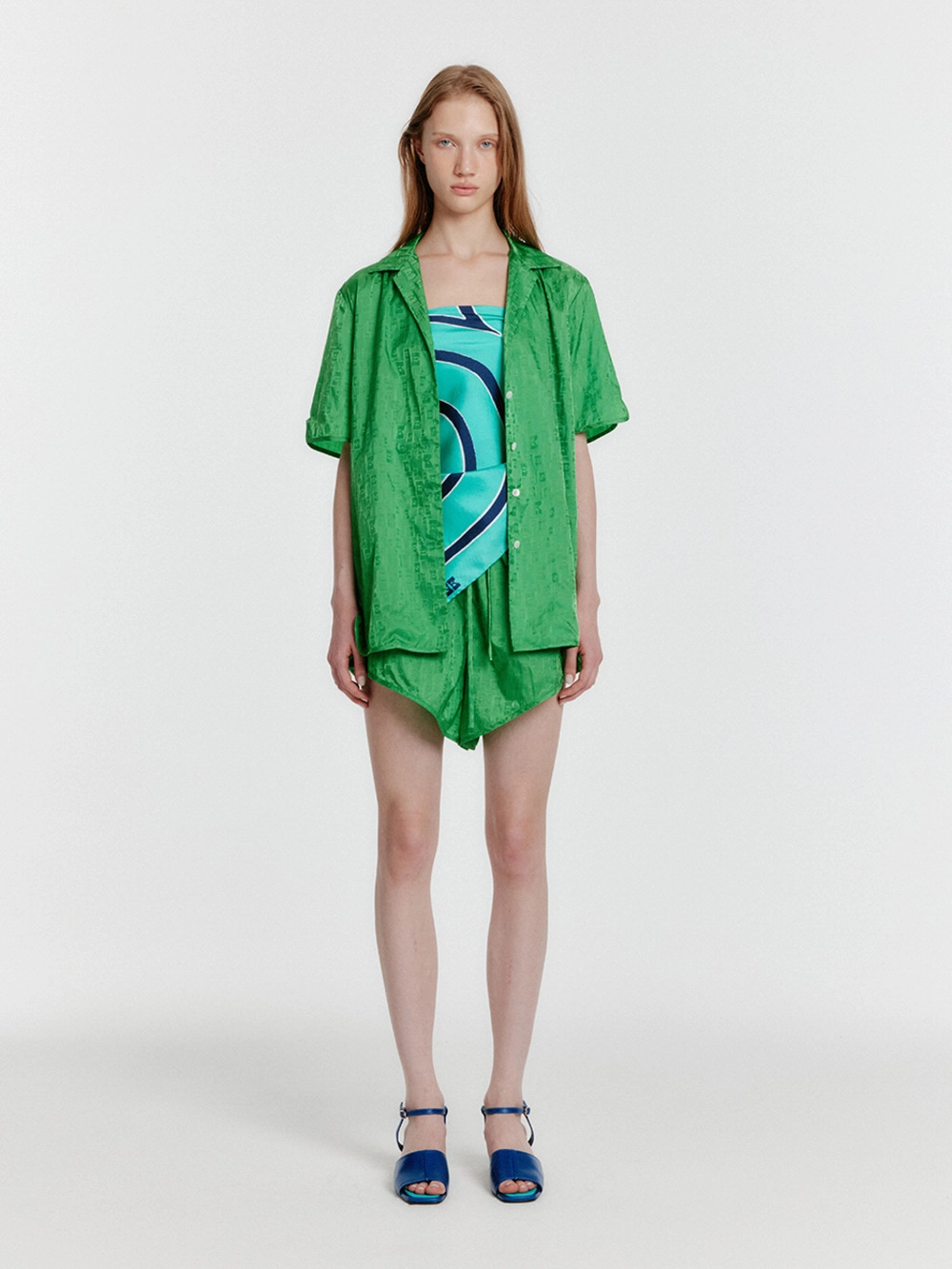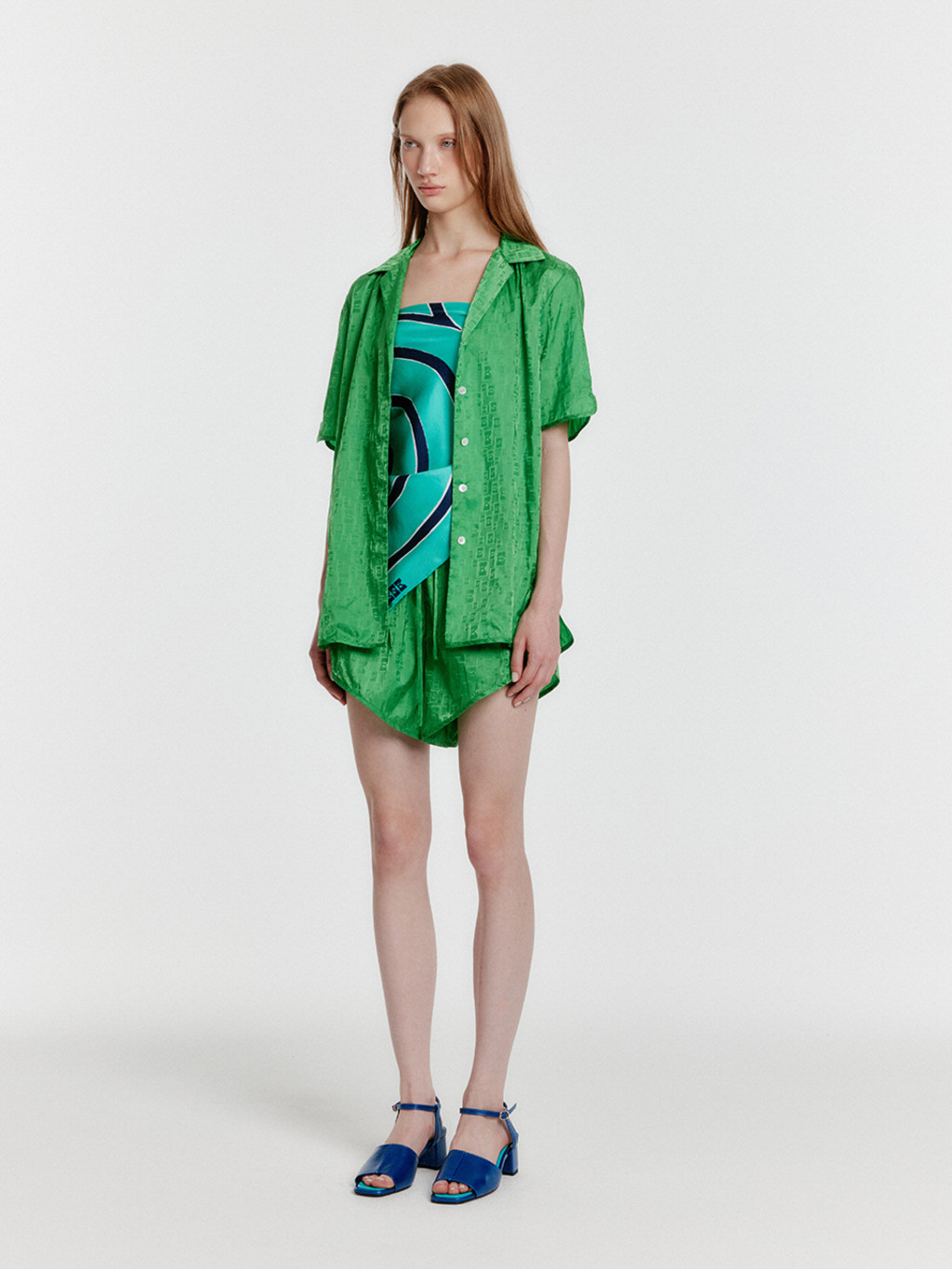 - Trunk shorts in a glossy silk-blend material.