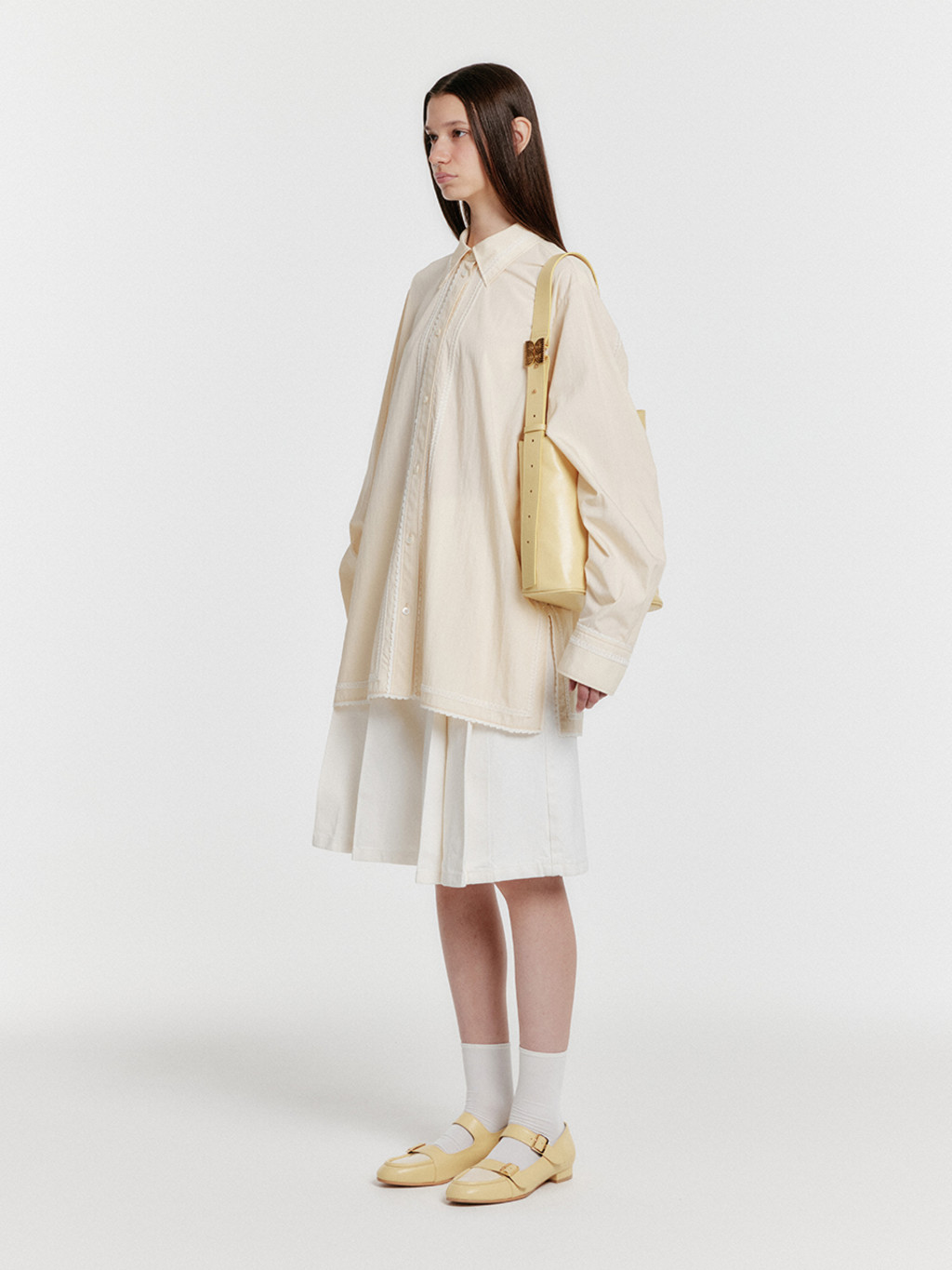 * The product worn by the model is a sample and is produced based on size S. However, there may be differences in total length and detailed sizes compared to the final product. Please refer to the detailed measurements provided on the product page for accurate sizing information.
