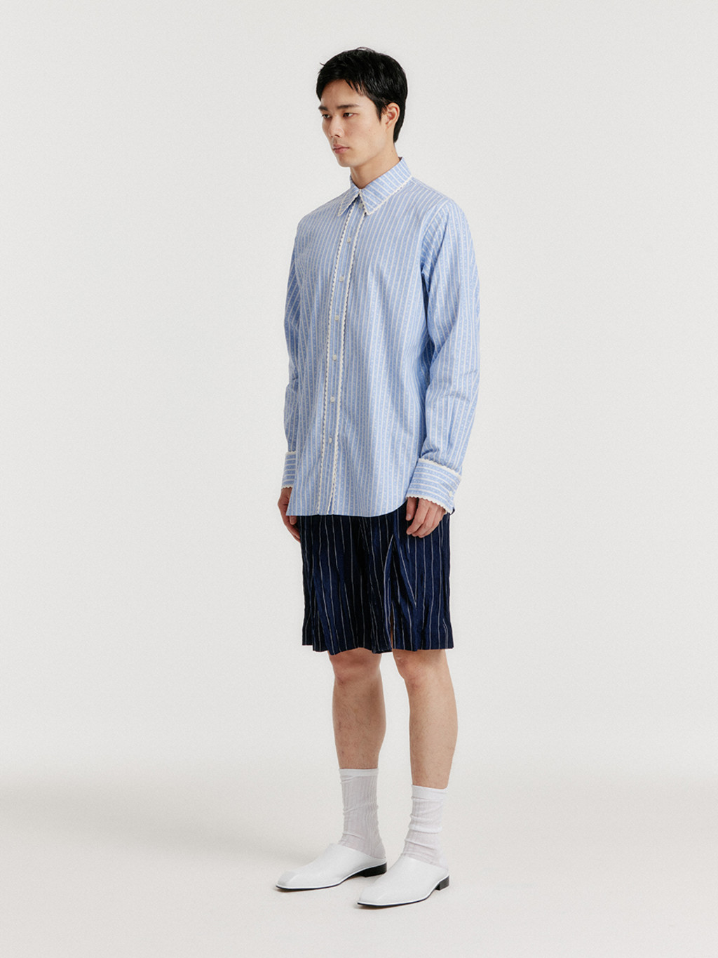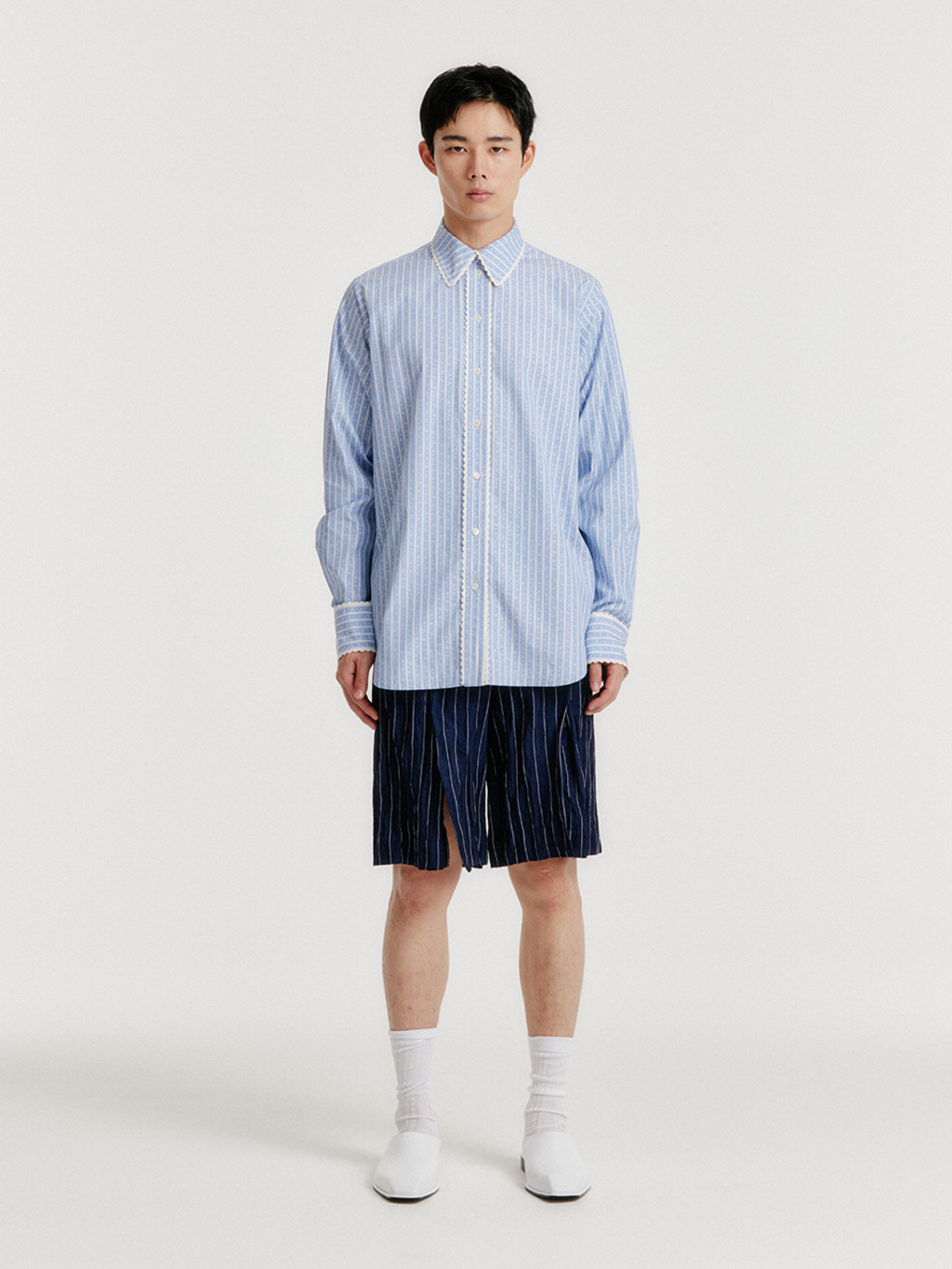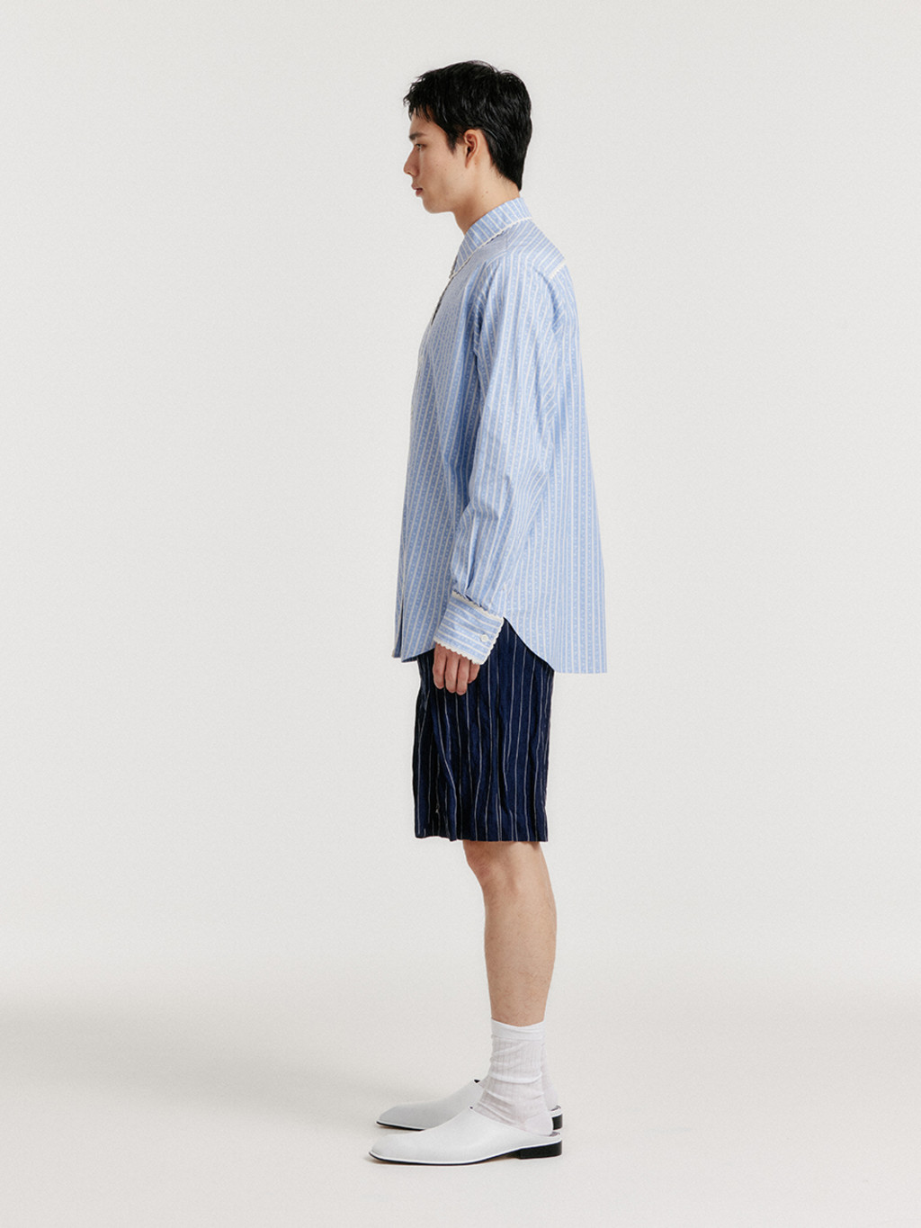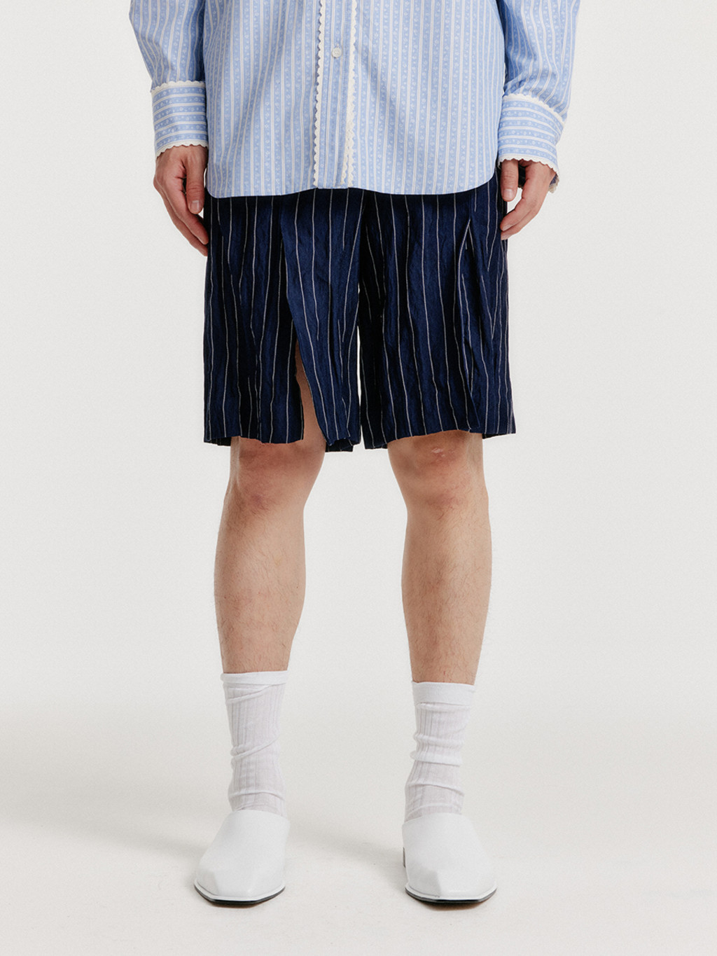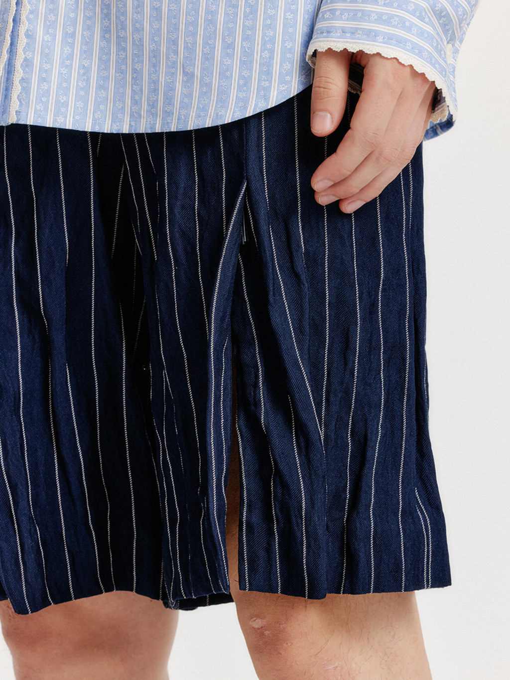 YURROTA Suit Shorts with Front Slit - Navy Stripe