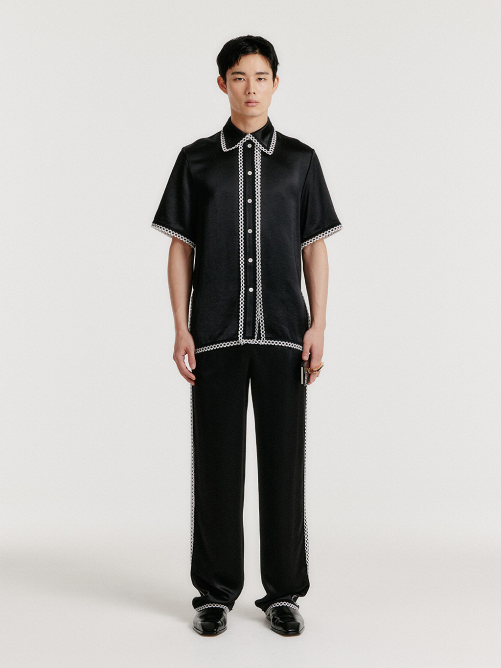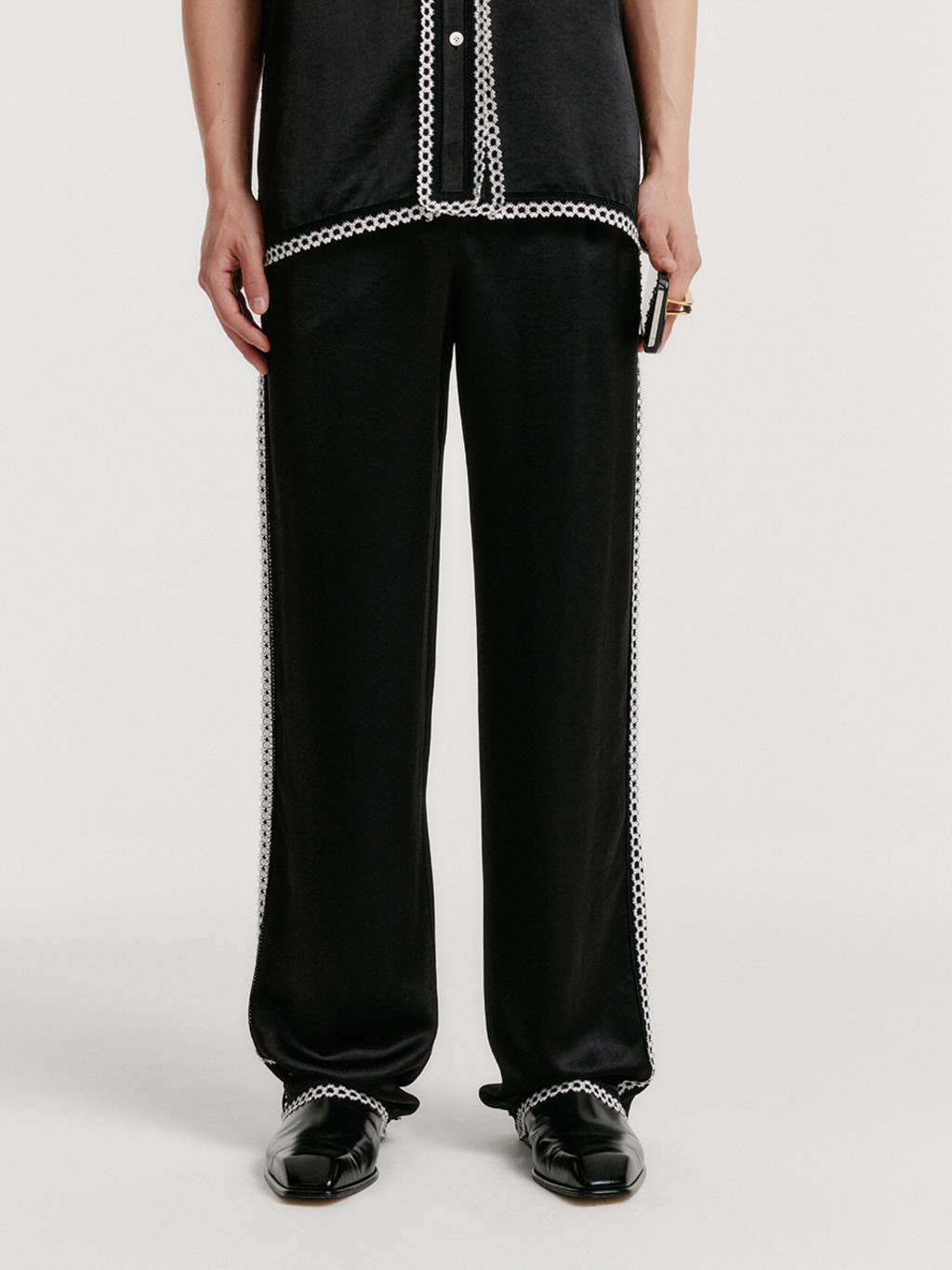 YENEZ Lace Trim Pants - Black