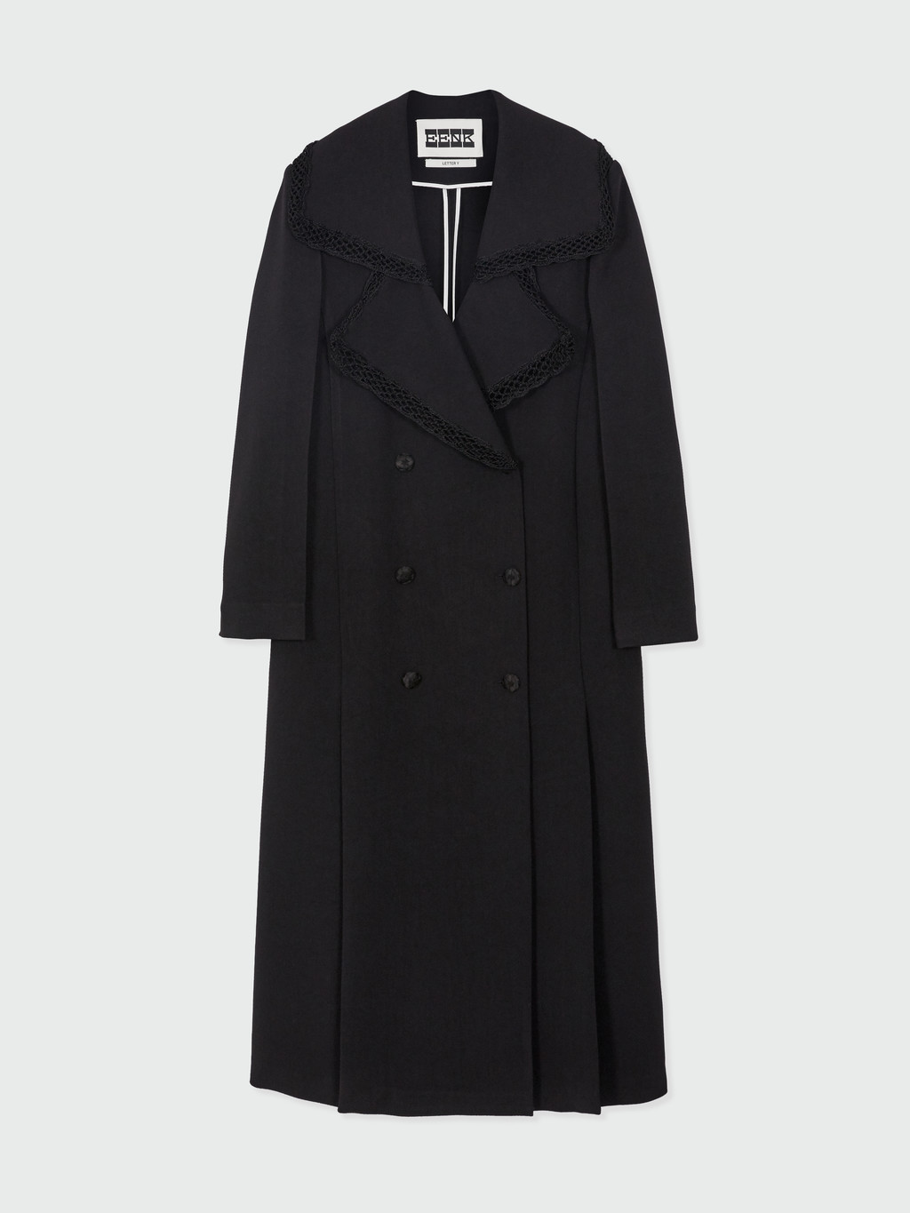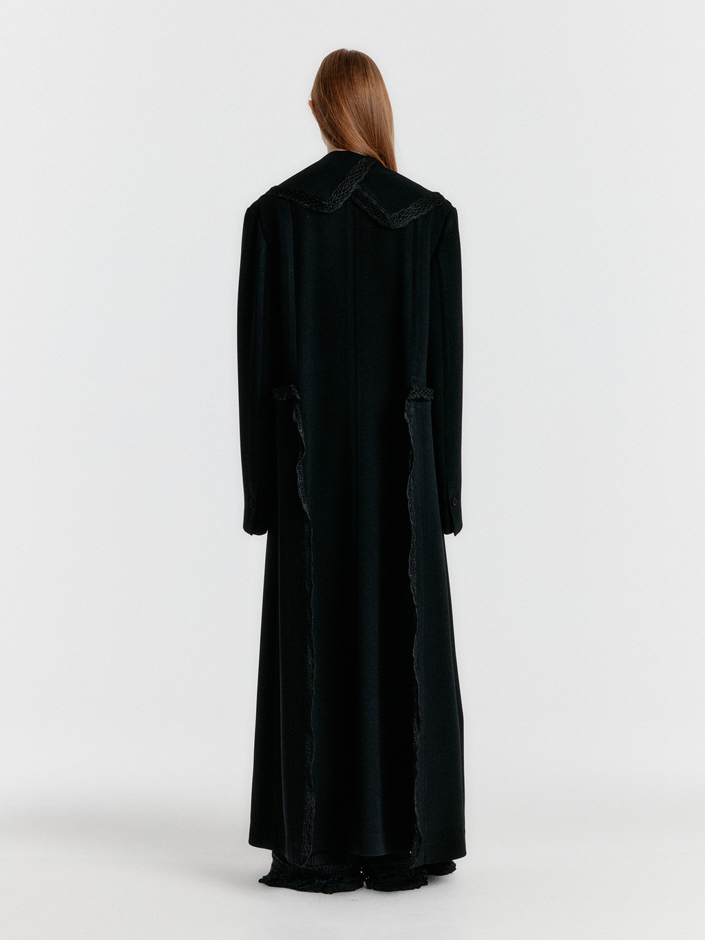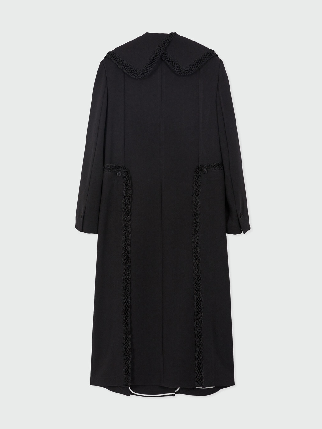 YEDIAN Lace-trim Big Collar Long Coat - Black