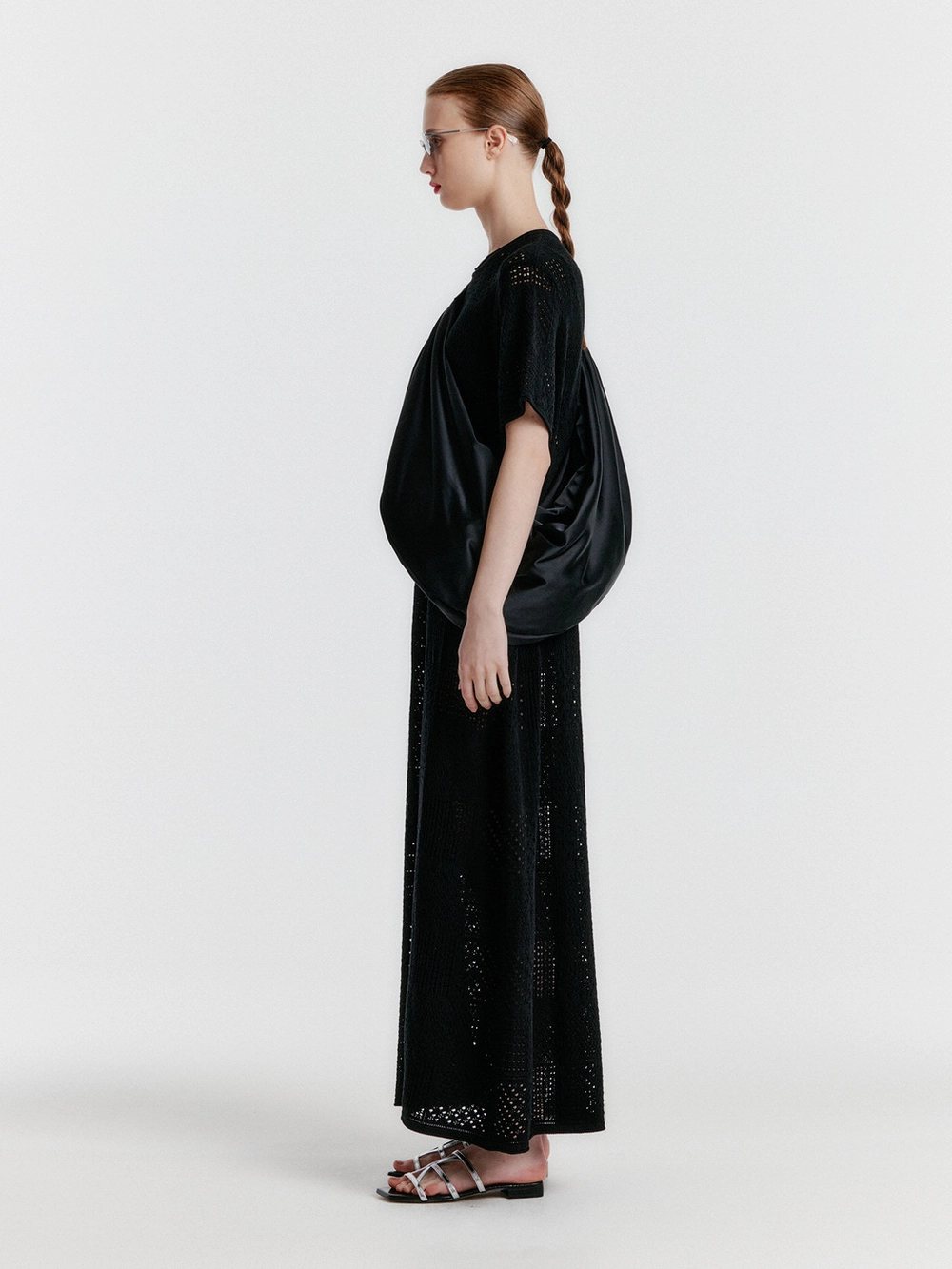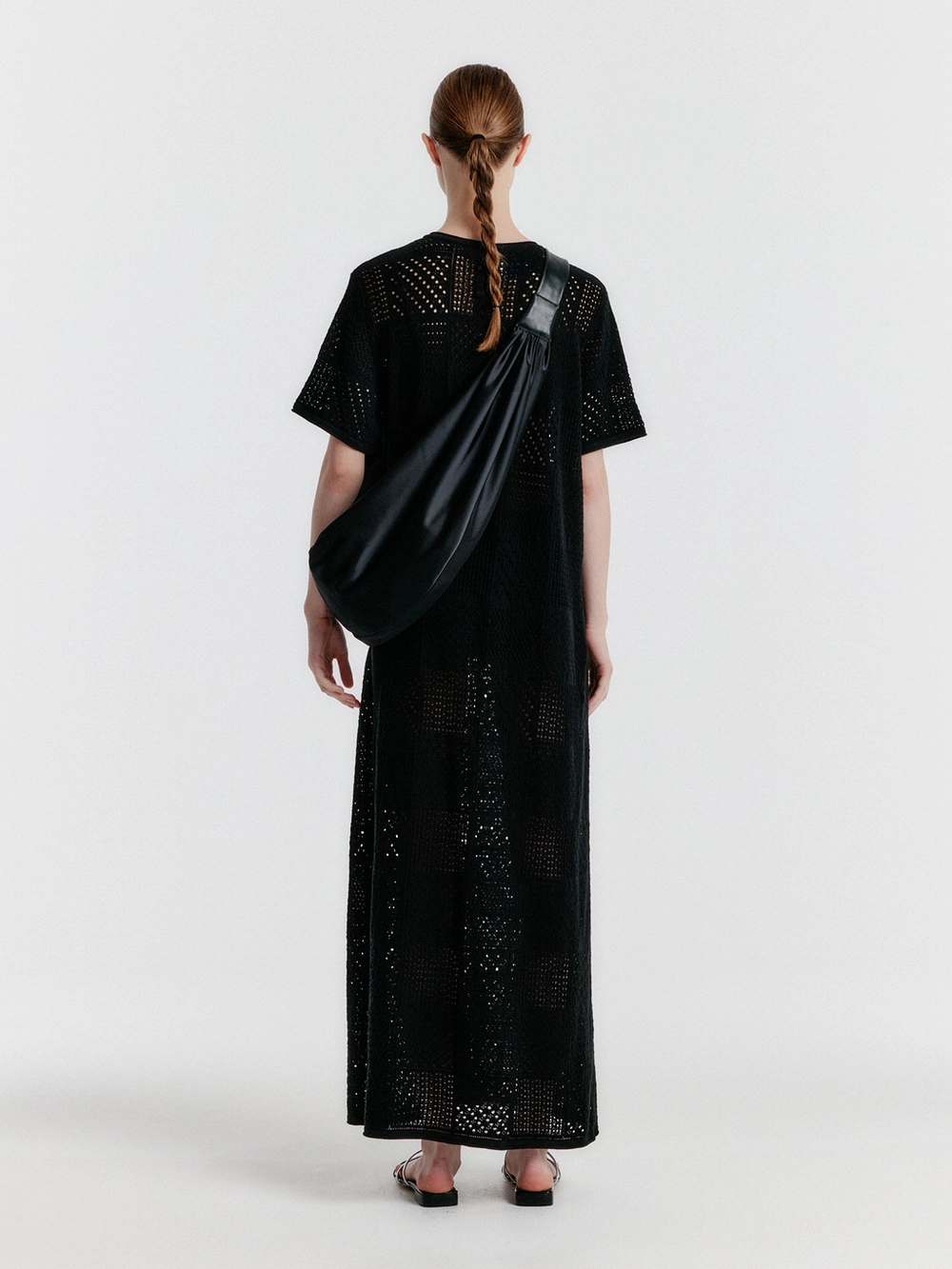 YITZU Panelled Lace Knit Long Dress - BlackSold out