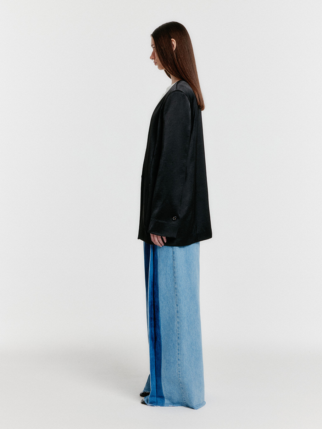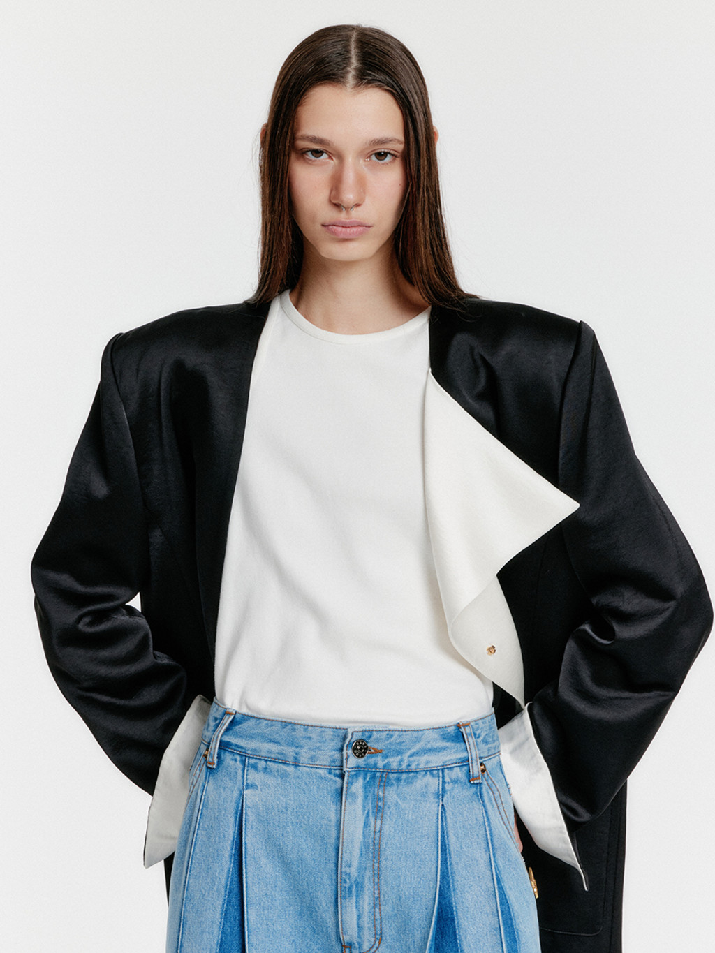 The product worn by the model is a sample and is produced based on size S. However, there may be differences in total length and detailed sizes compared to the final product. Please refer to the detailed measurements provided on the product page for accurate sizing information.