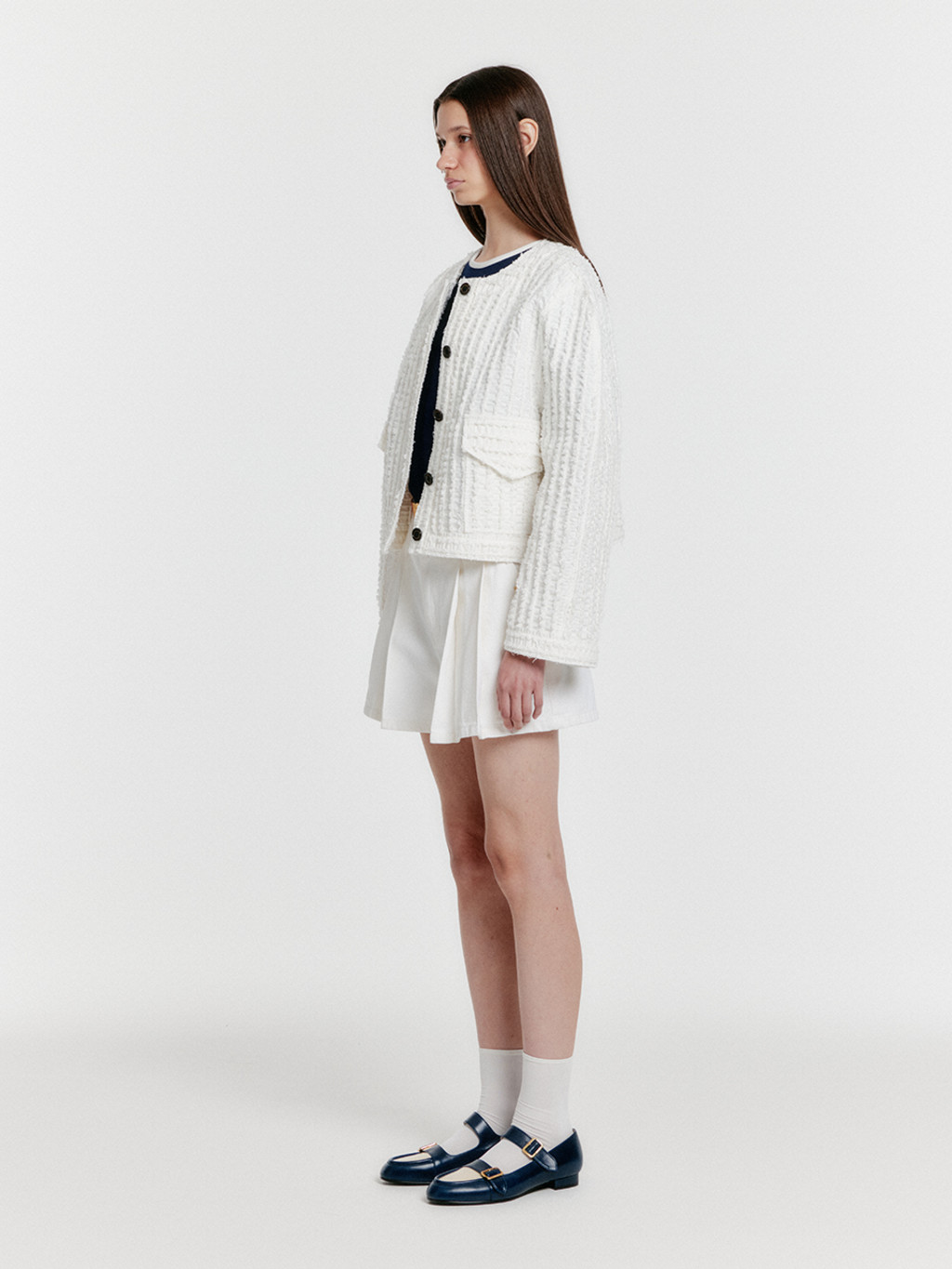 *The product worn by the model is a sample and is produced based on size S. However, there may be differences in total length and detailed sizes compared to the final product. Please refer to the detailed measurements provided on the product page for accurate sizing information.