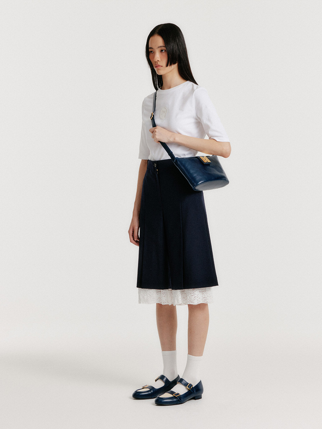 * The product worn by the model is a sample and is produced based on size S. However, there may be differences in total length and detailed sizes compared to the final product. Please refer to the detailed measurements provided on the product page for accurate sizing information.