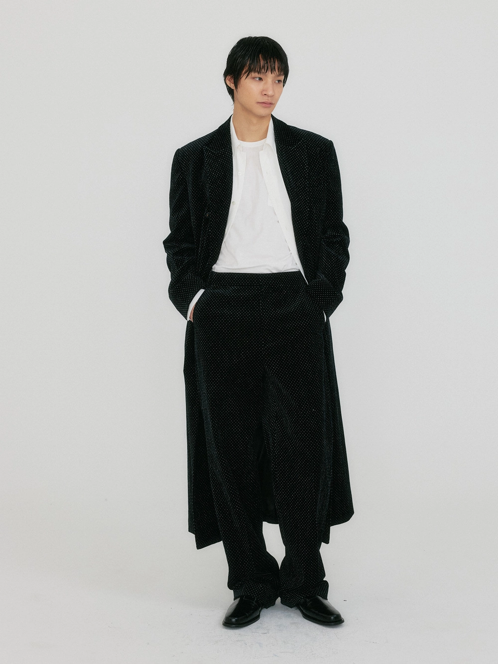 - The product worn by the model is a sample and is produced based on size S. However, there may be differences in total length and detailed sizes compared to the final product. Please refer to the detailed measurements provided on the product page for accurate sizing information.