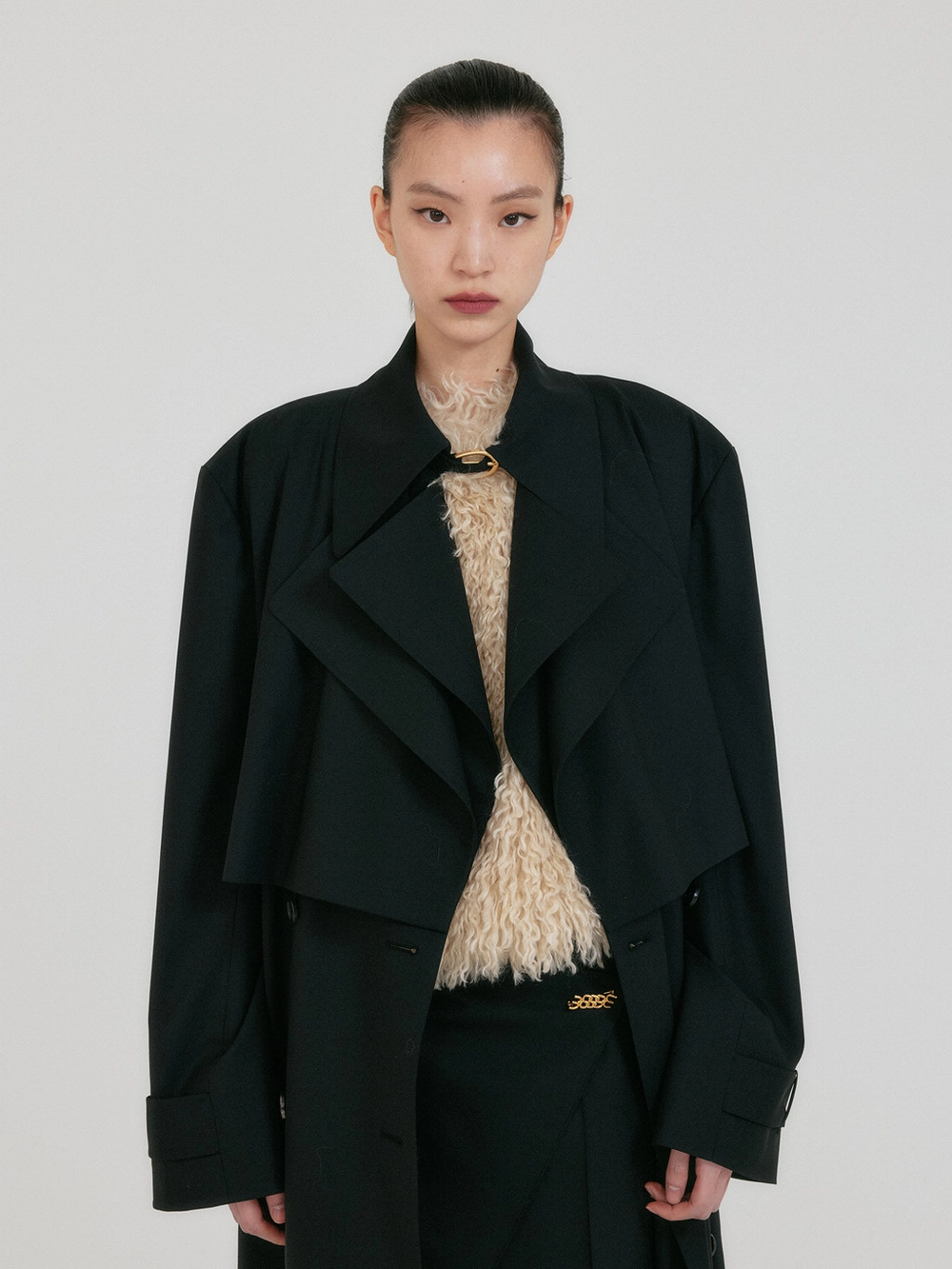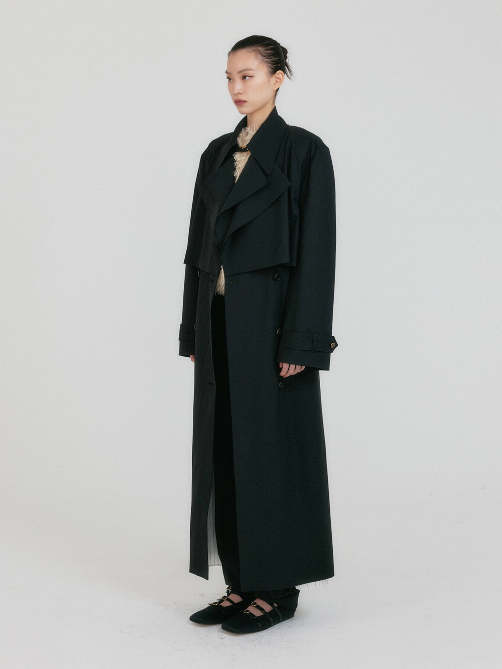ZEIDA Wide Collar Layered Coat - Black