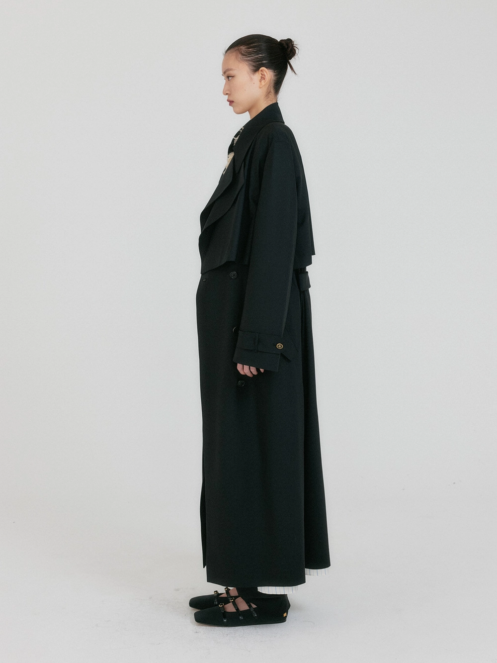 - Trench coat with double collar accent
