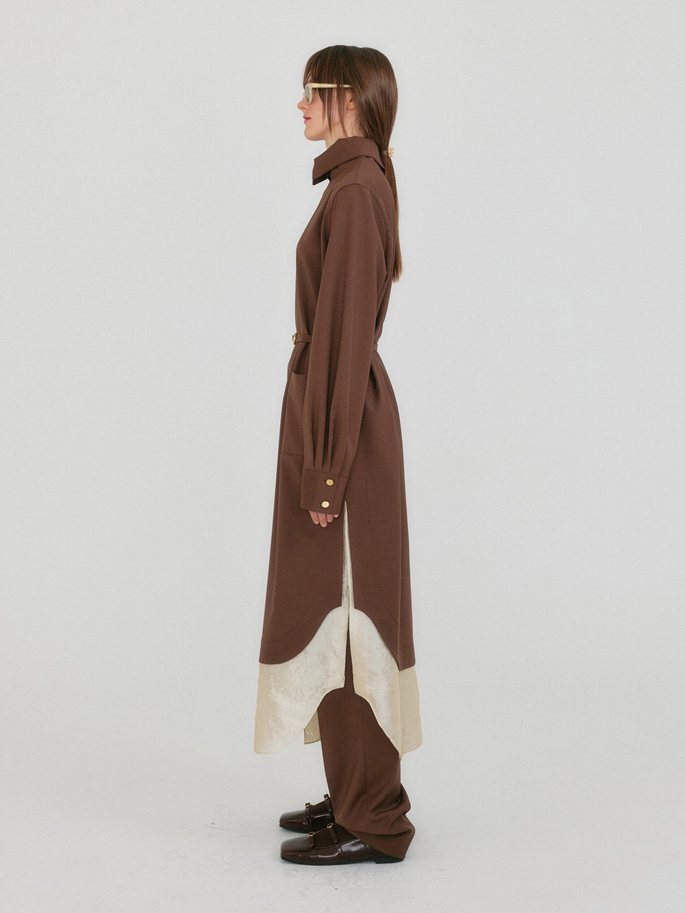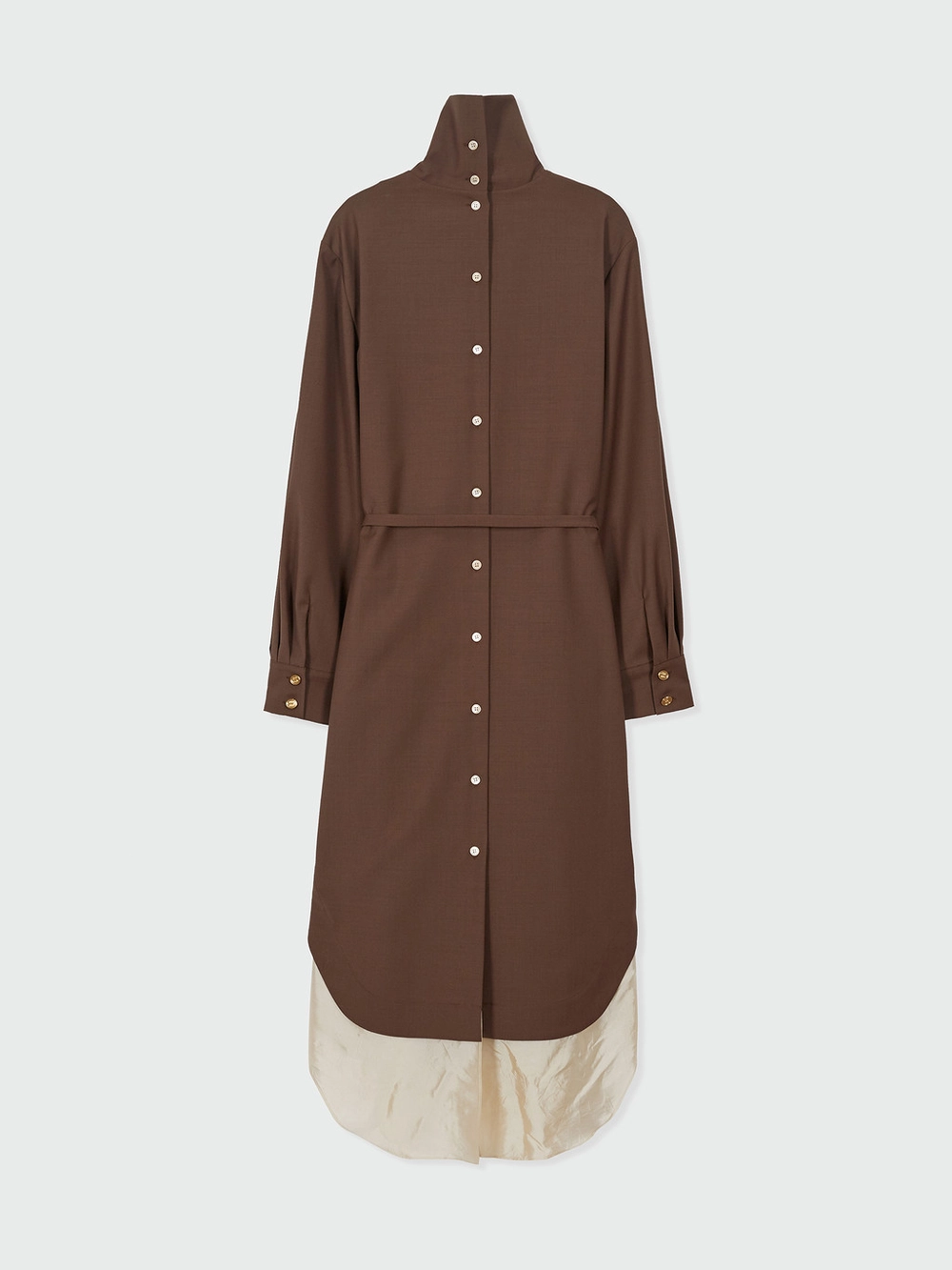 - The layered silk-blend lining adds a distinctive touch to the hem