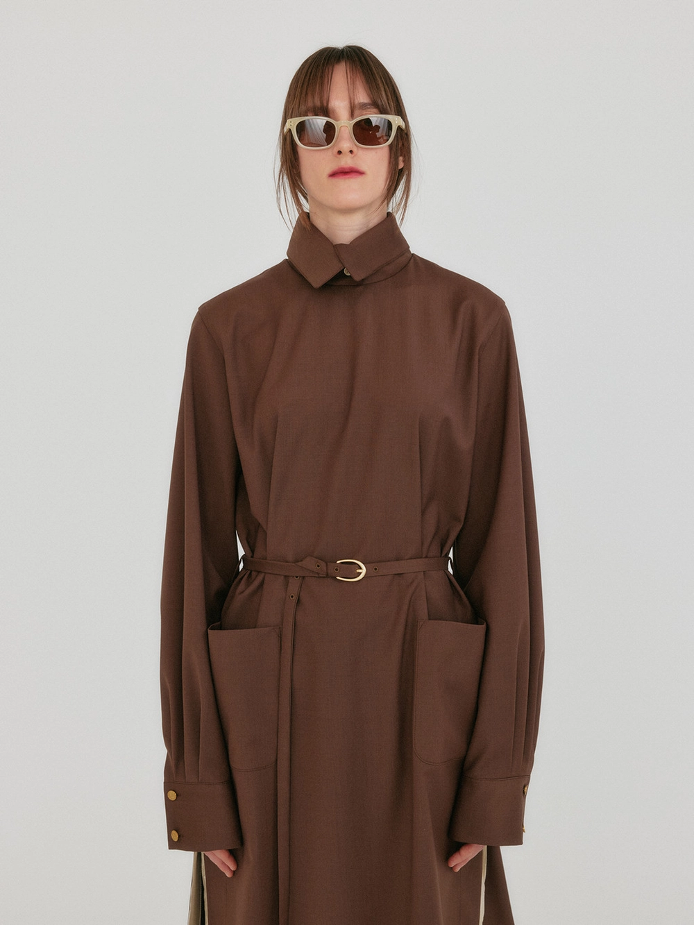 ZENAIDA Button-Back Belted Dress - Brown