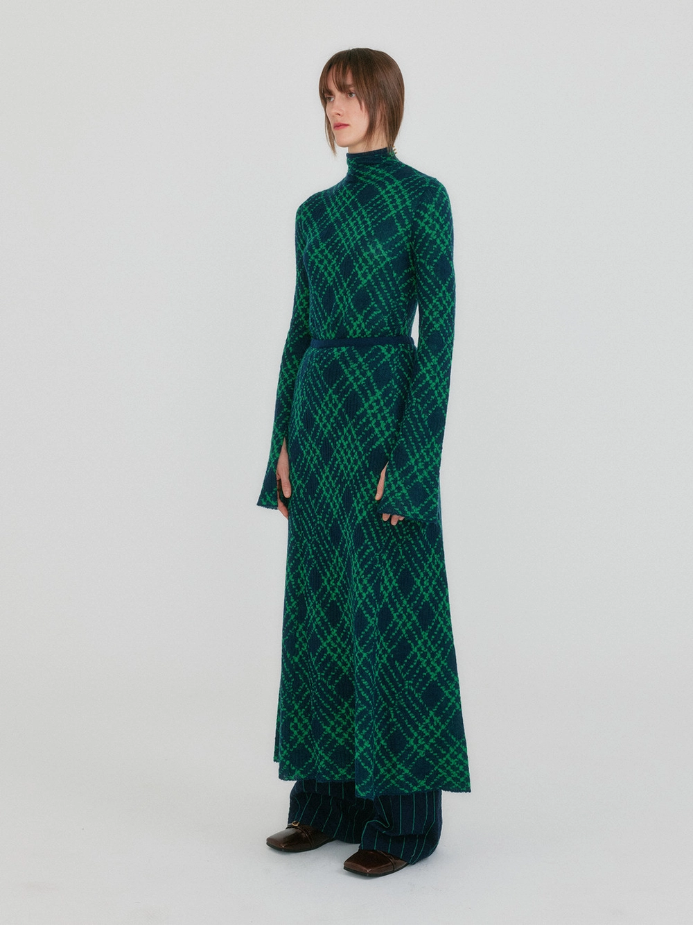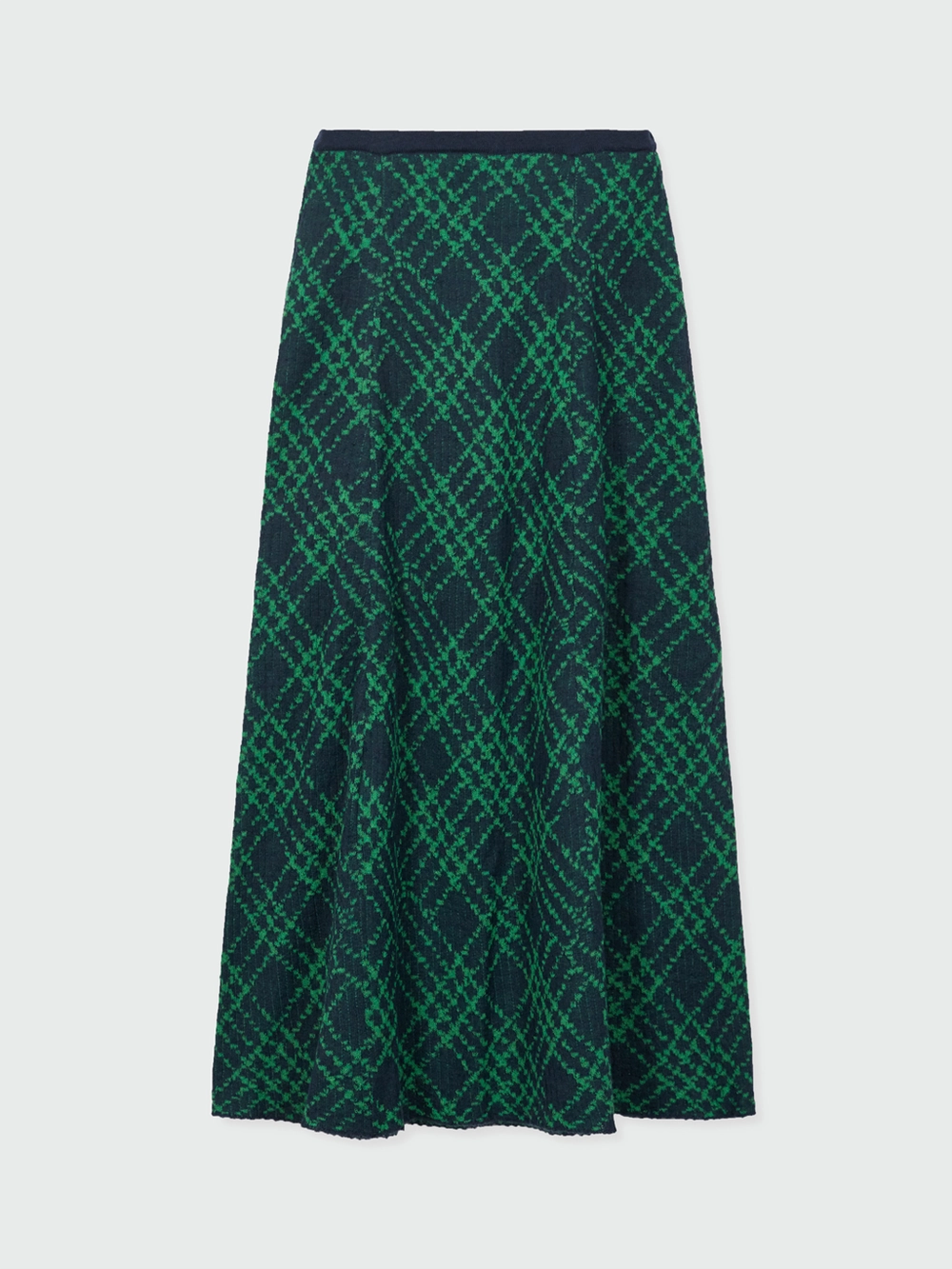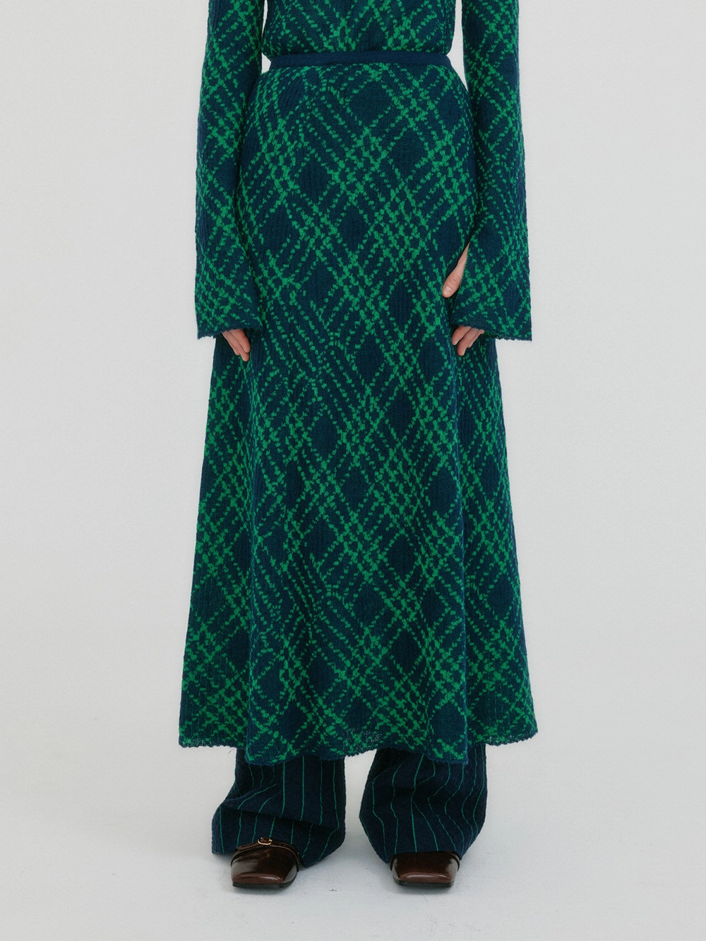 ZOLLINE Check Pattern Knit Skirt - Green Multi