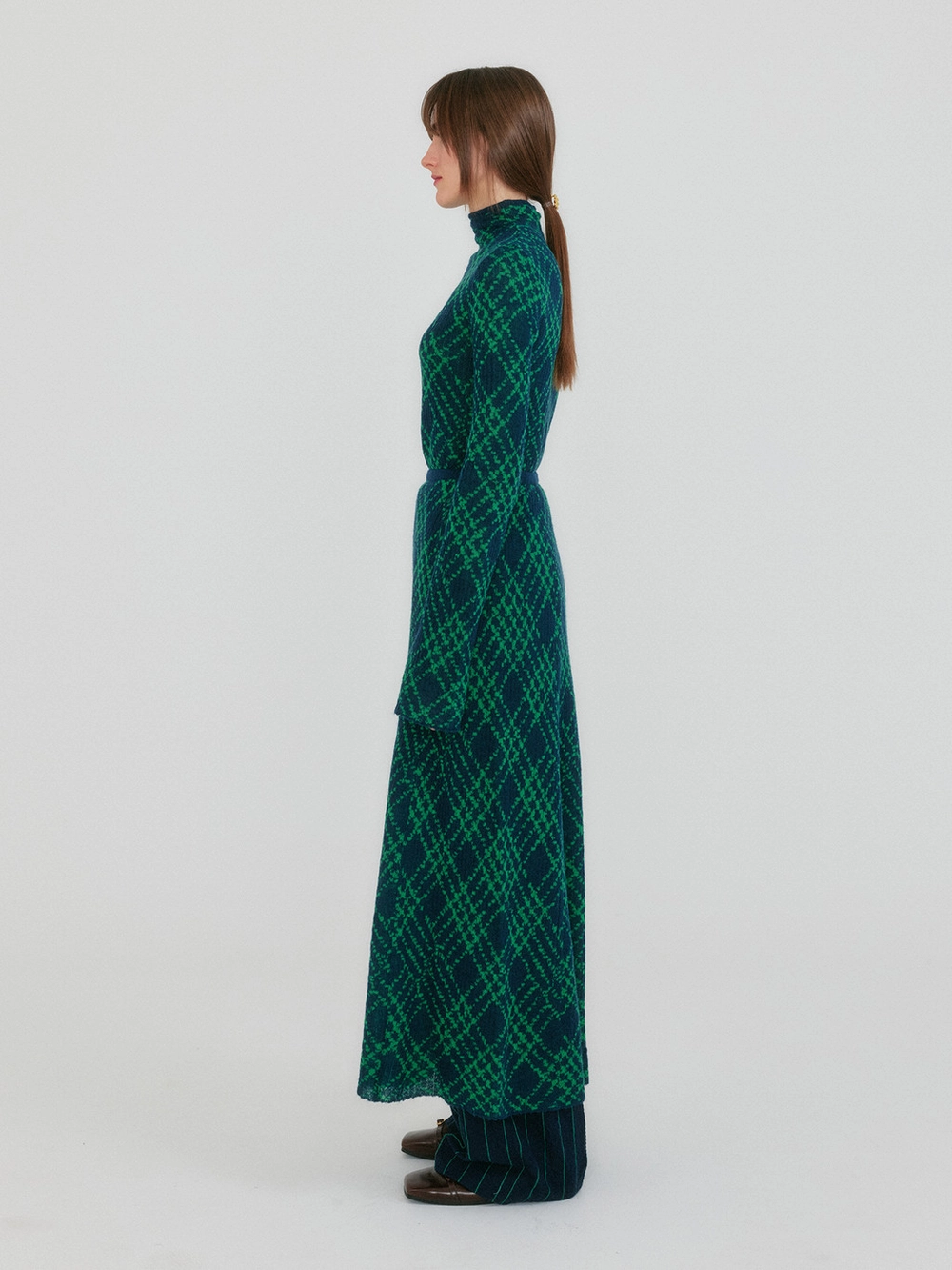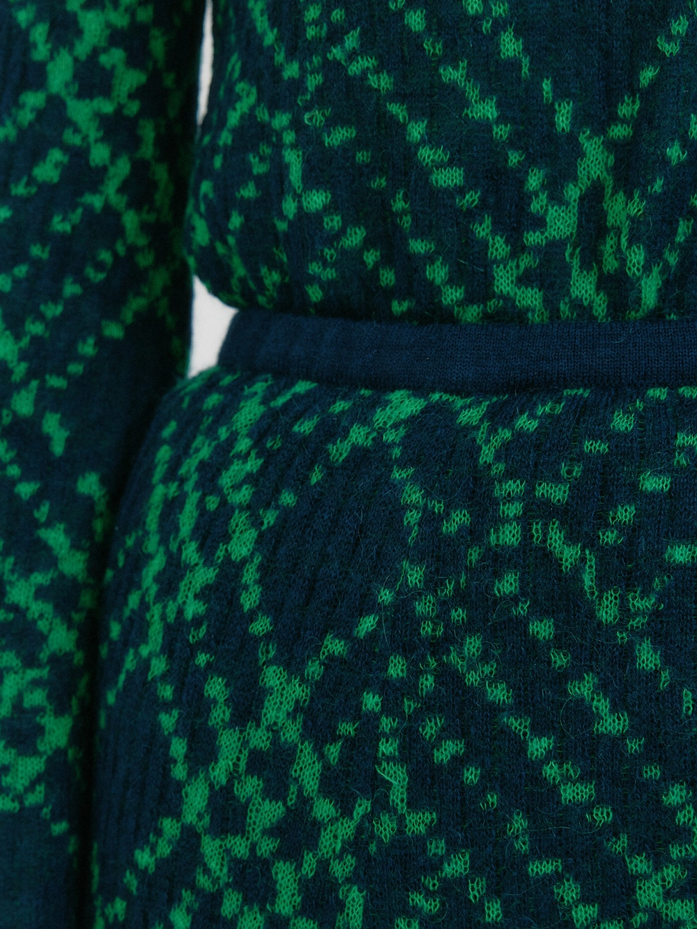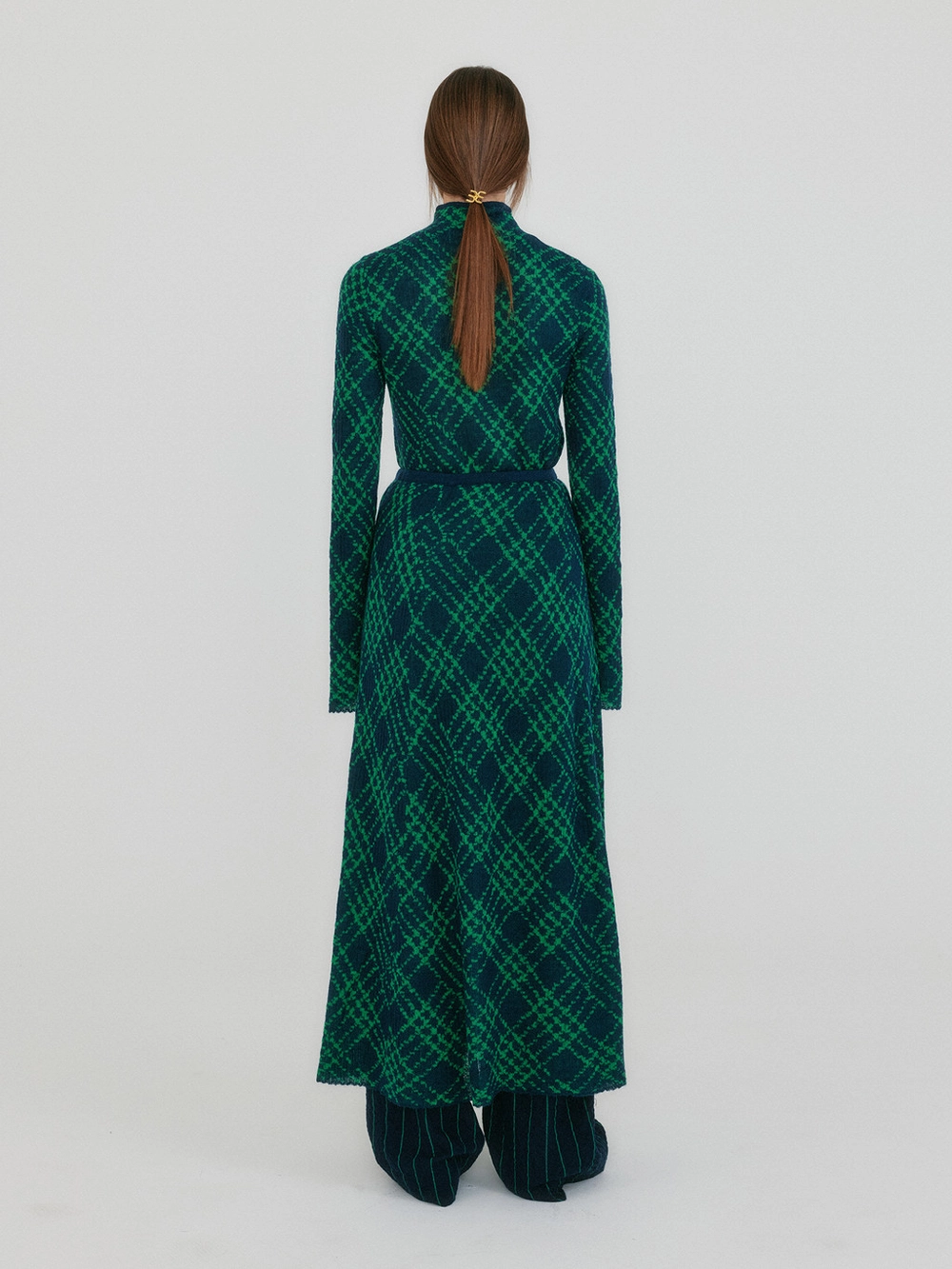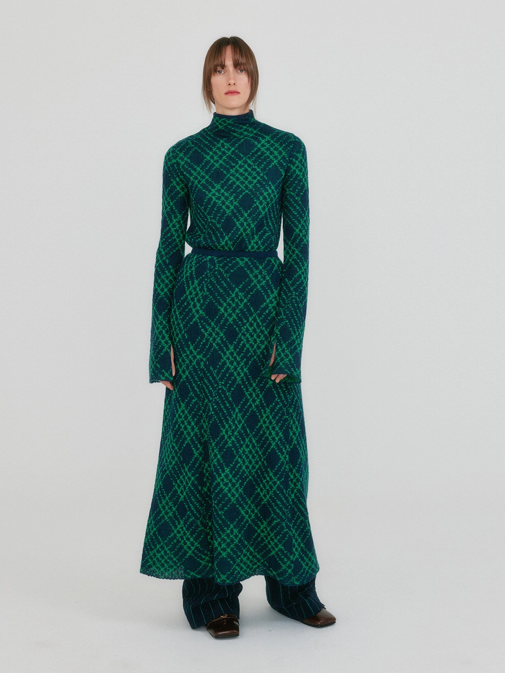 ZOLLINE Check Pattern Knit Skirt - Green Multi