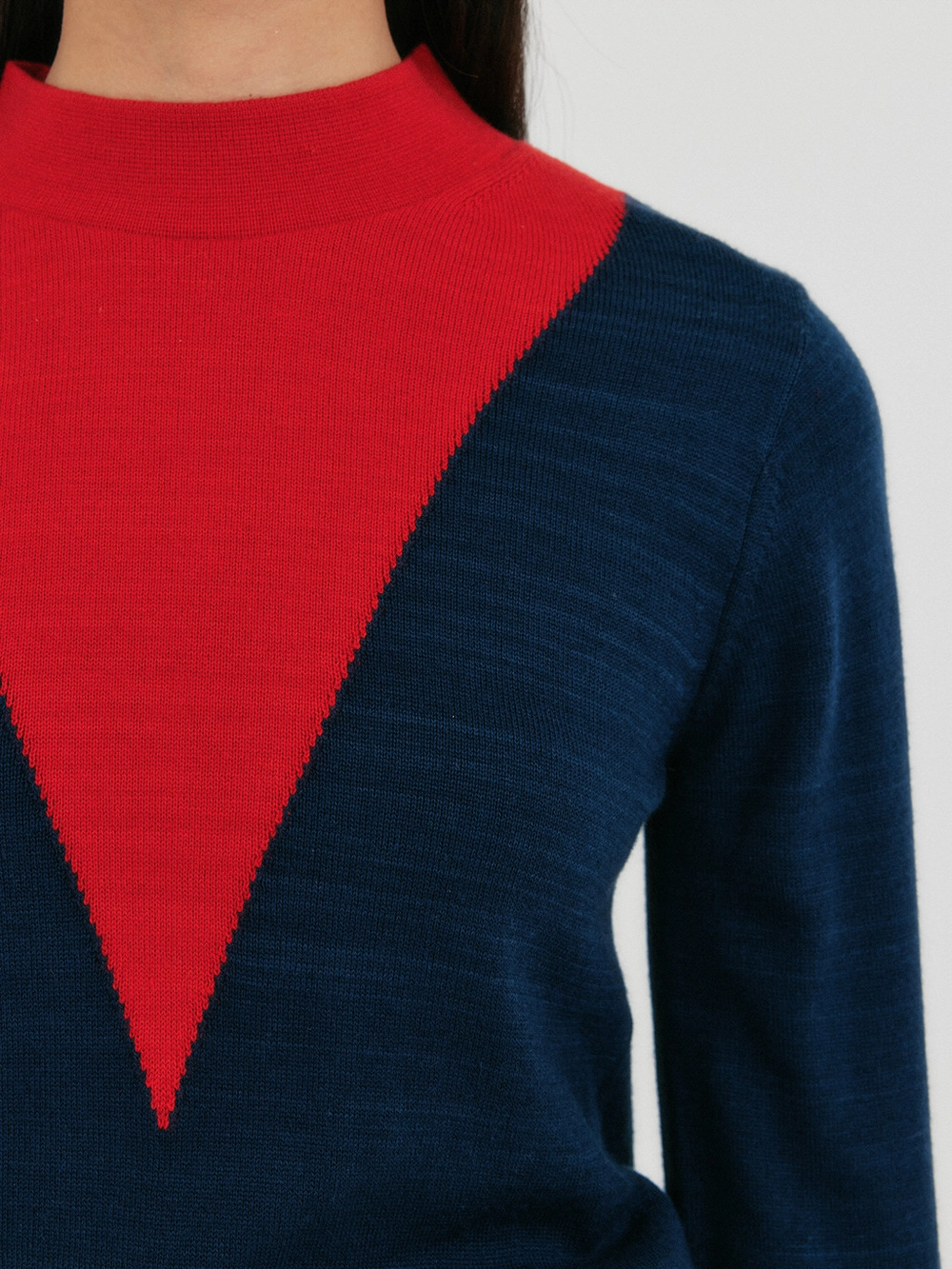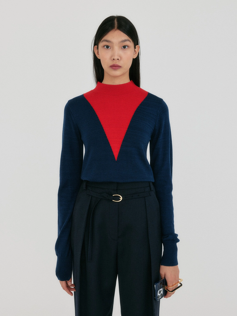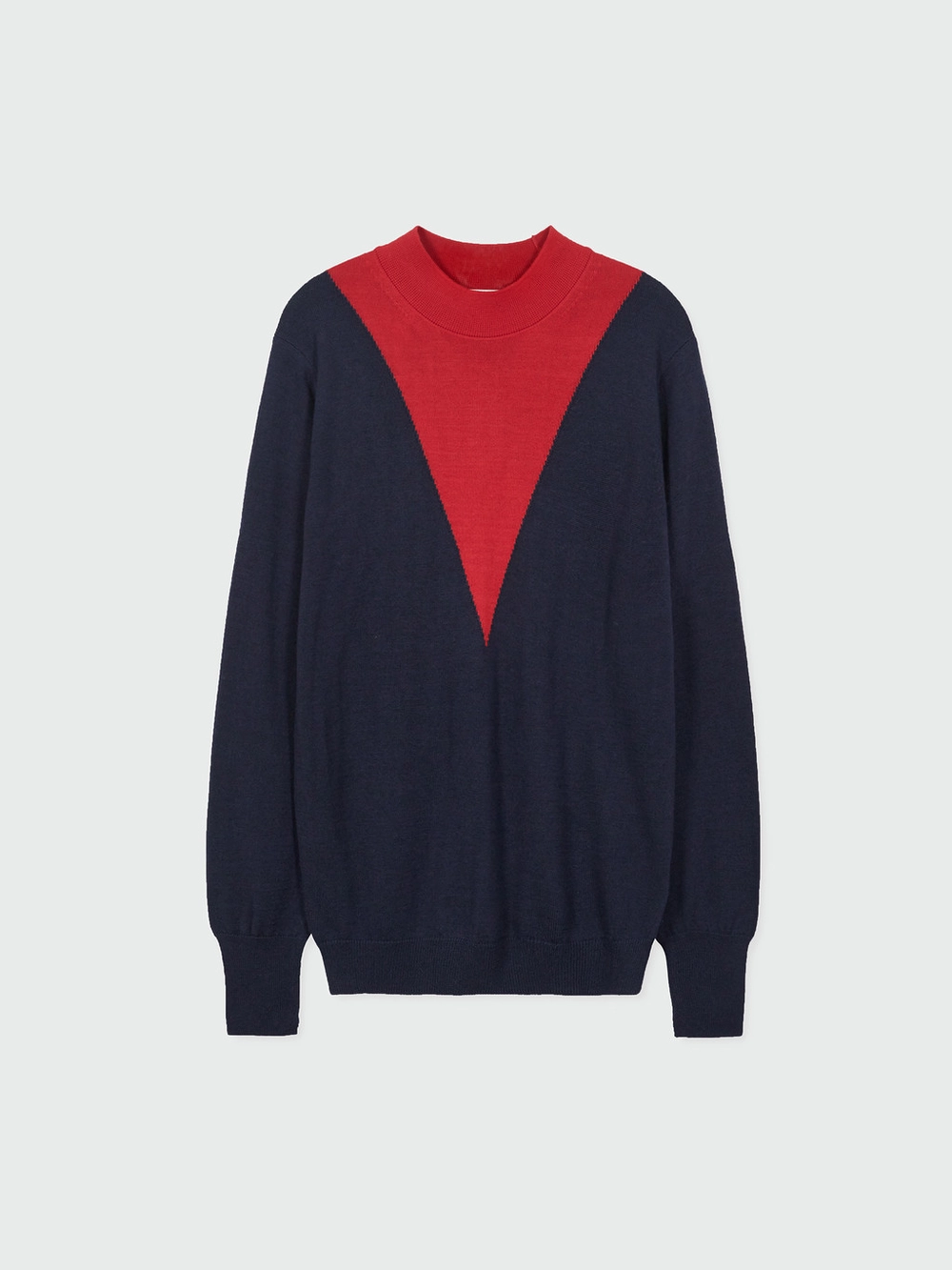 ZOE V-Point Mockneck Knit Pullover - Navy/Red