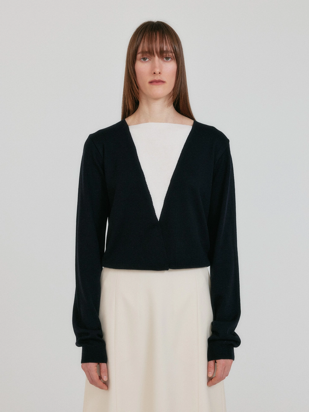 ZOEM V-Neck Knit Cardigan - Black/Ivory