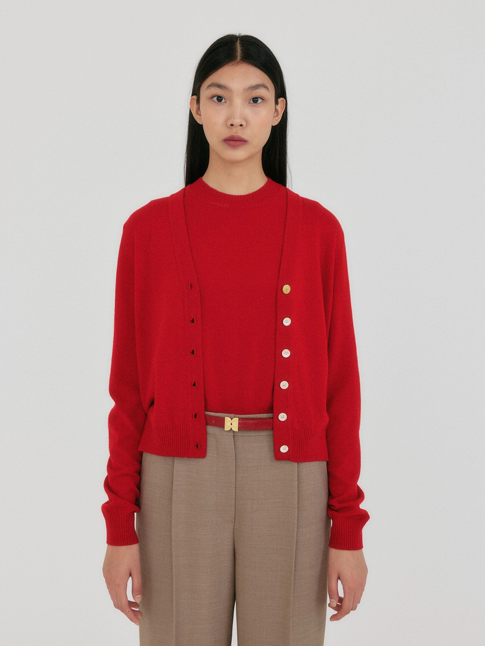 ZAINE Button Point Knit Cardigan - Red